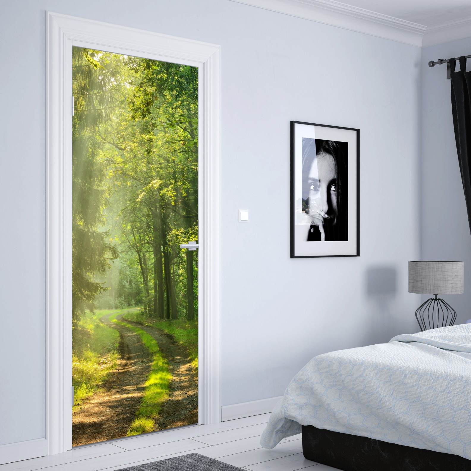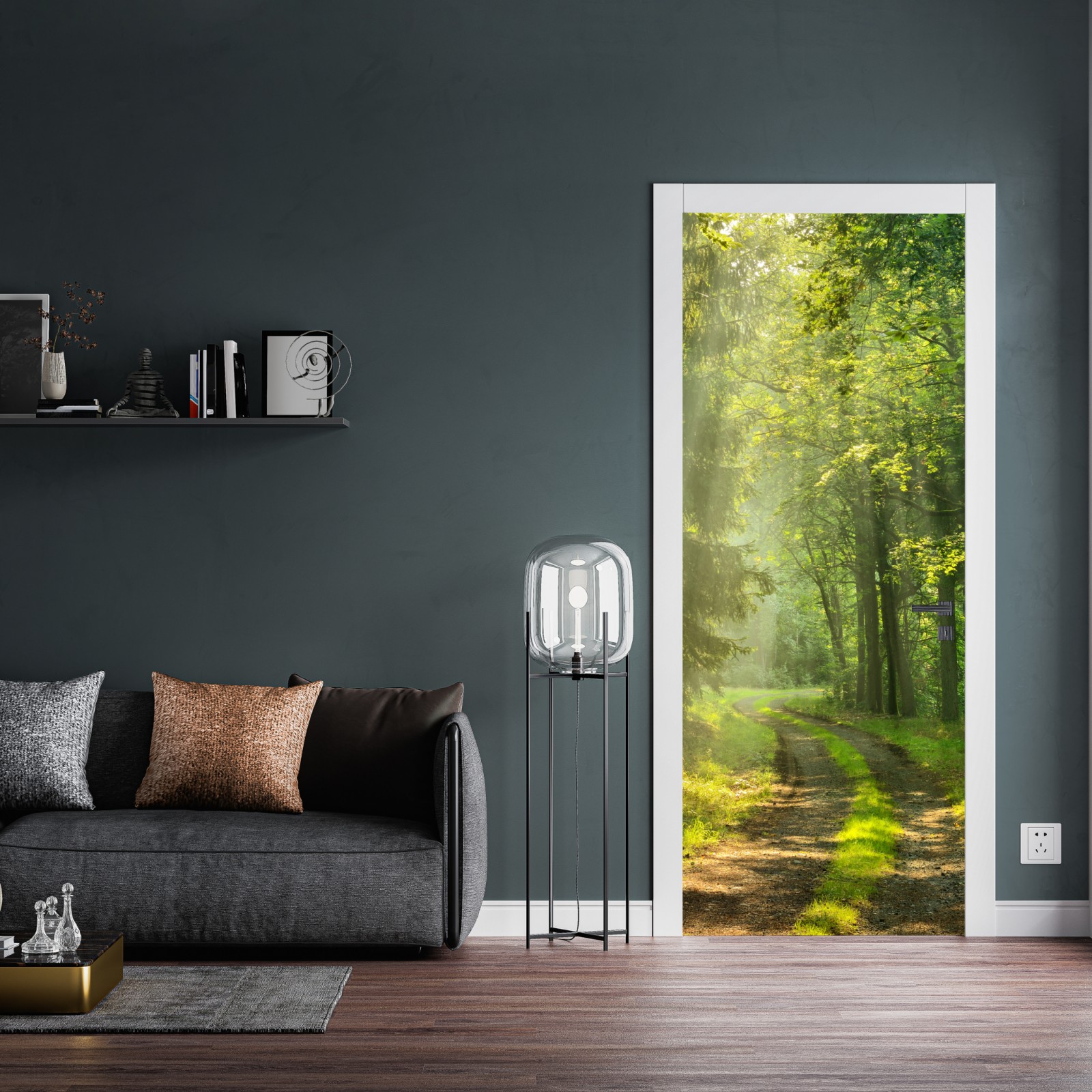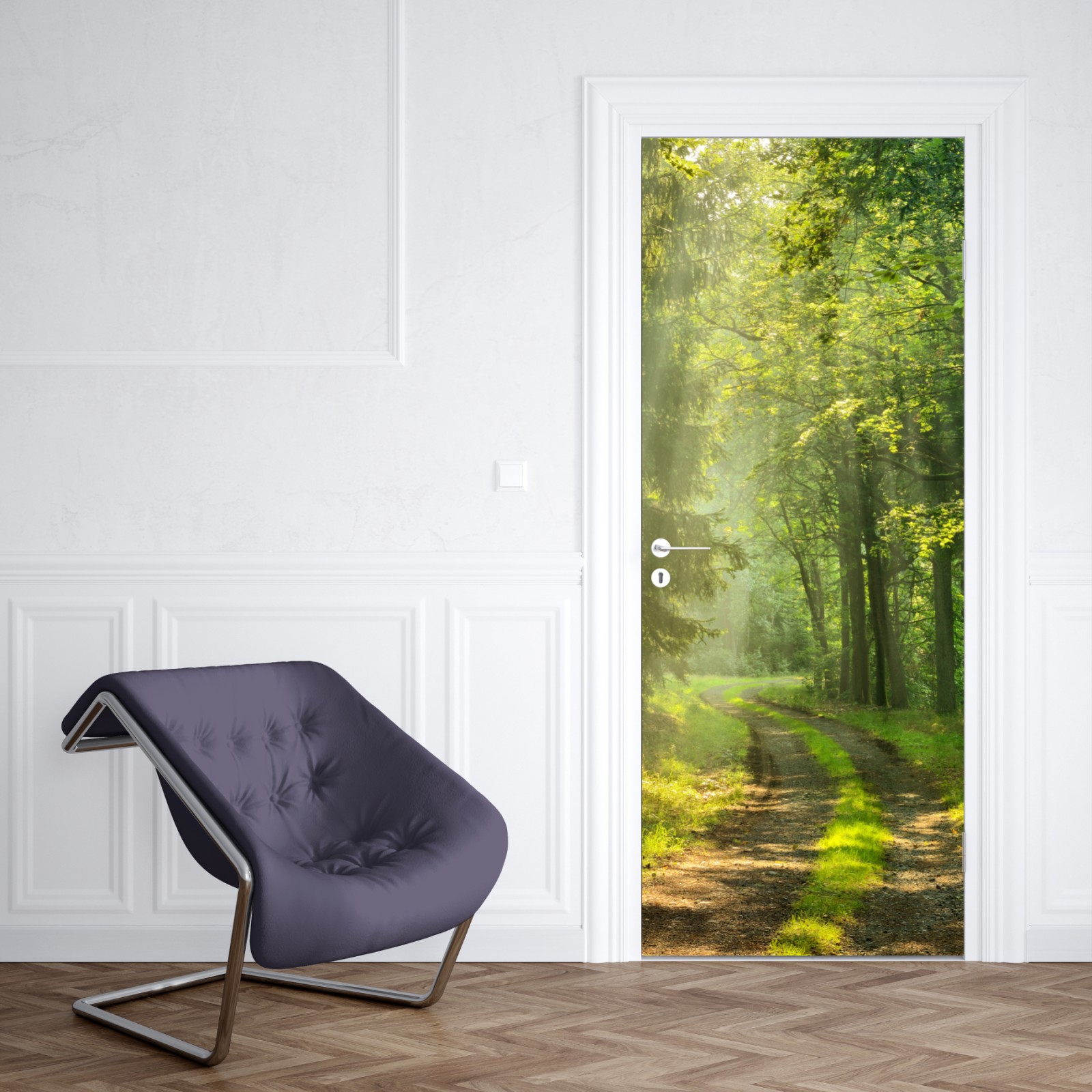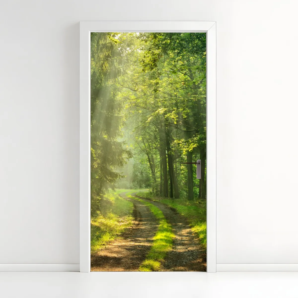 Bringen Sie eine ruhige, natürliche Atmosphäre in jeden Raum mit einem sonnenbeschienenen Waldpfad, in dem Licht durch üppiges grünes Laub fällt.