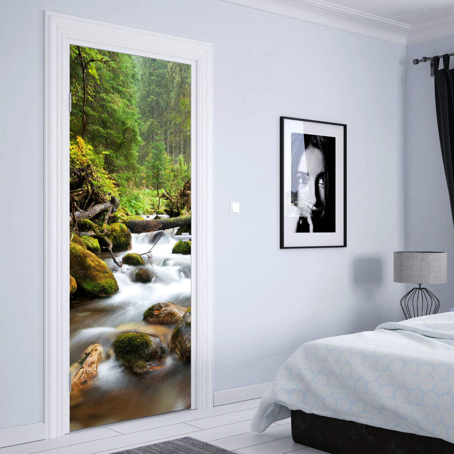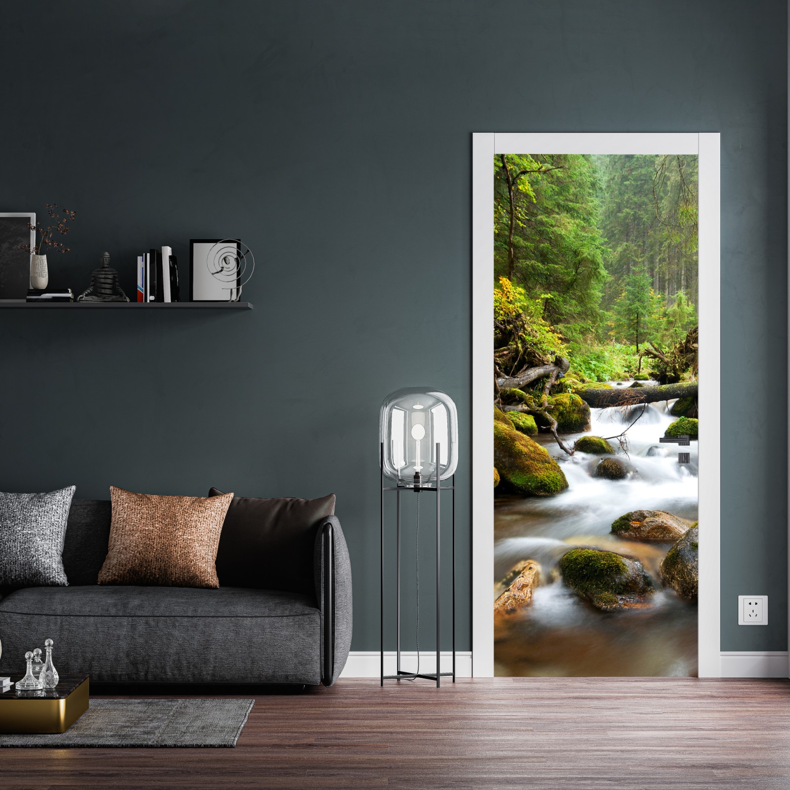 Türaufkleber moosbedeckter waldbach im herbst