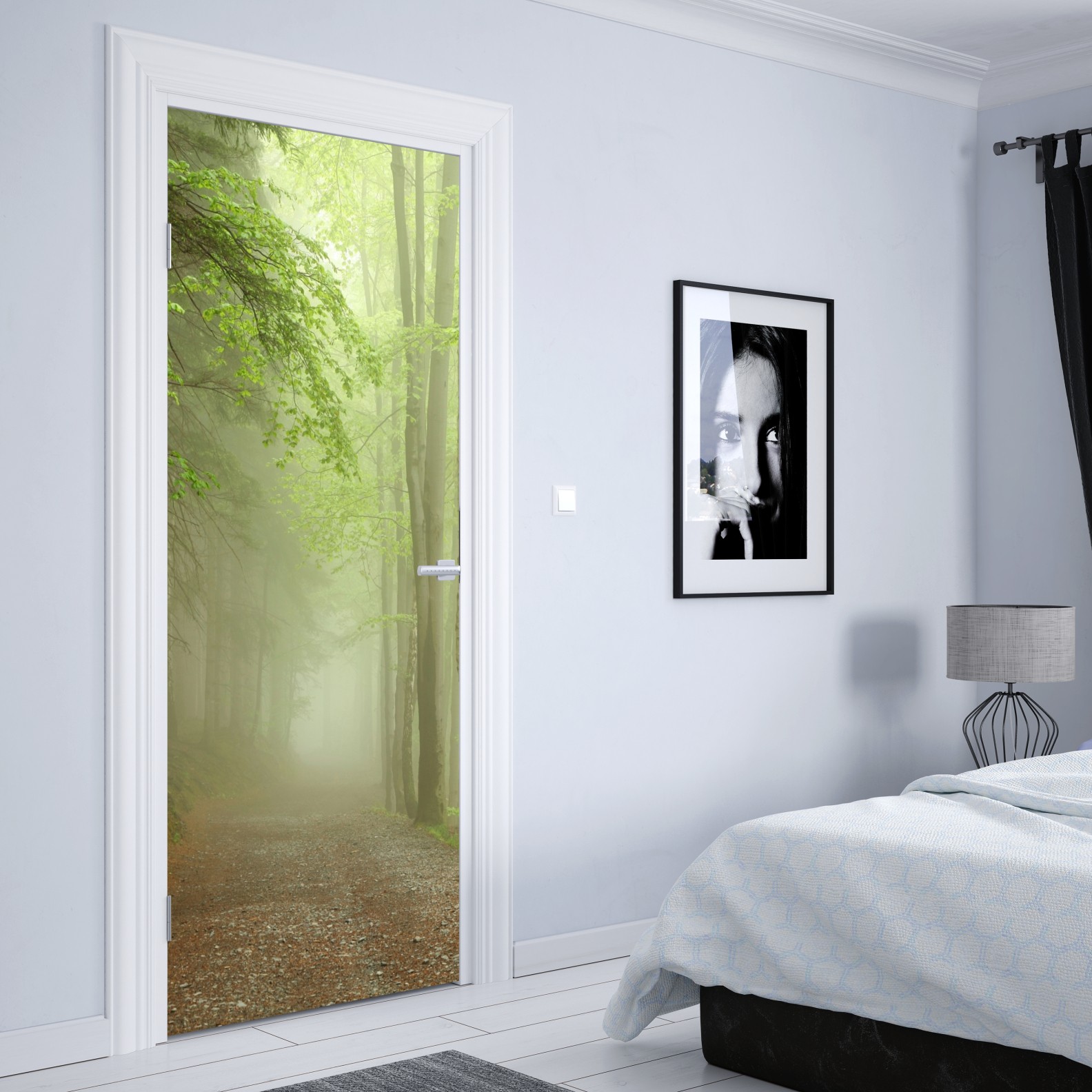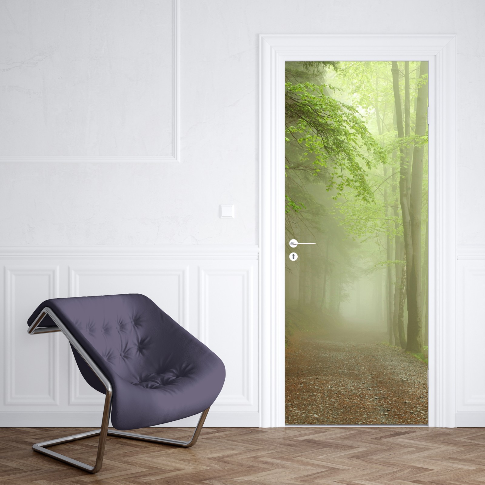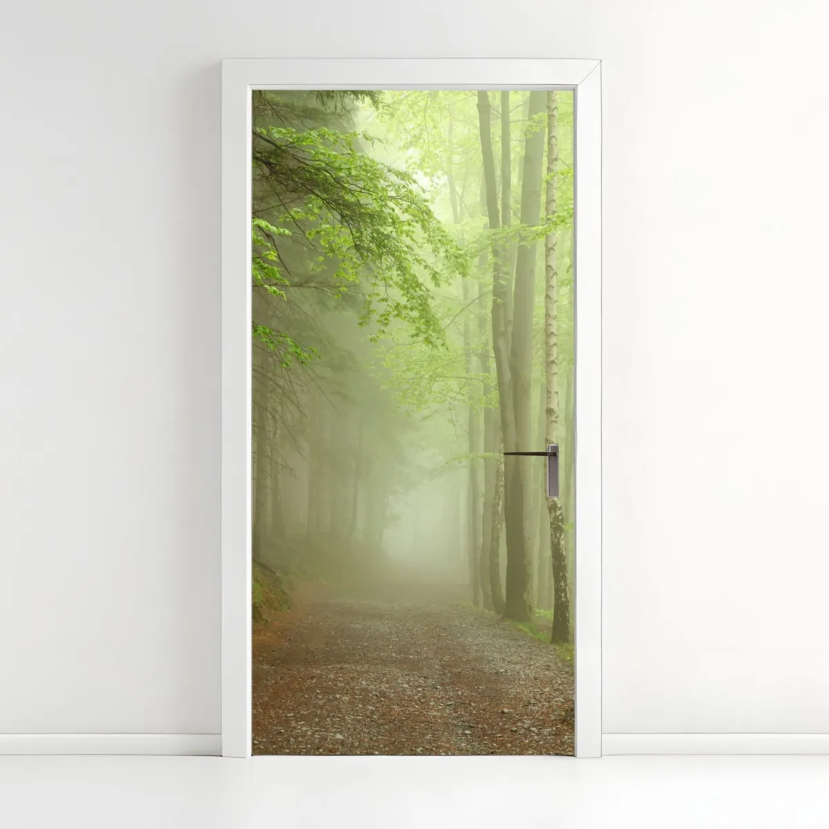 Türaufkleber nebliger waldpfad