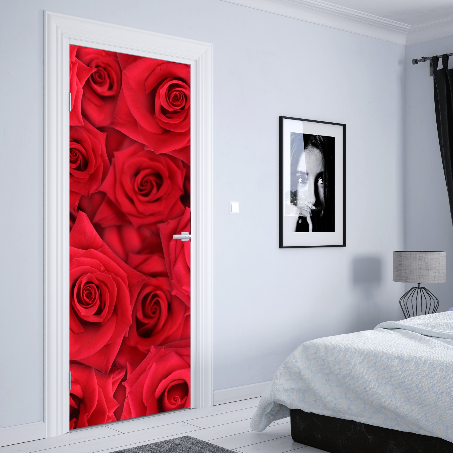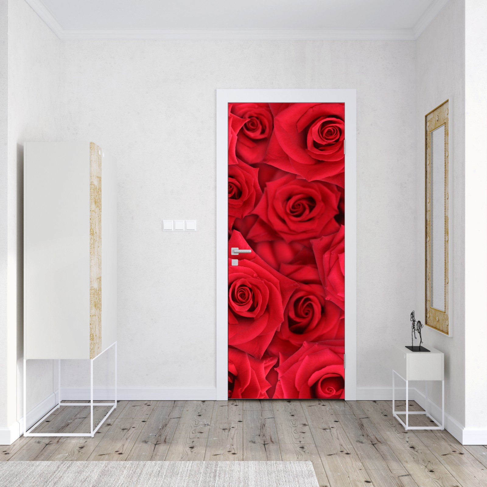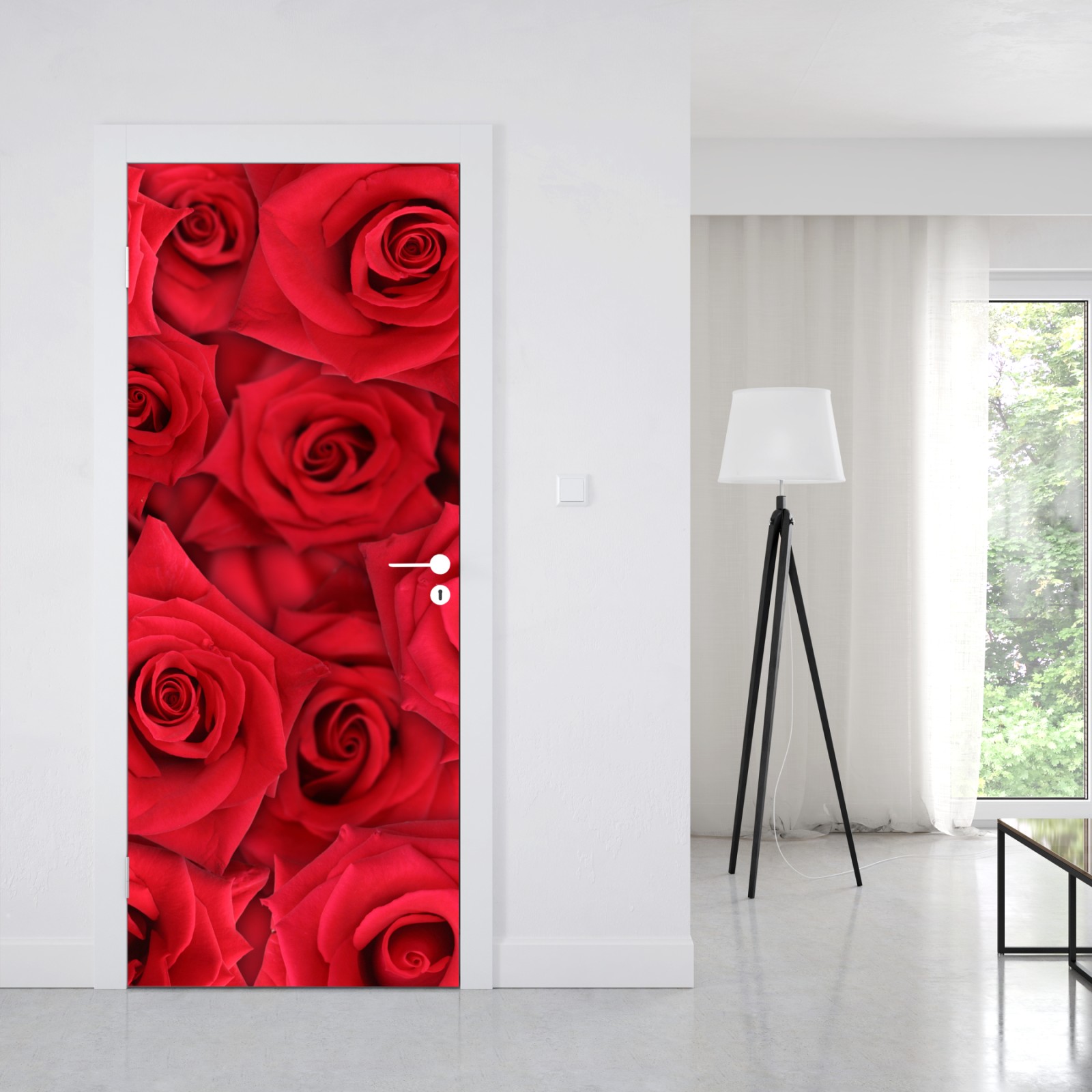 Kräftige Nahaufnahme roter Rosen sorgt für einen romantischen und eleganten Akzent in jedem Raum.