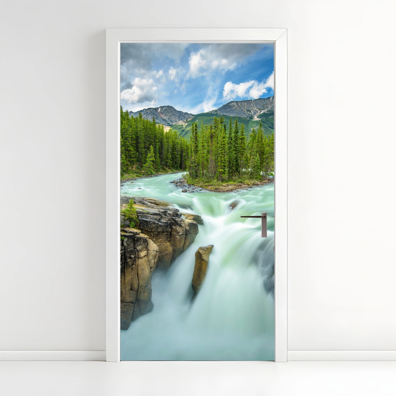 Türaufkleber Neblige flussklamm bei Upper Sunwapta Falls, Jasper National Park