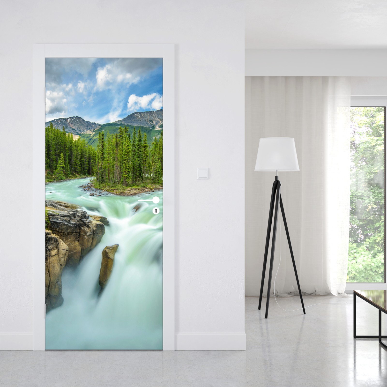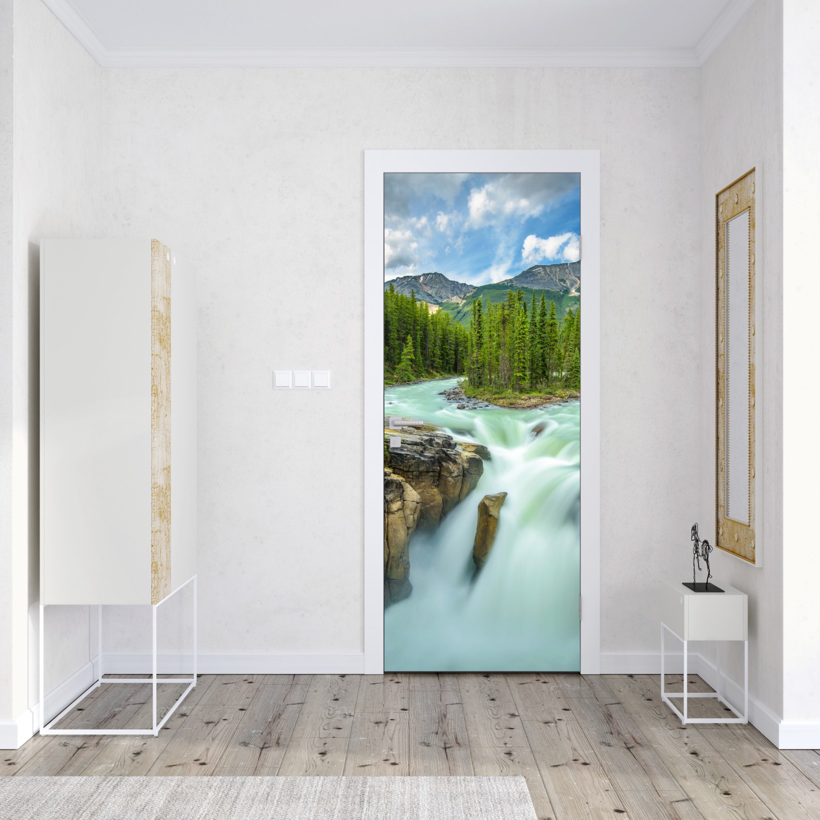 Türaufkleber neblige flussklamm bei Upper Sunwapta Falls, Jasper National Park