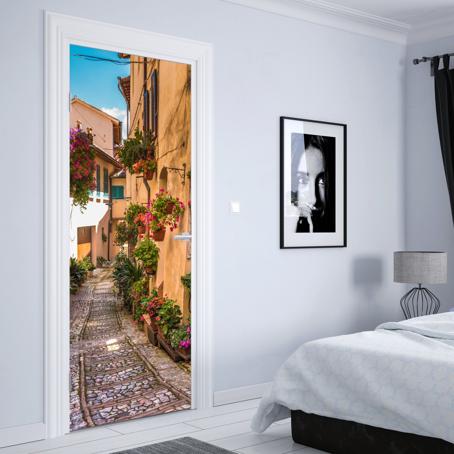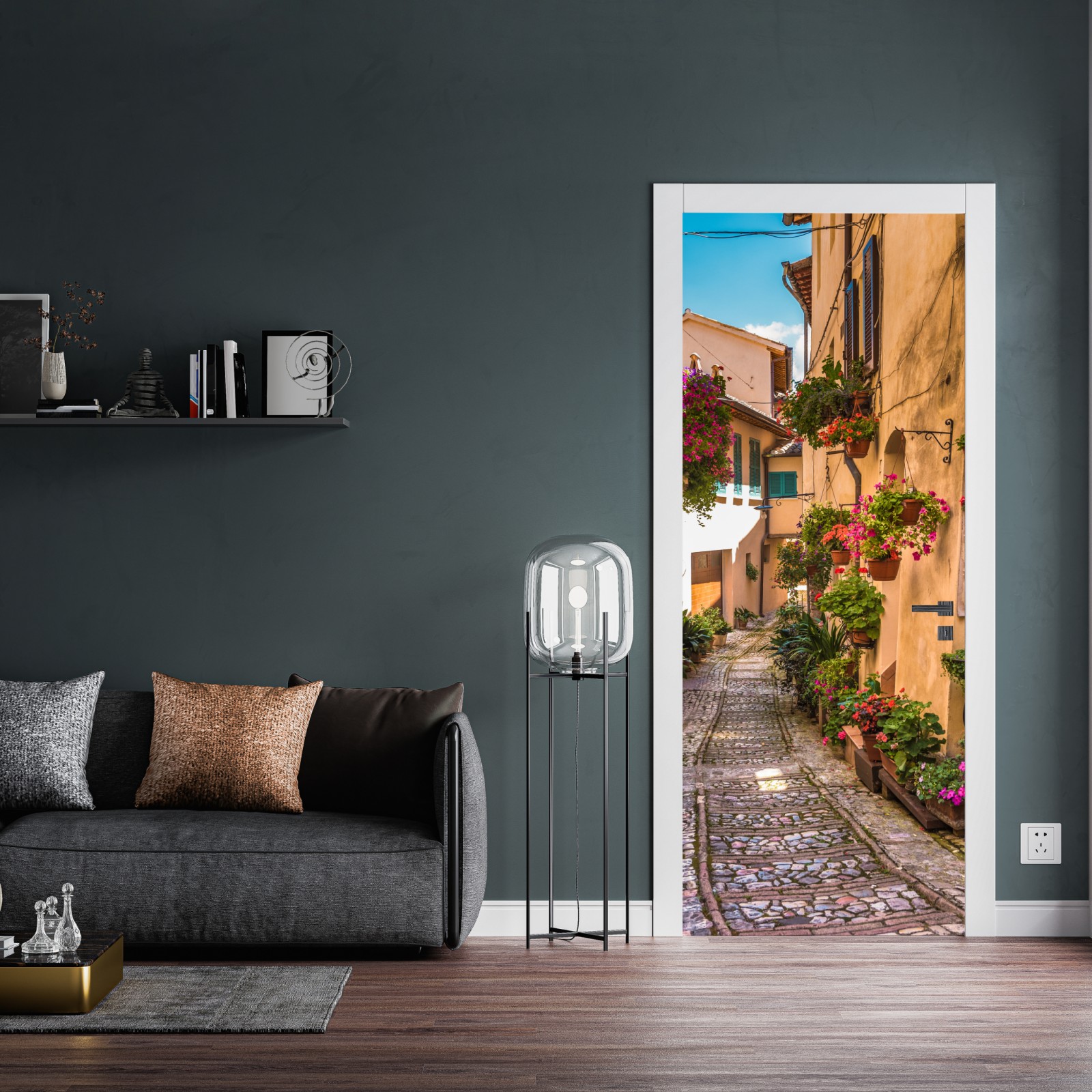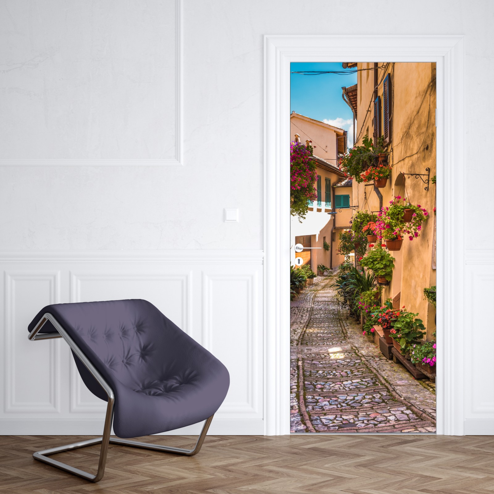 Türaufkleber sonnige blumengasse in Umbrien