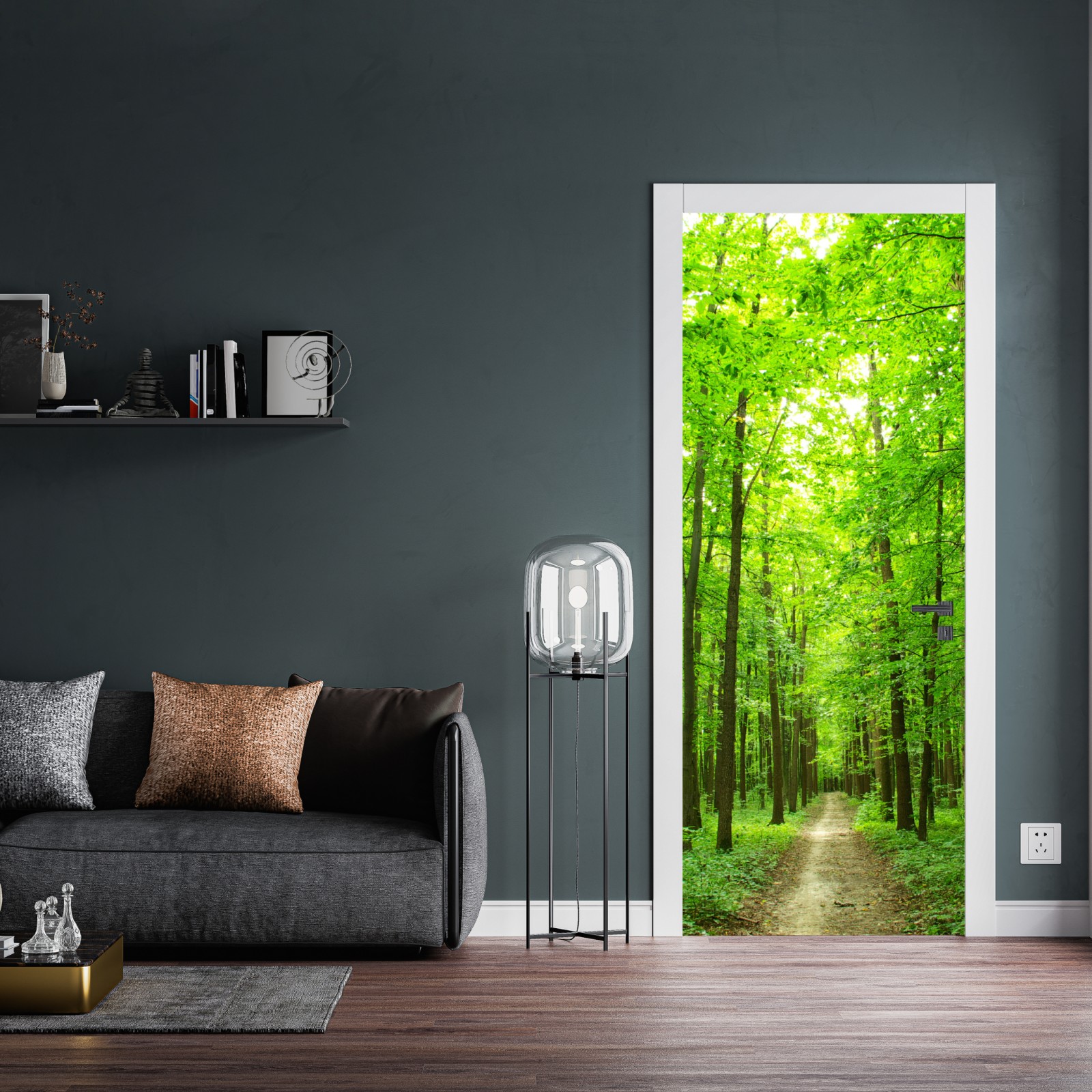ein ruhiger waldweg im satten grün, der ihrem raum natürliche ruhe und frische verleiht.