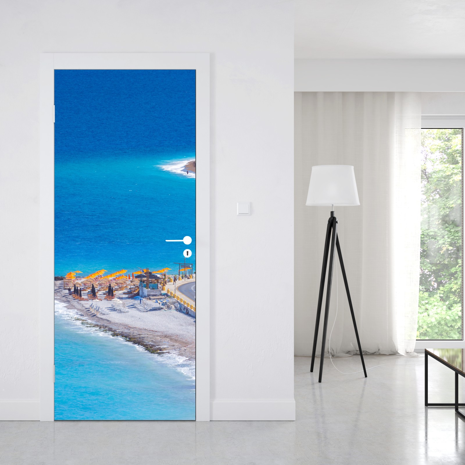 Türaufkleber Rhodos strand mit bunten sonnenschirmen