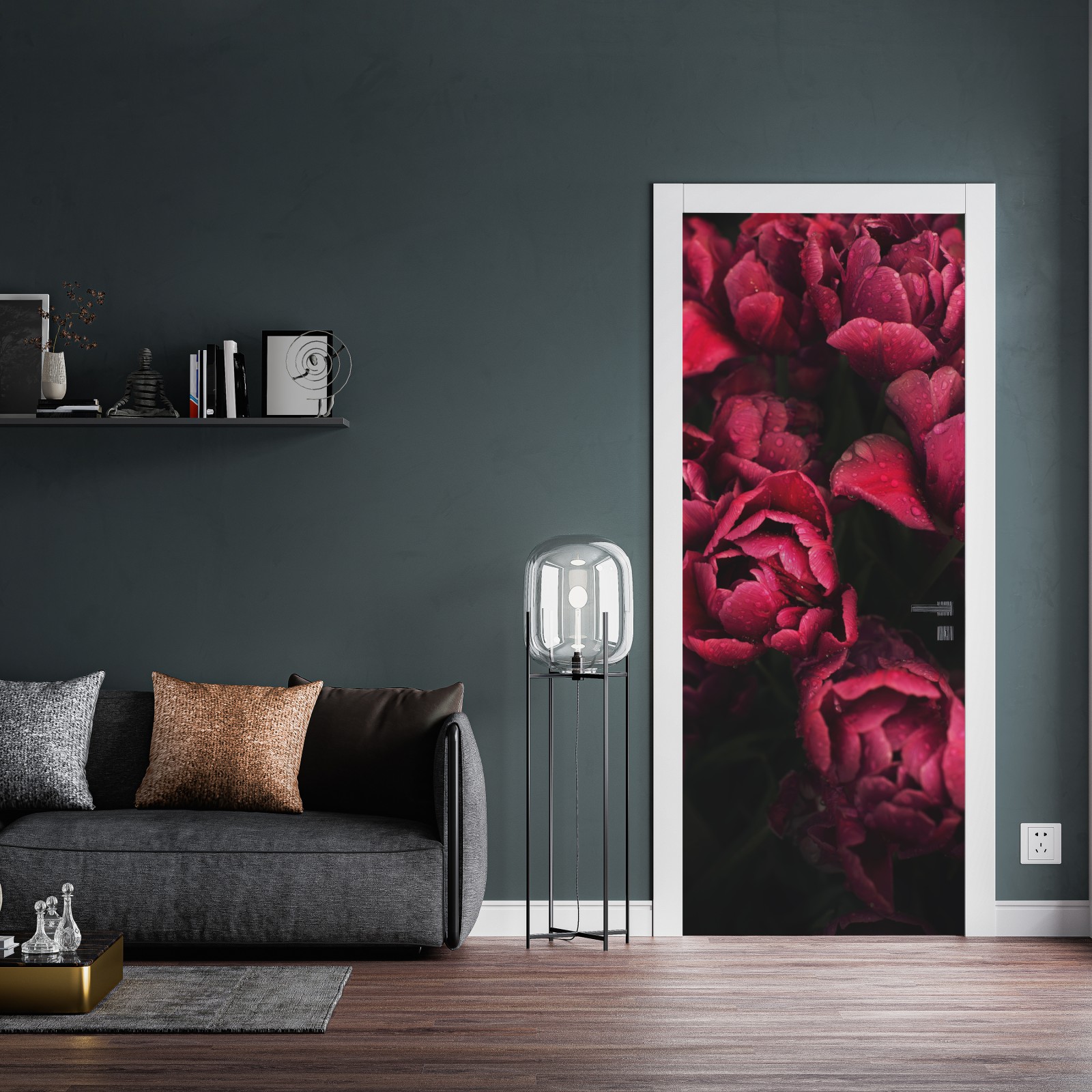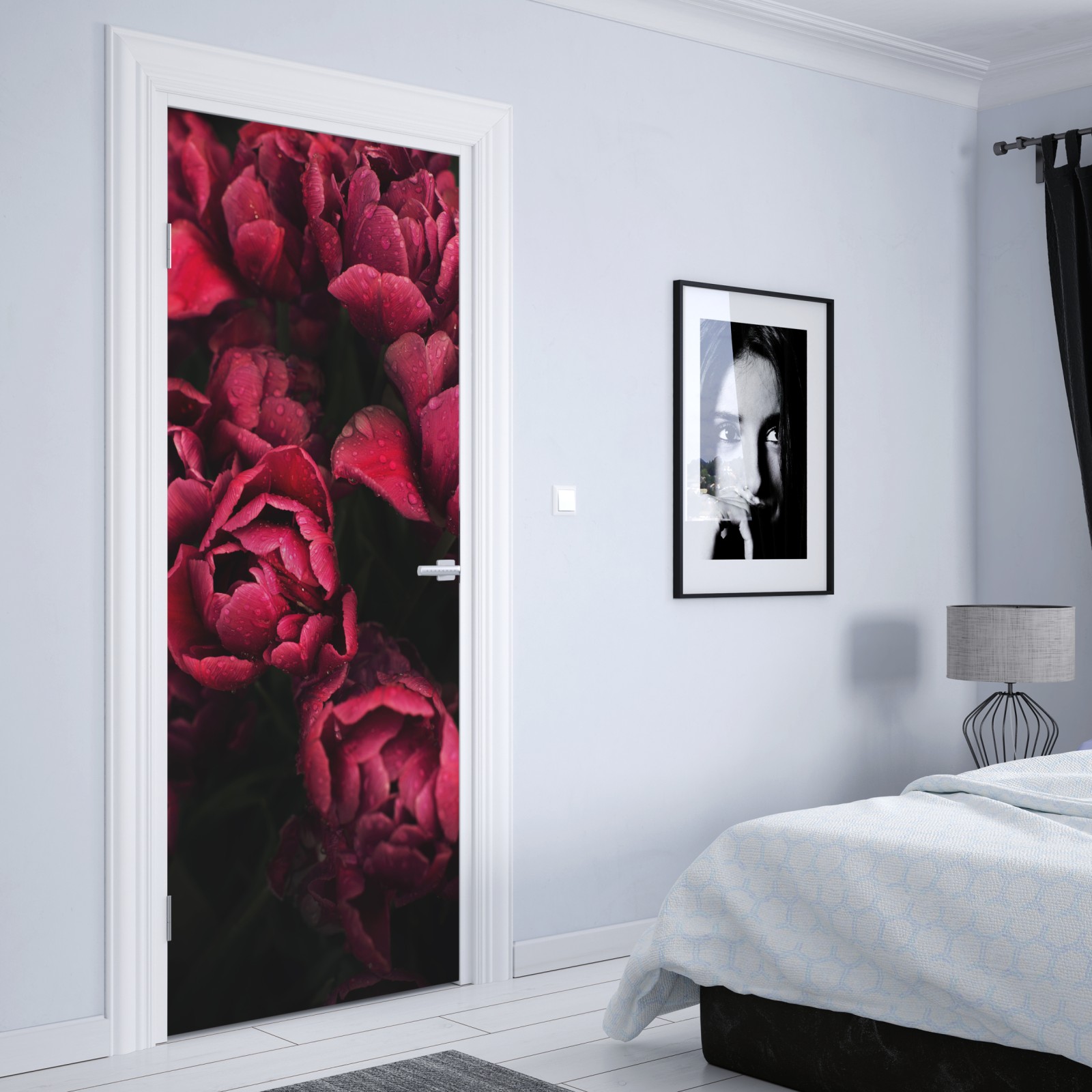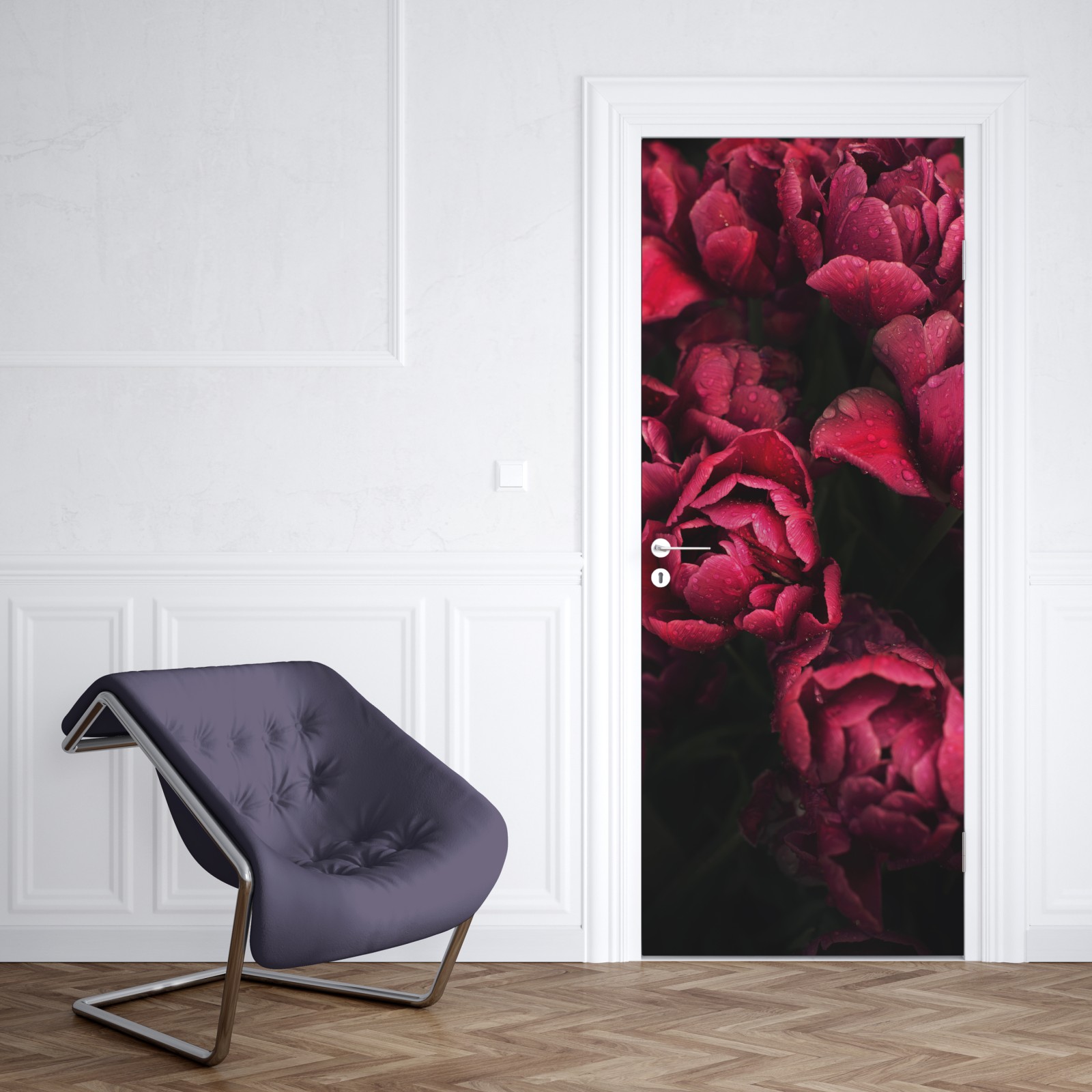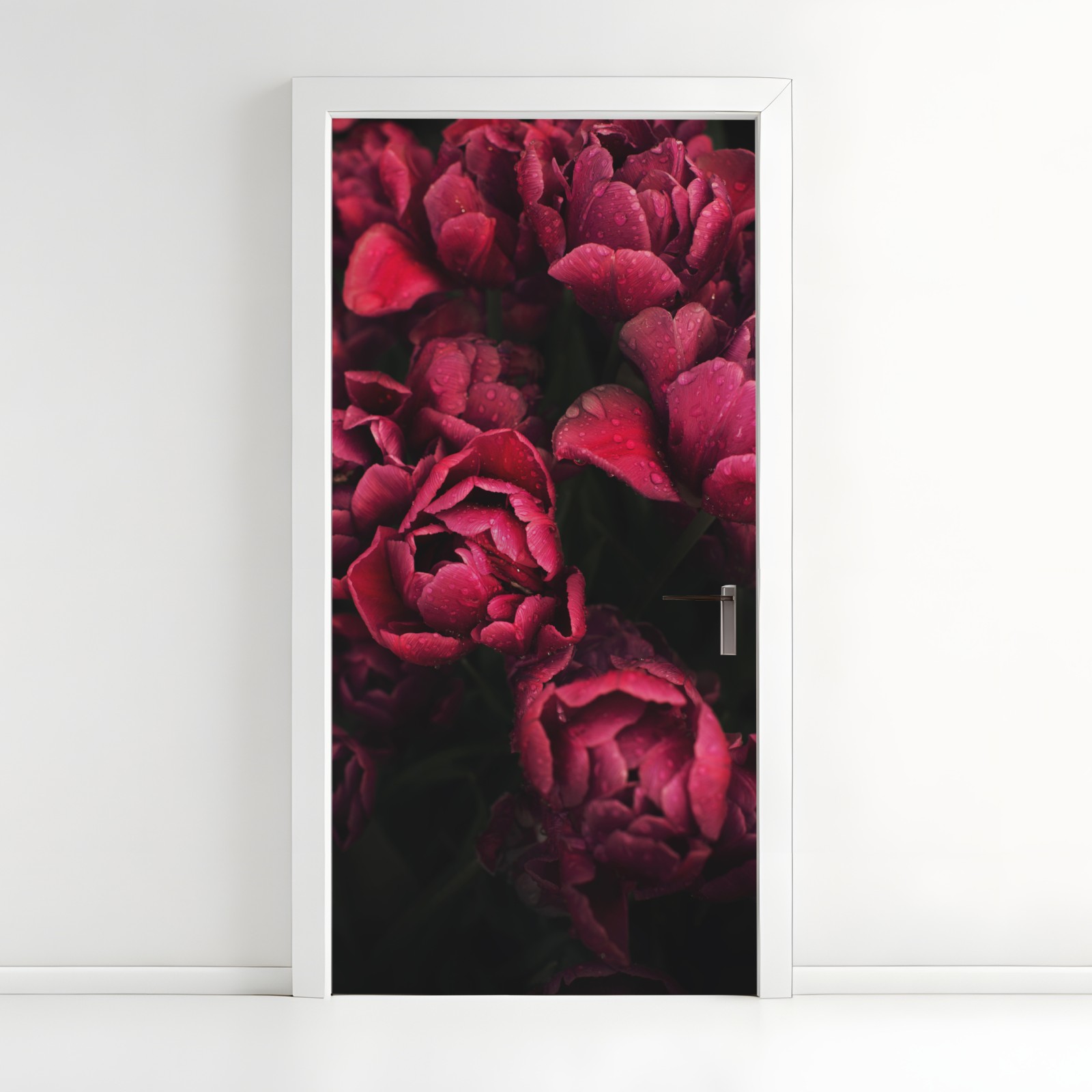 Verleihen Sie Ihren Wänden eine sanfte, stimmungsvolle Note mit nahaufgenommenen Blüten, die von Wassertropfen bedeckt sind.