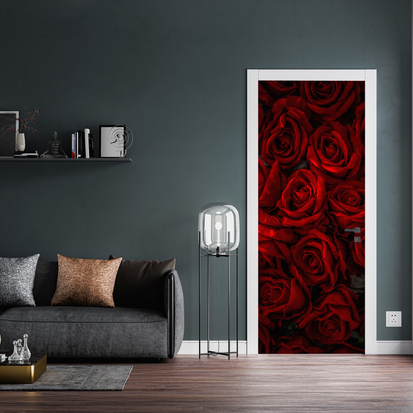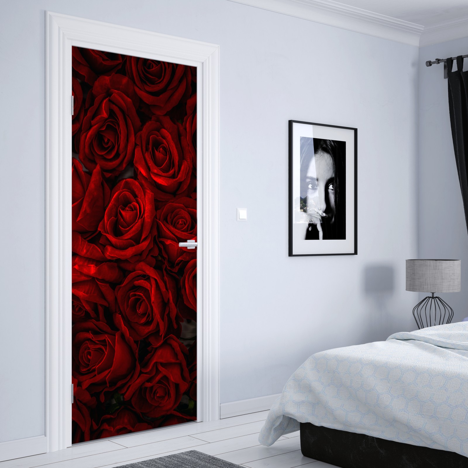 Verleihen Sie Ihrem Raum Wärme und Romantik mit einer intensiven Nahaufnahme roter Rosen.