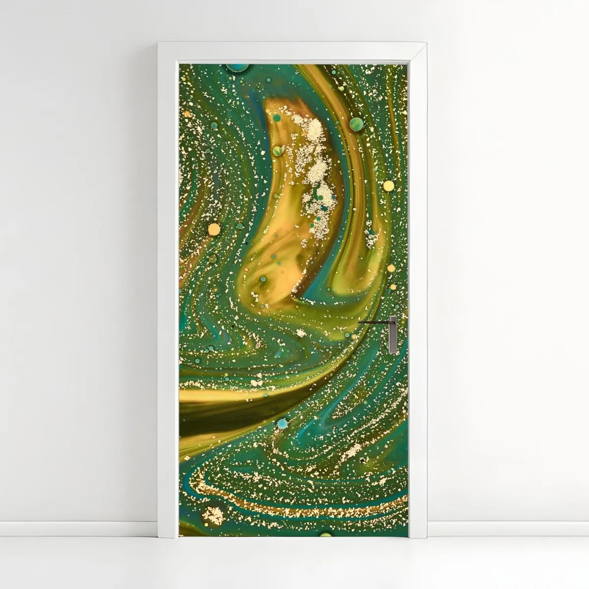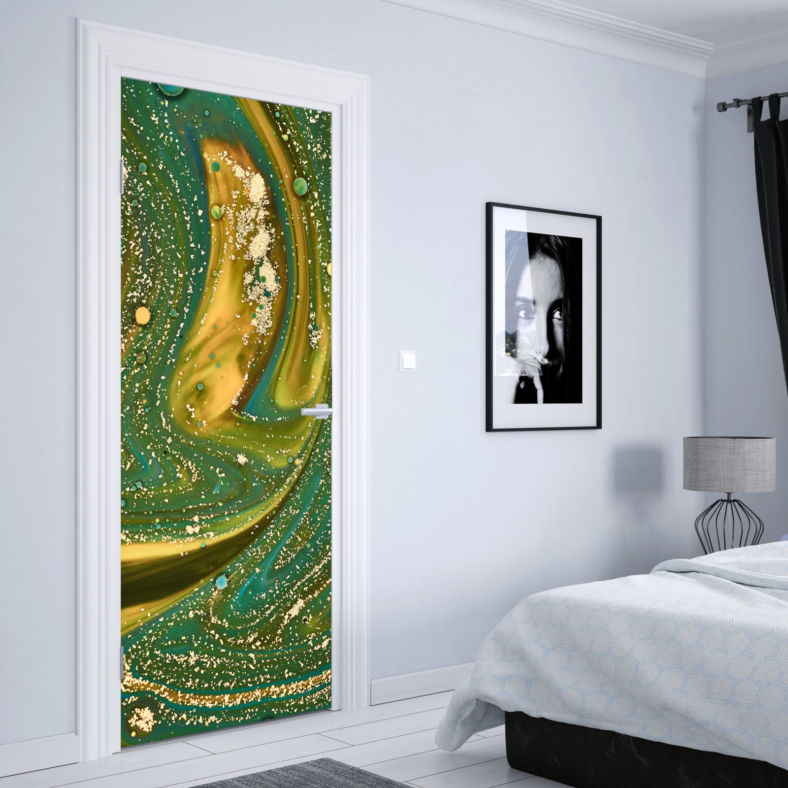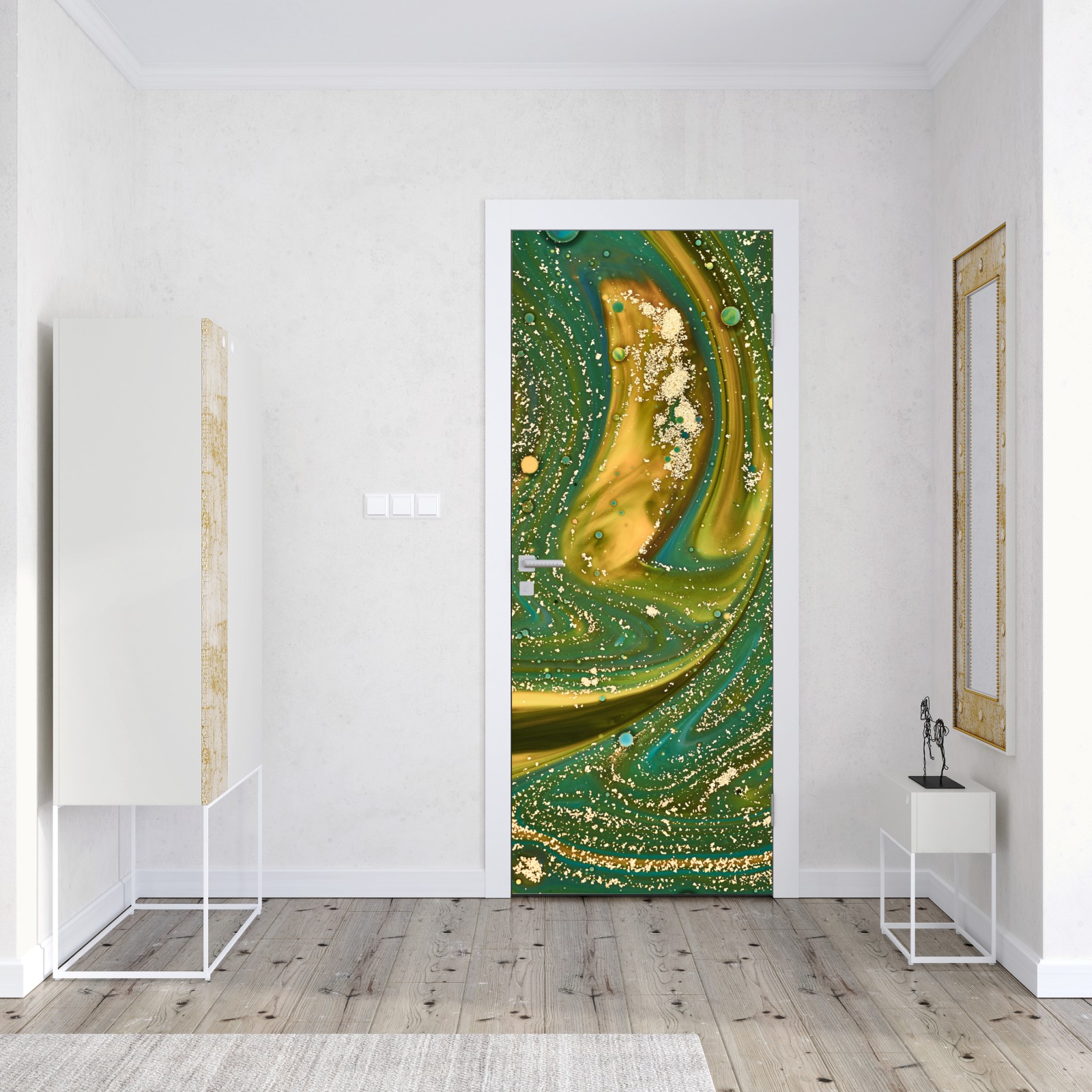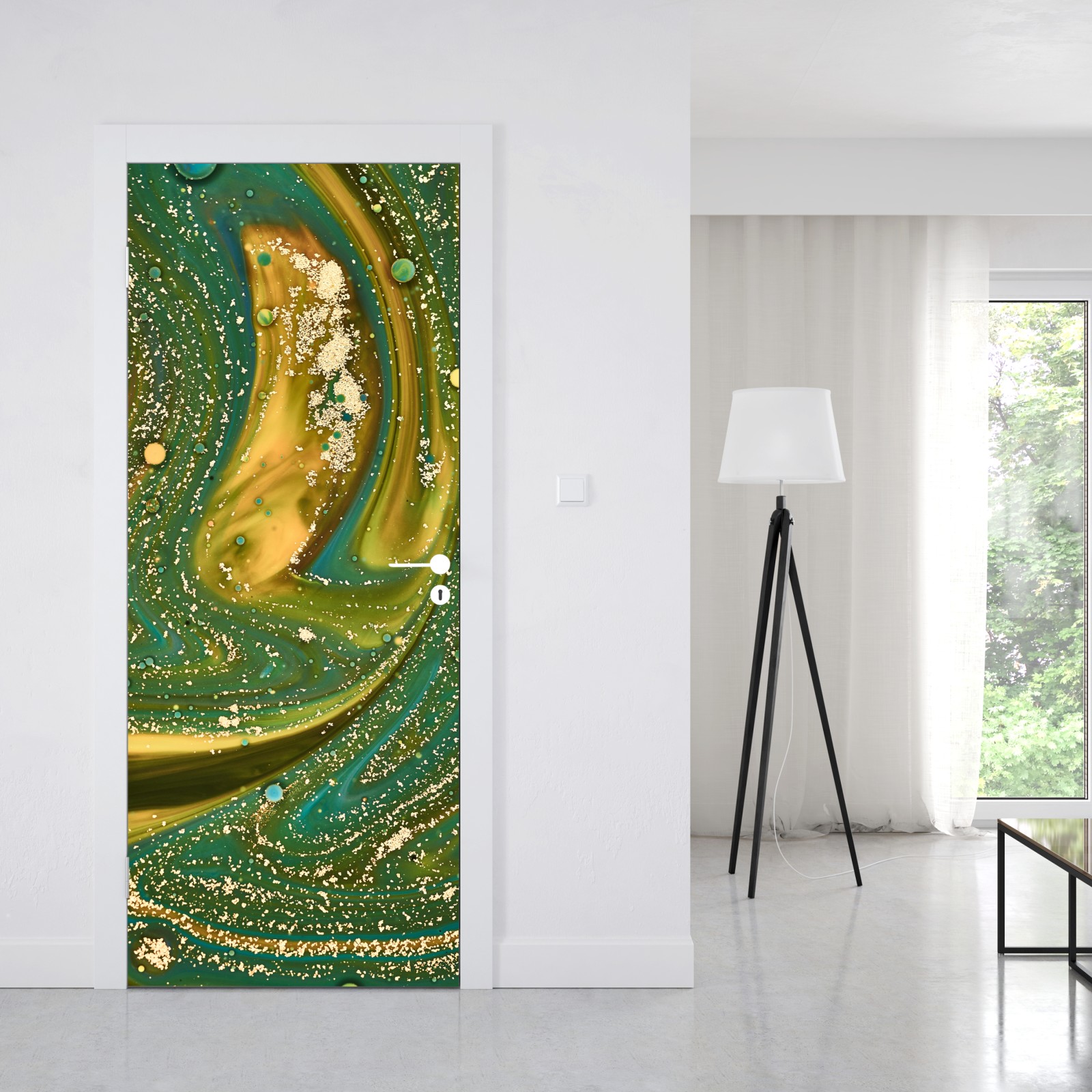 Türaufkleber grün-goldene flüssige marmorierte kunst