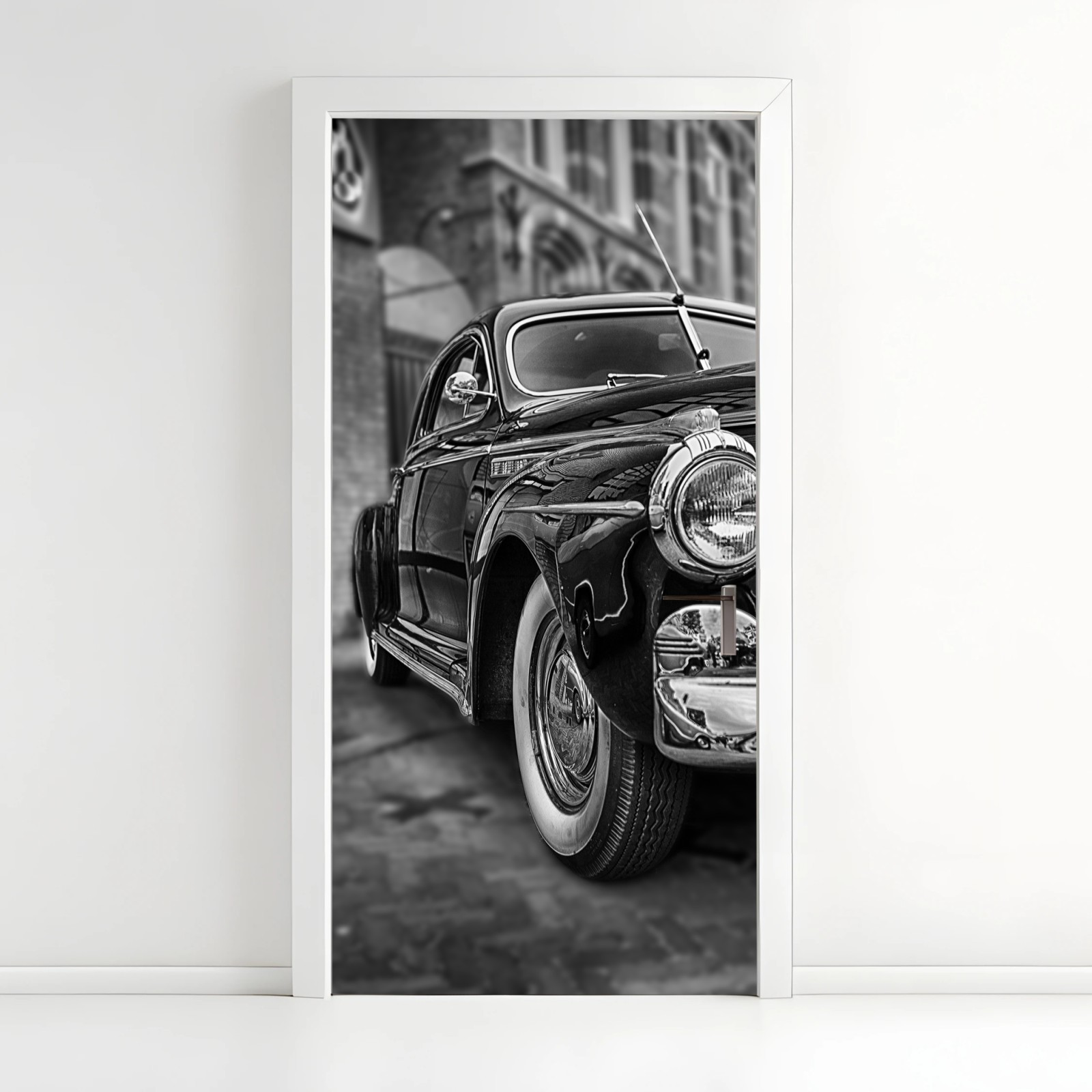 Türaufkleber Vintage klassisches auto auf kopfsteinpflaster