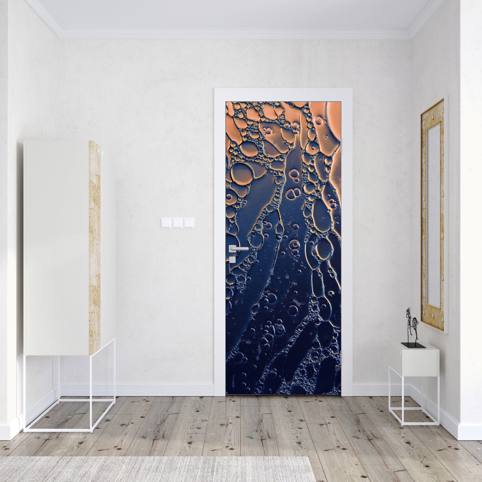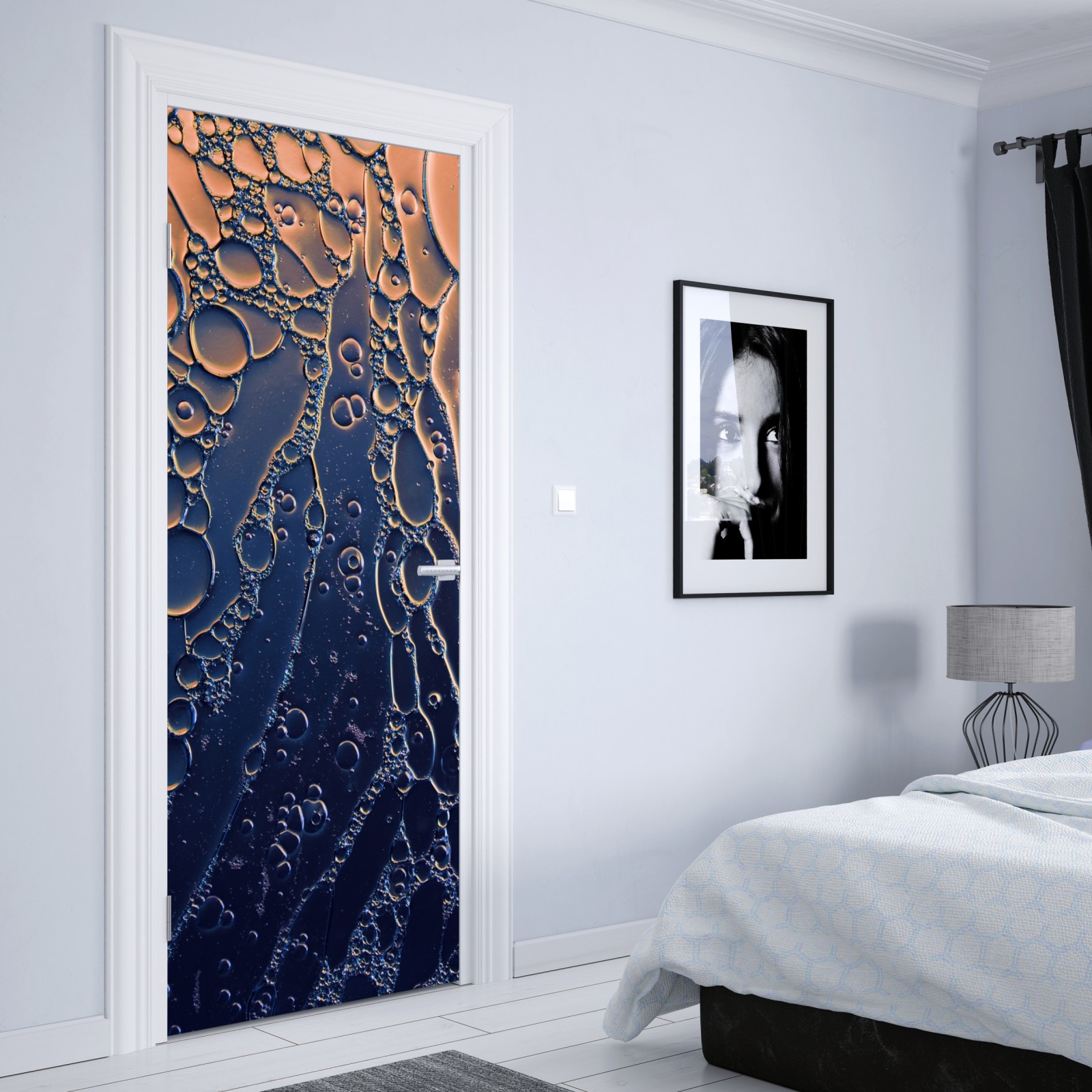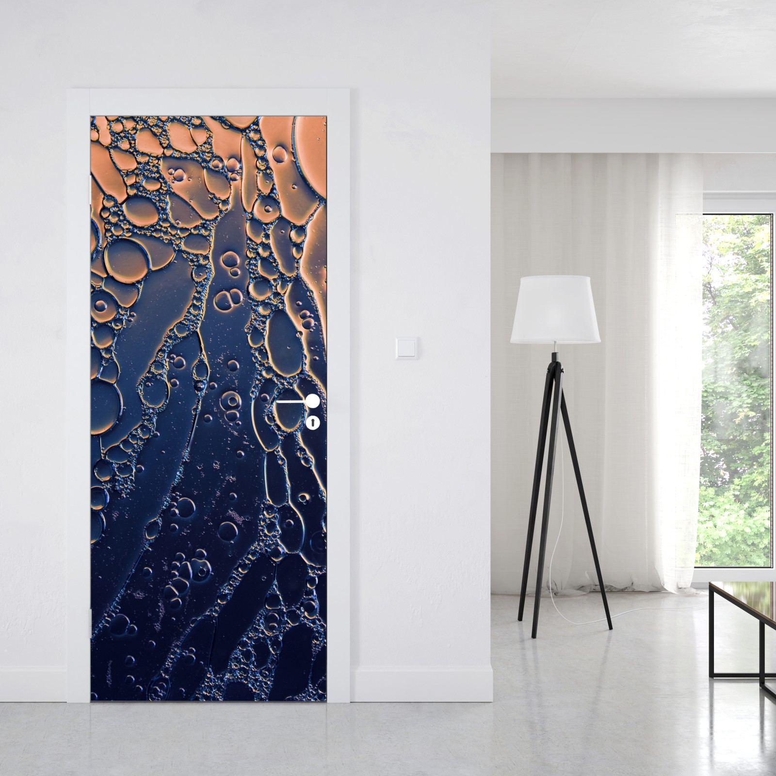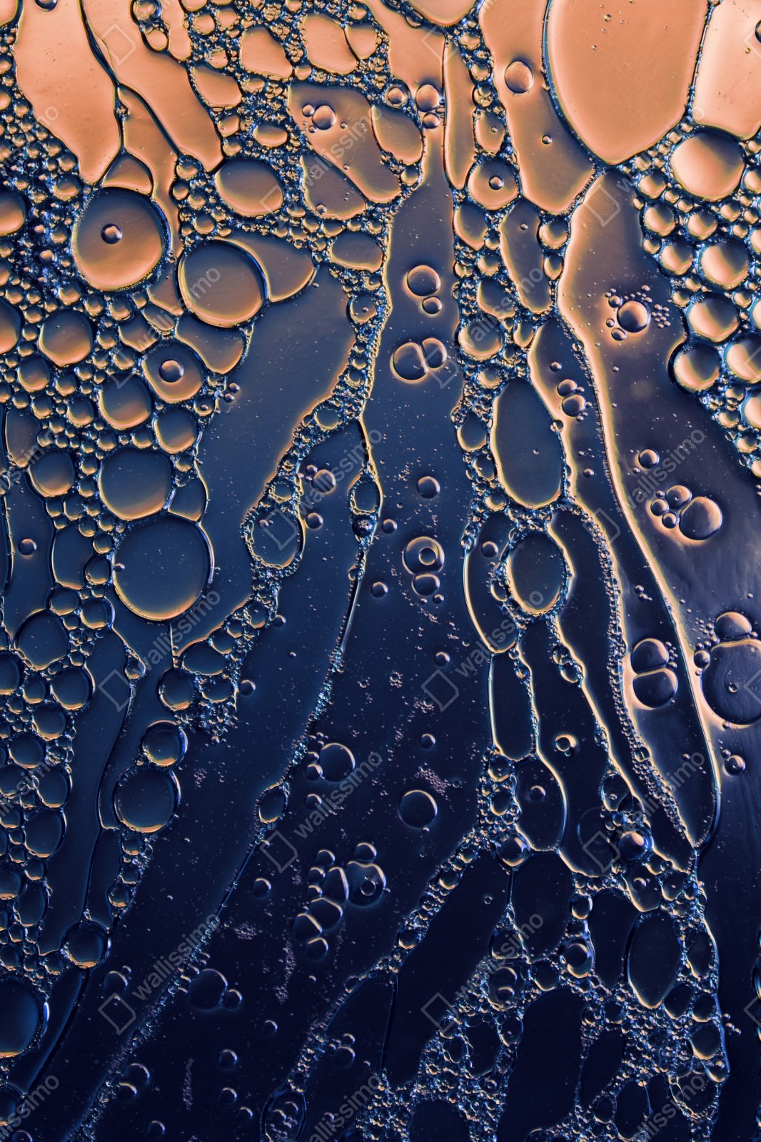 Bringen Sie mit einer faszinierenden abstrakten Komposition aus blauen und goldenen Blasen moderne Akzente in Ihr Zuhause.