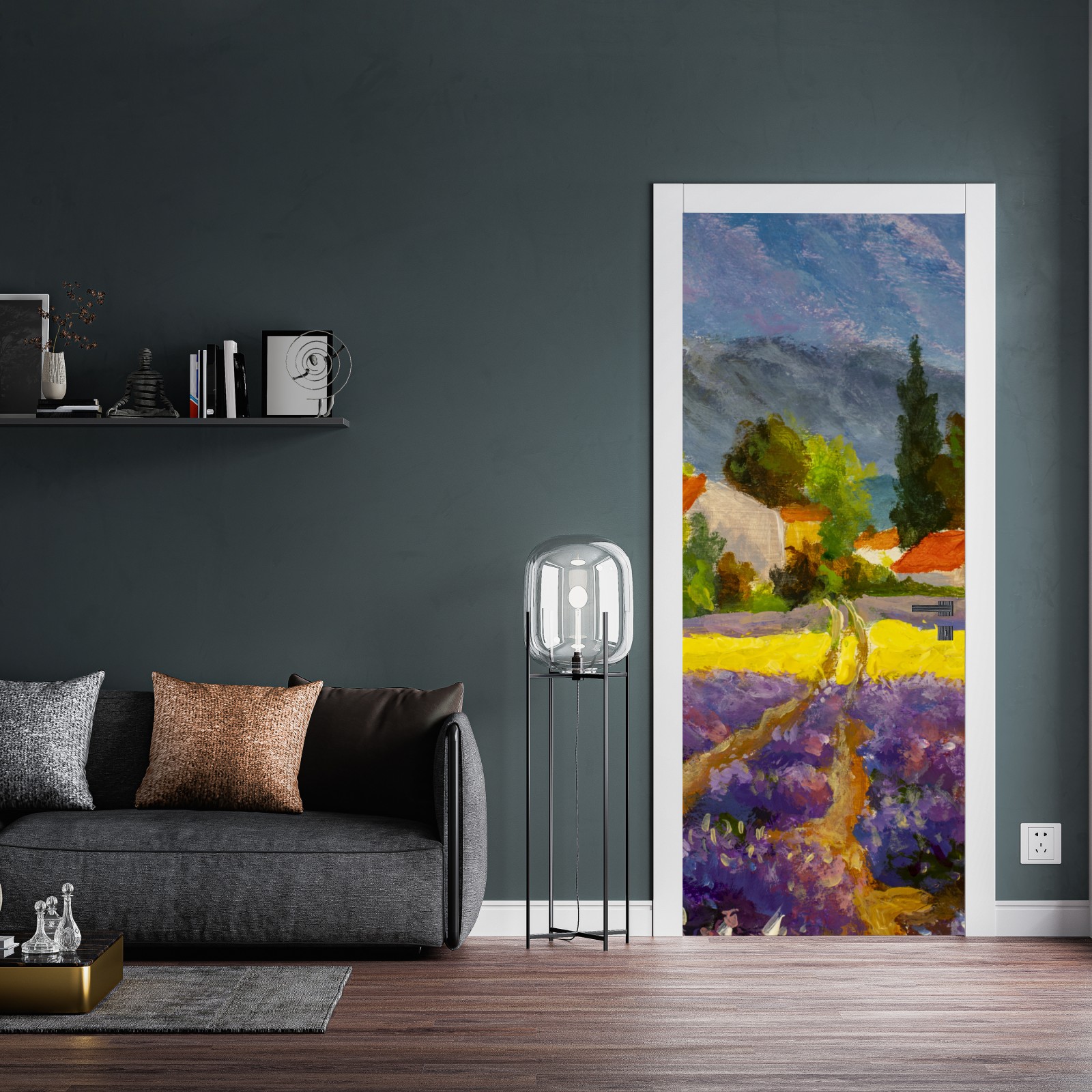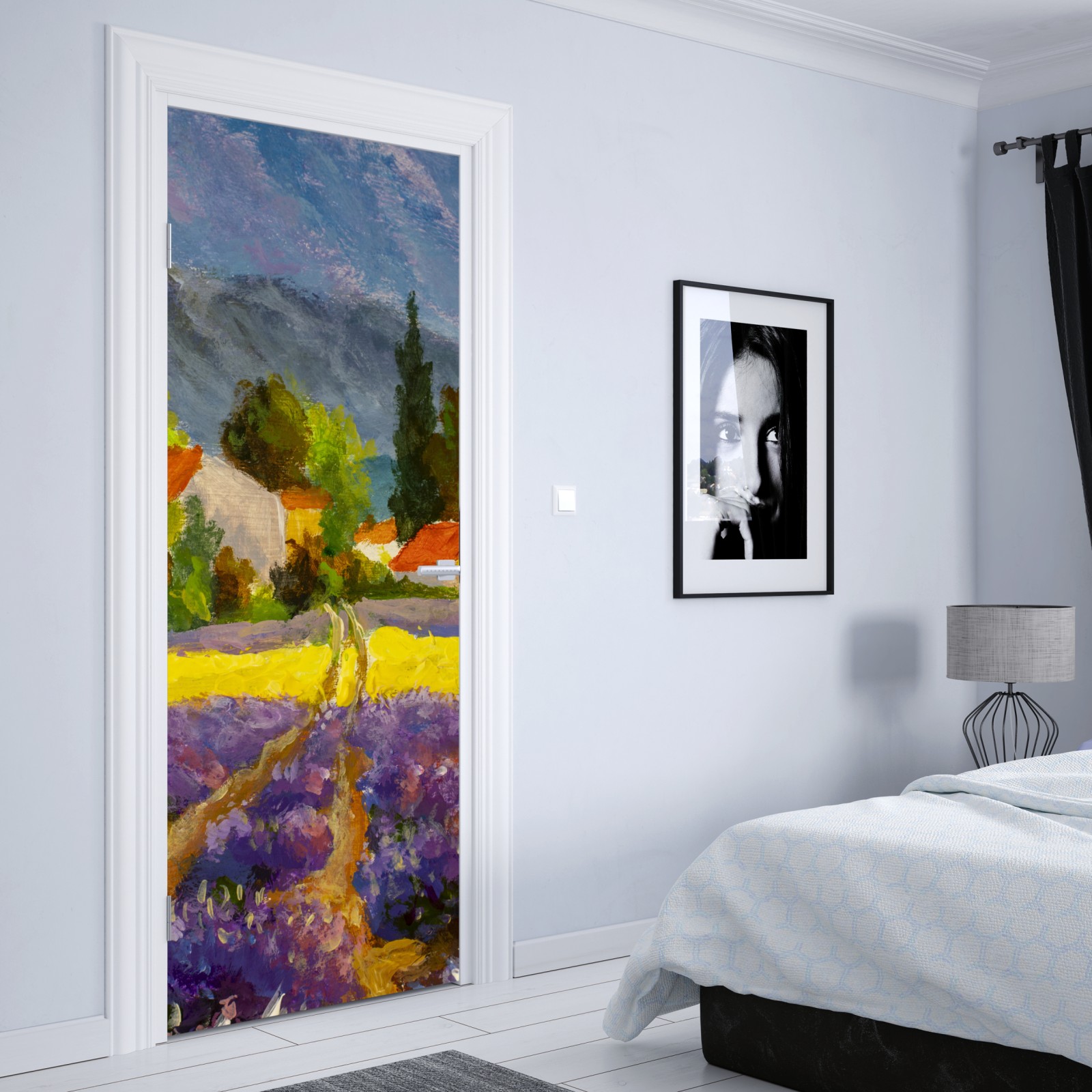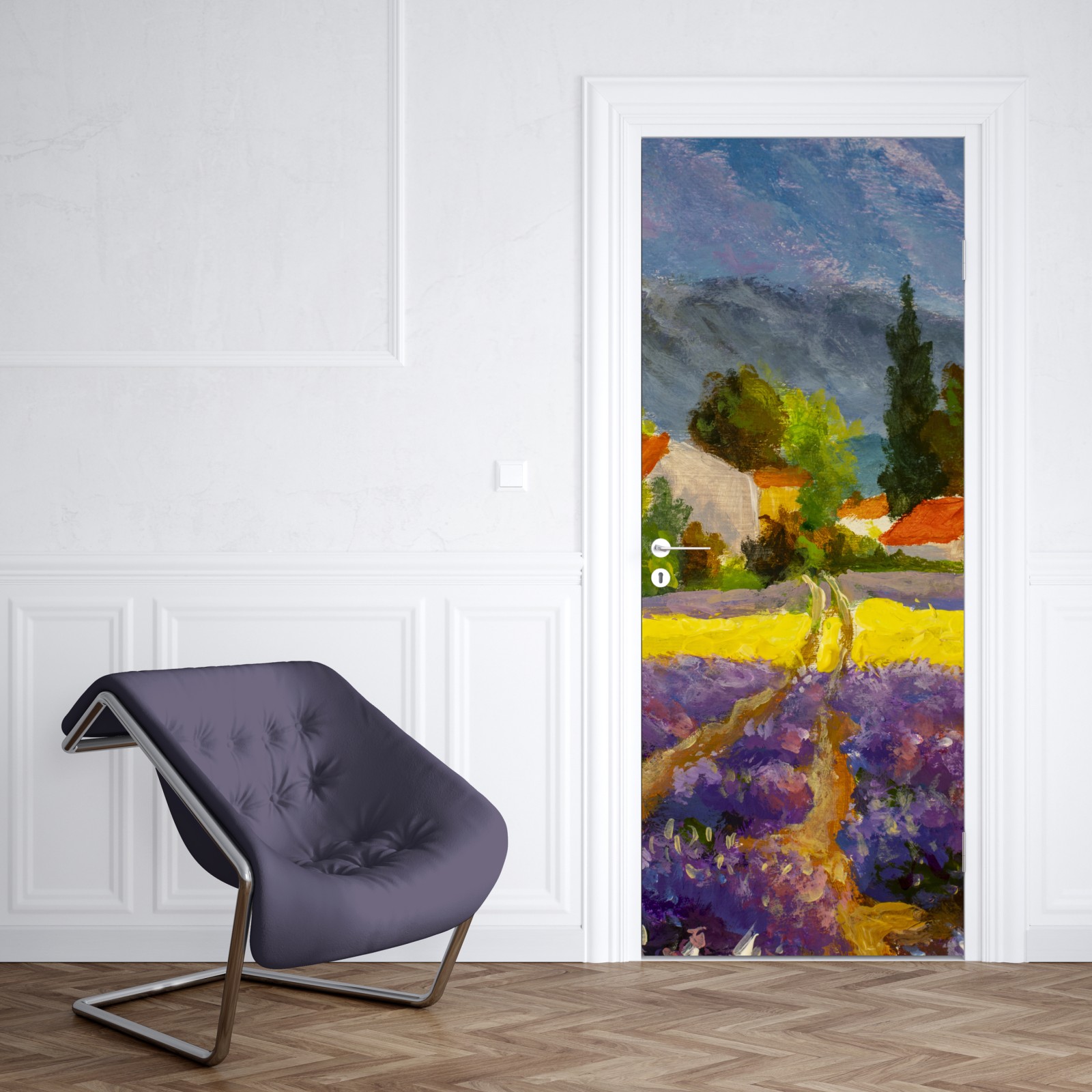 Türaufkleber lavendelfelder bei sonnenuntergang