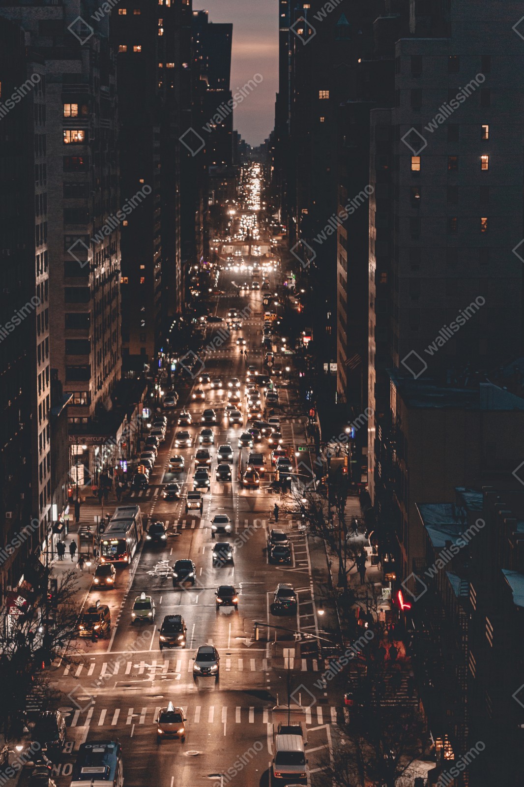 Erleben Sie die pulsierende Atmosphäre Manhattans bei Nacht mit diesem stimmungsvollen Straßenbild, perfekt für urbane Innenräume.