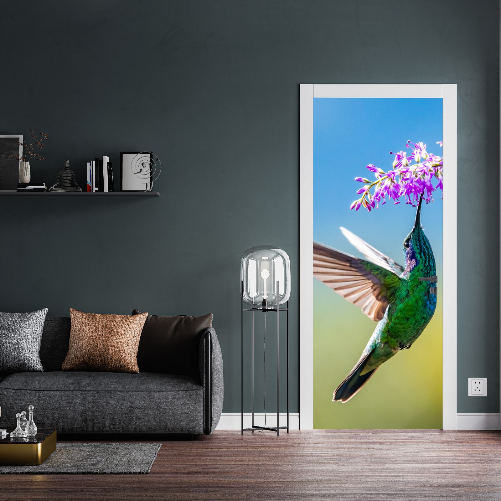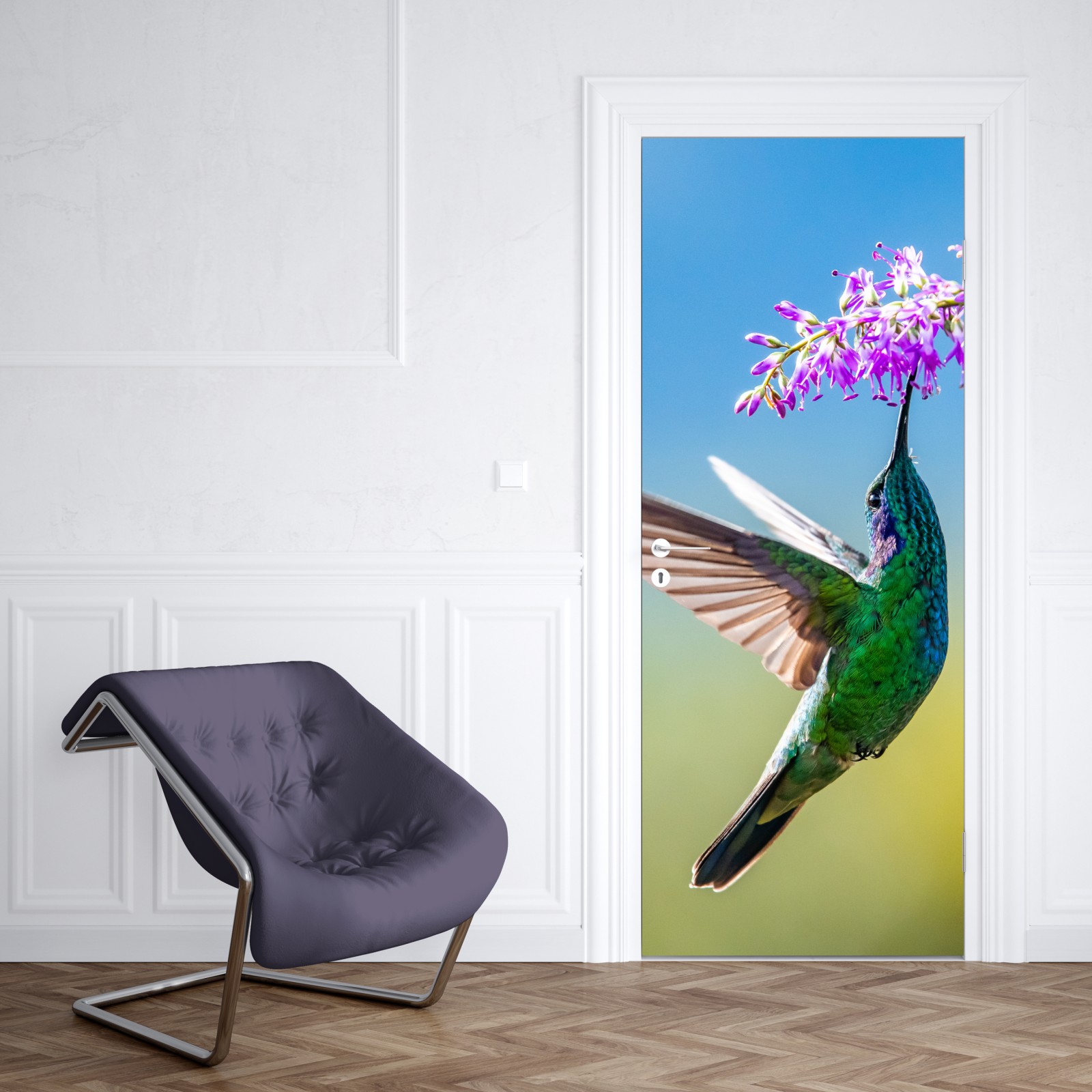 Türaufkleber kolibri an violetter blüte