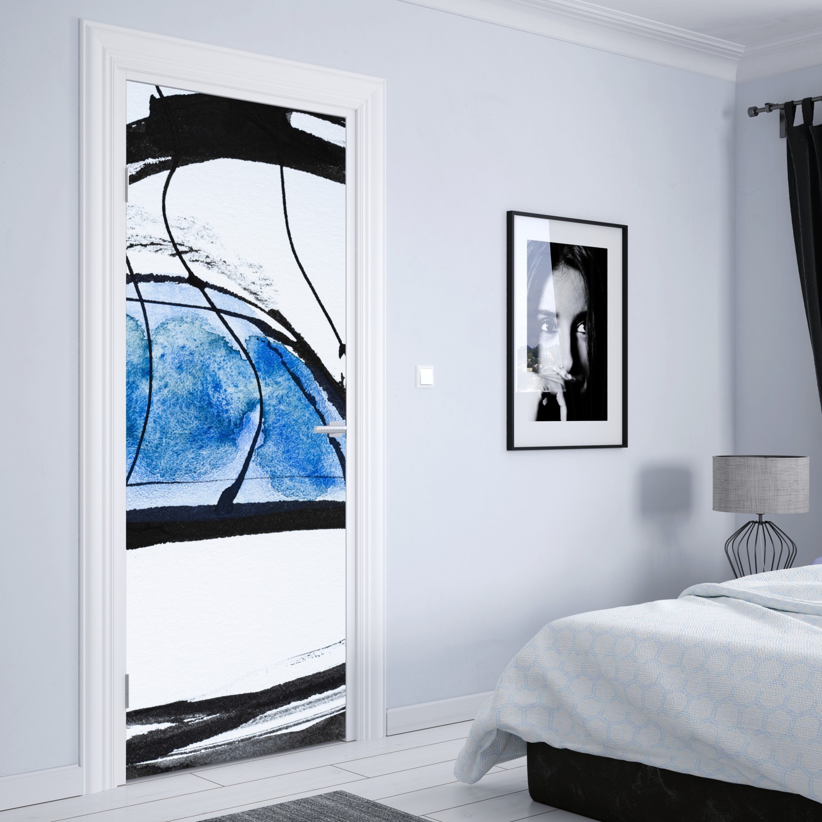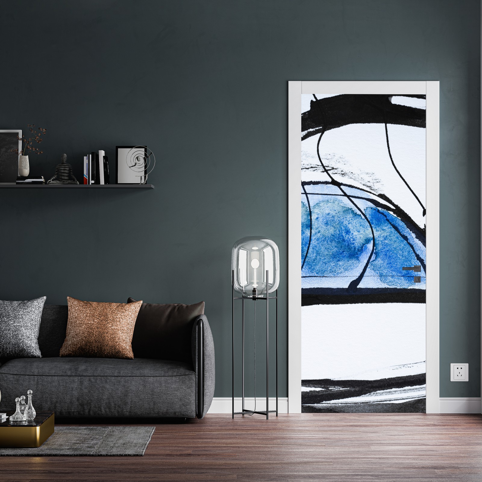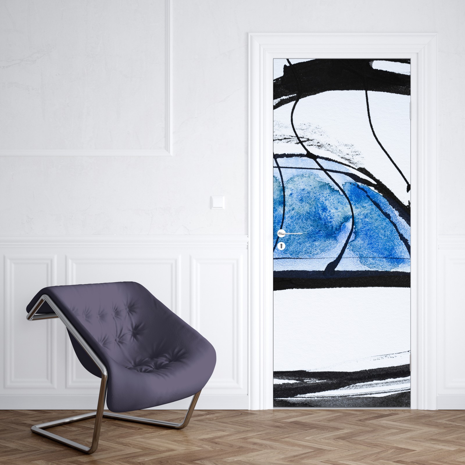 Türaufkleber blaue abstrakte tusche- und aquarellkomposition