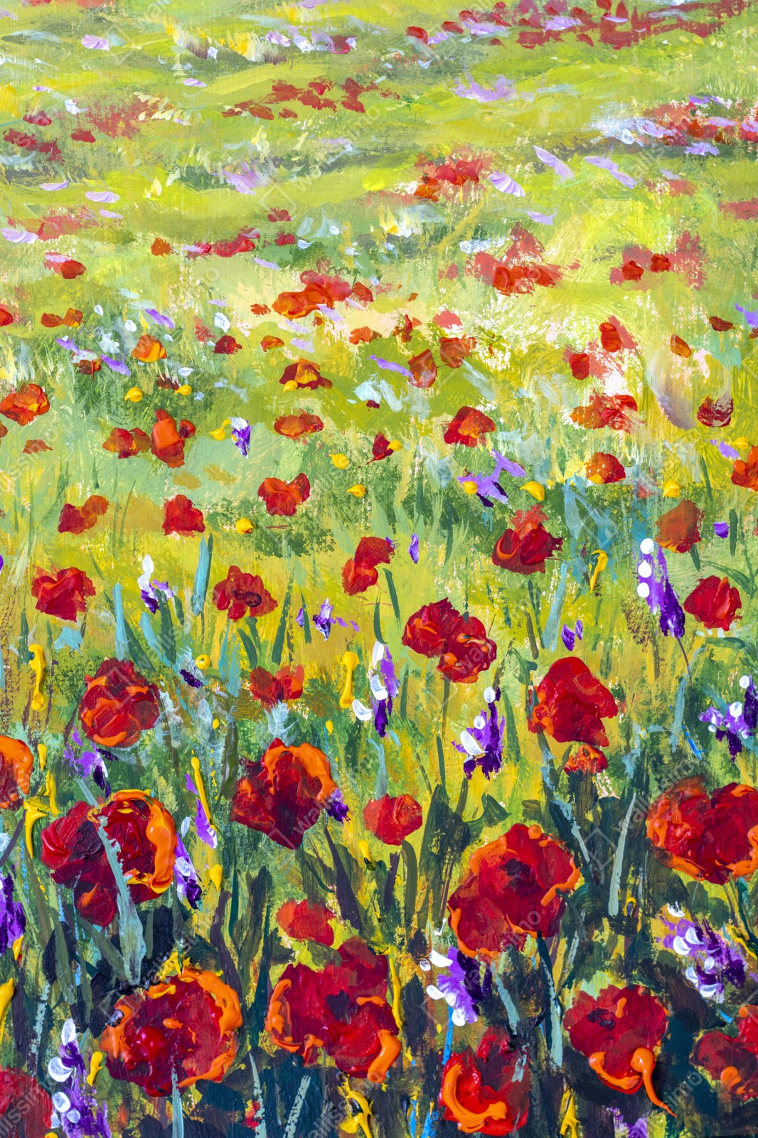 Bringen Sie lebendige Farben und natürliche Ruhe in Ihr Zuhause mit dieser impressionistischen Mohnwiese.