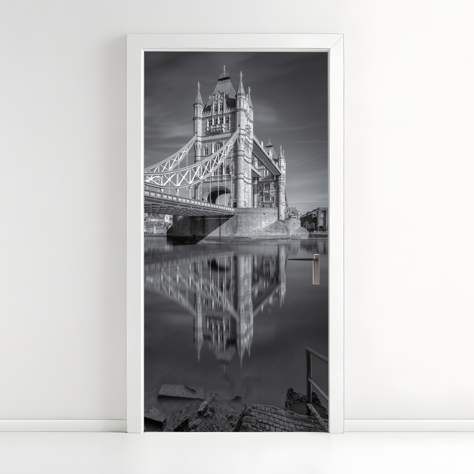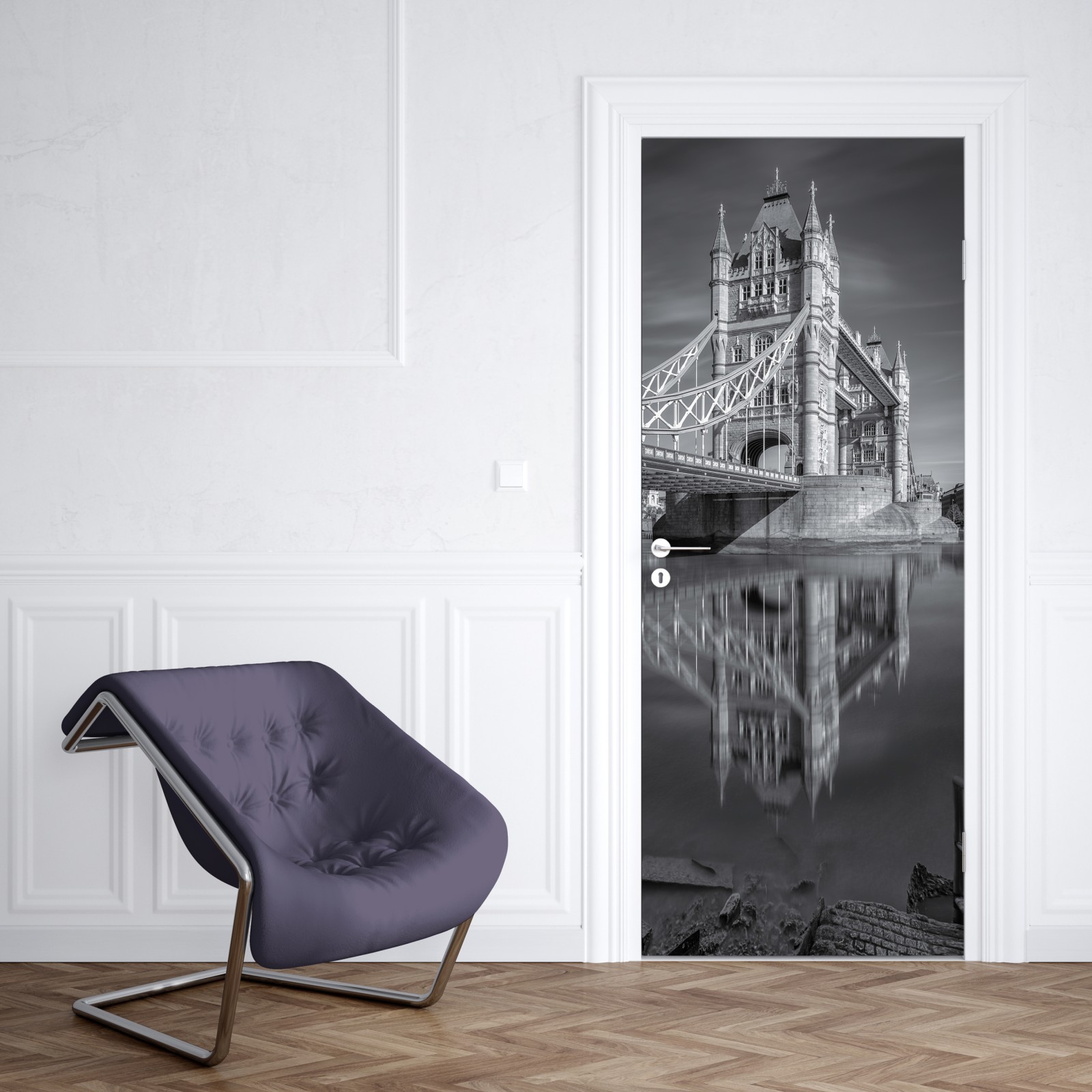 Türaufkleber Tower Bridge reflektiert in schwarzweiß