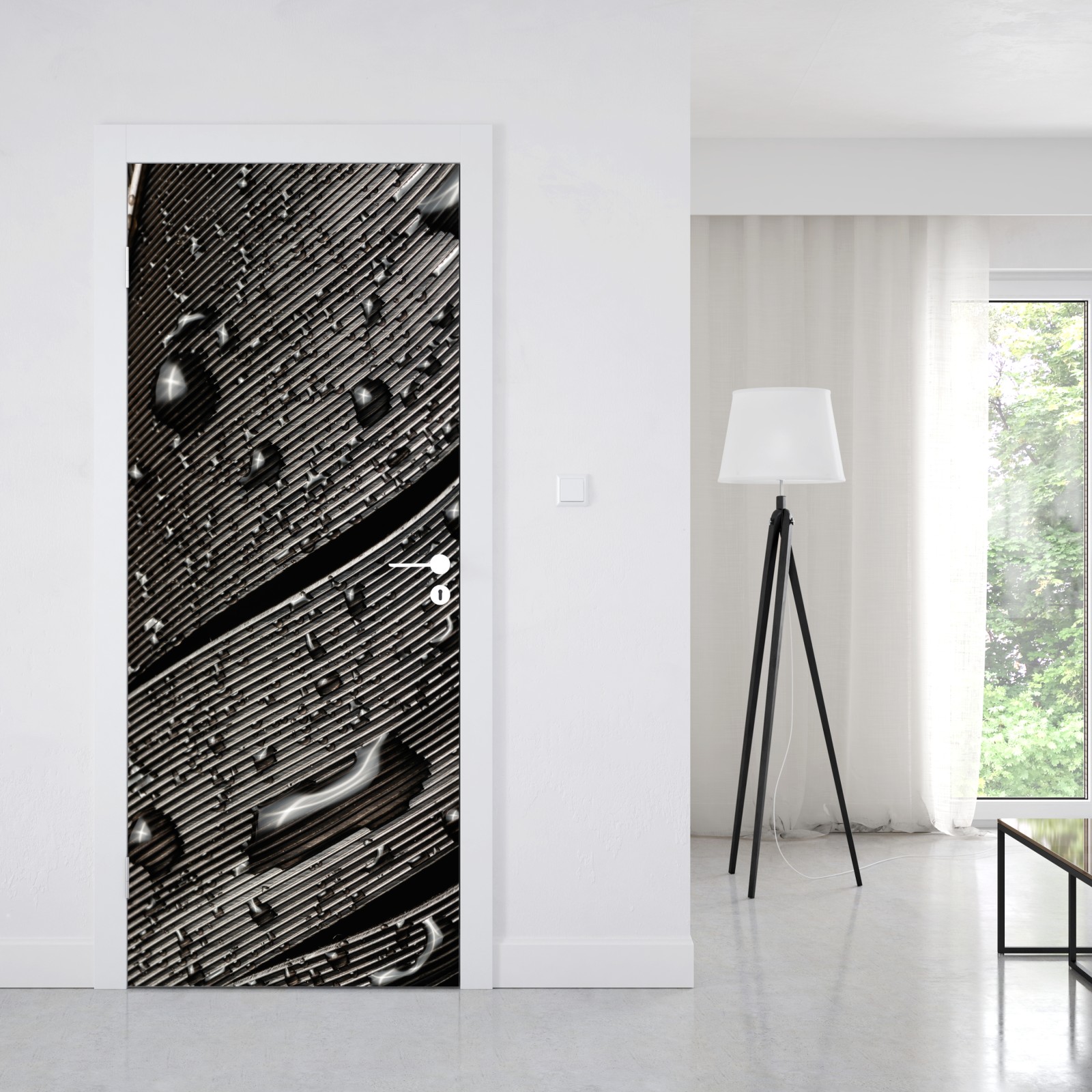 Türaufkleber monochrome feder mit wassertropfen