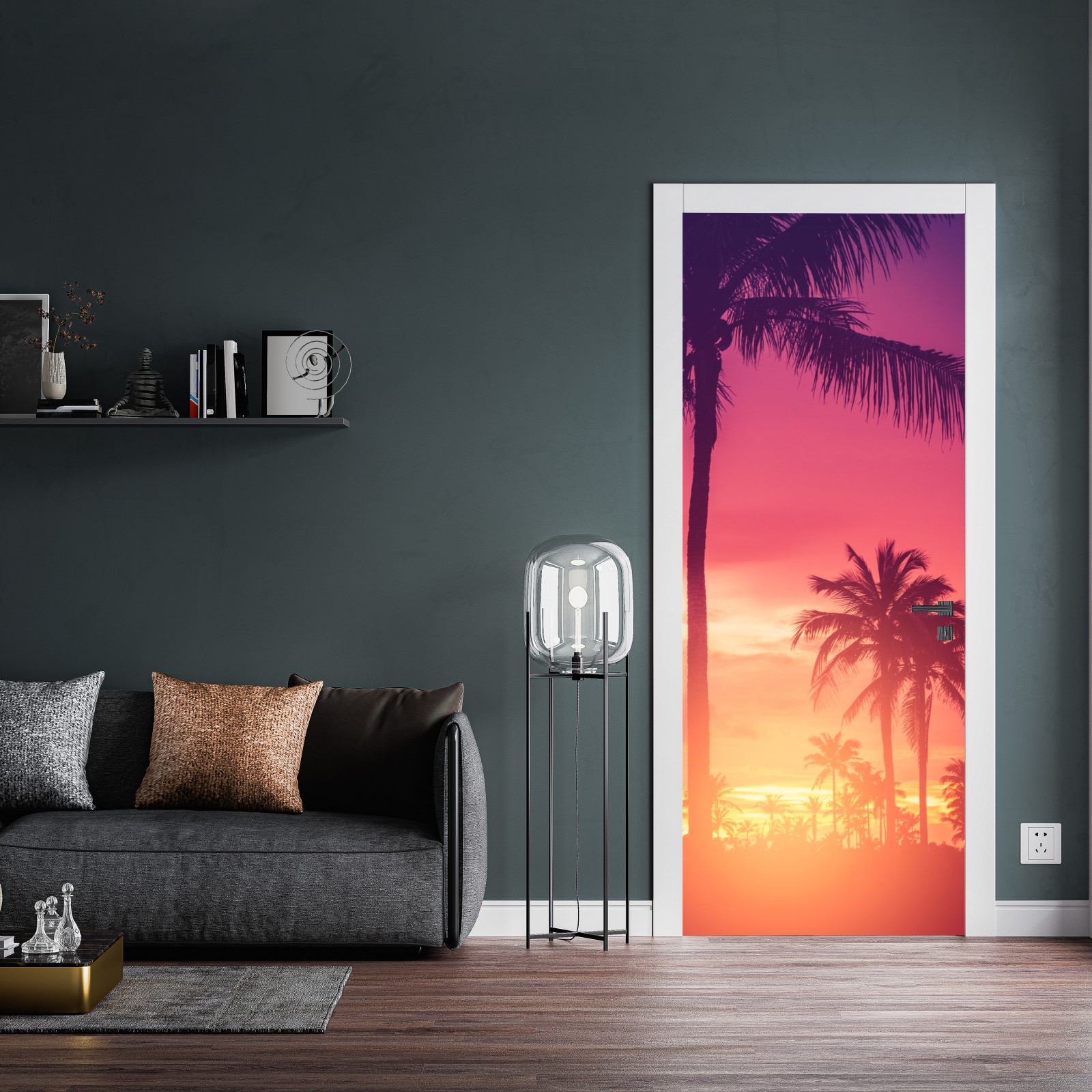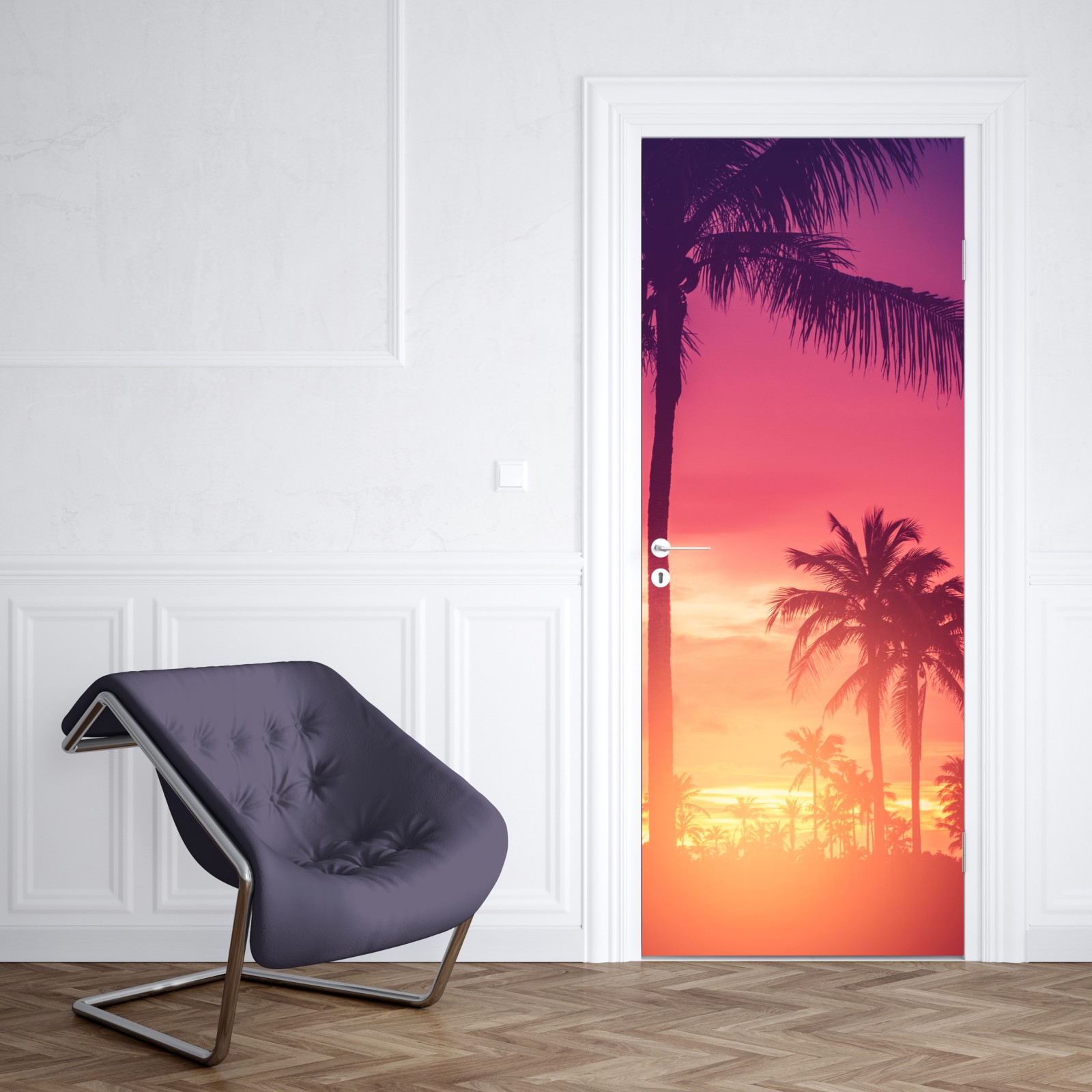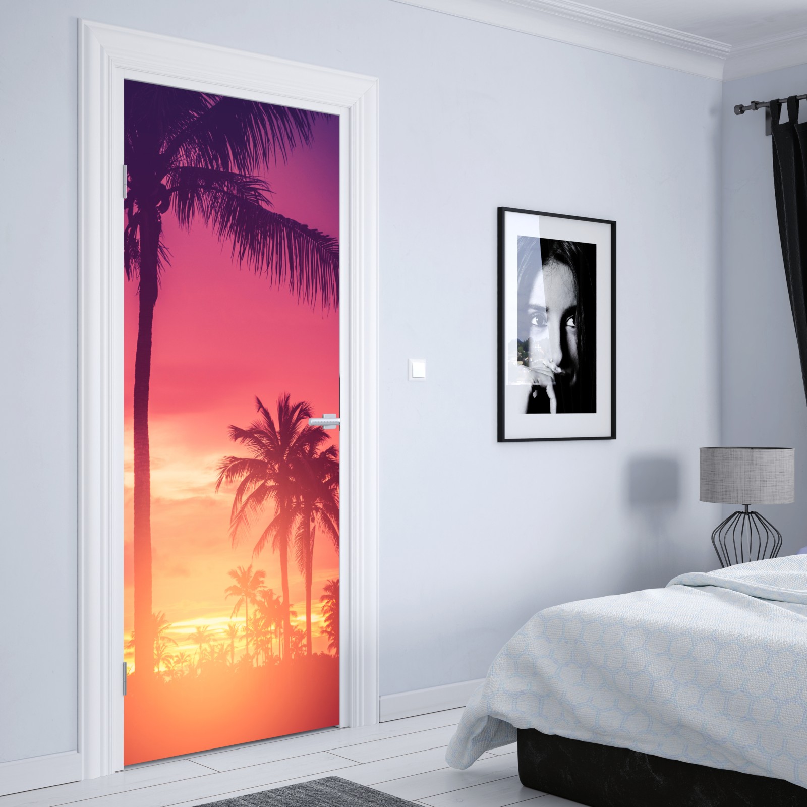 Türaufkleber tropischer sonnenuntergang mit palmen