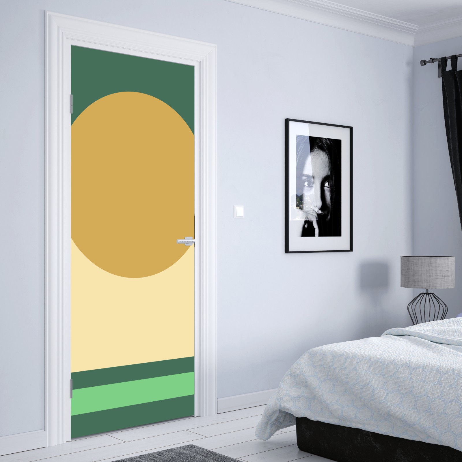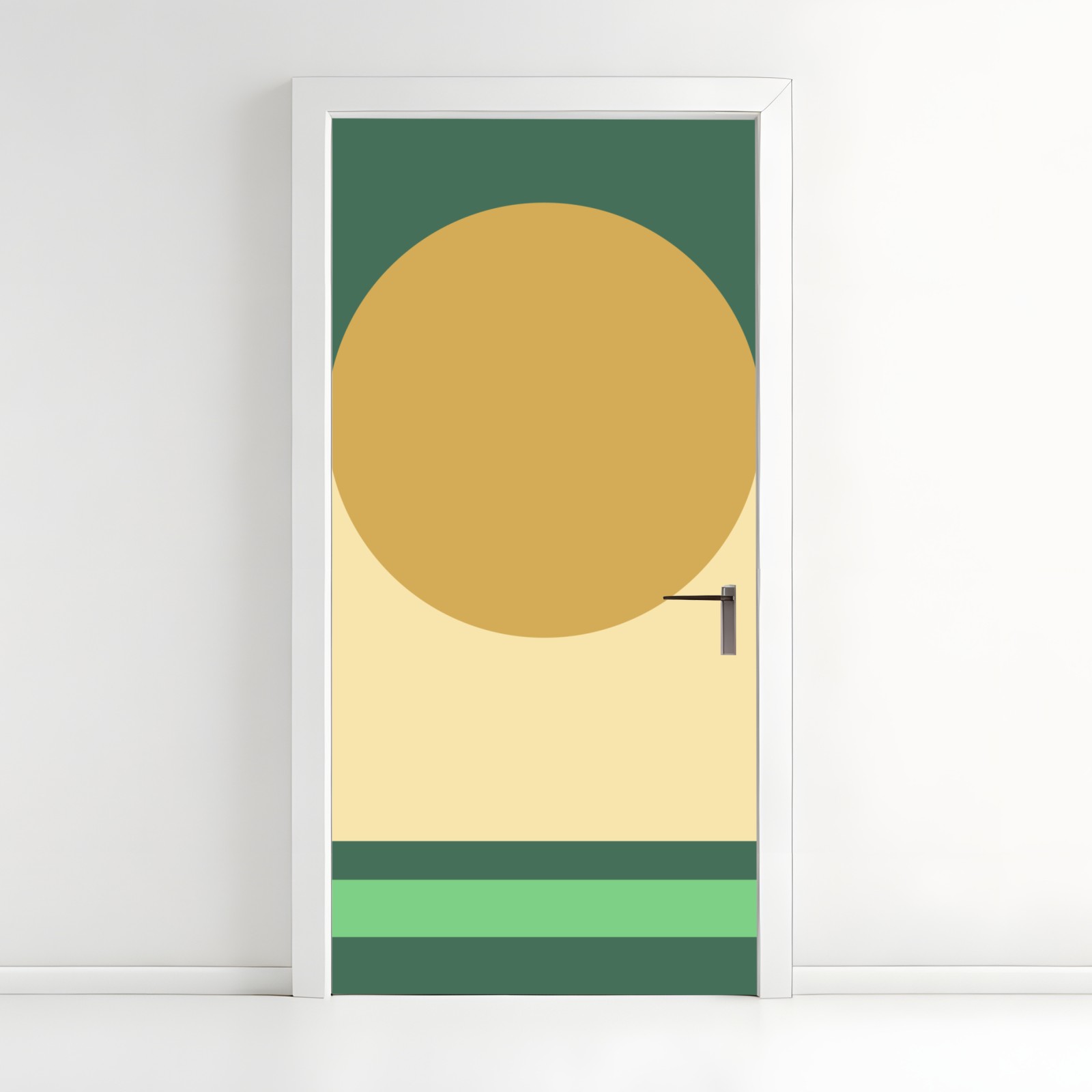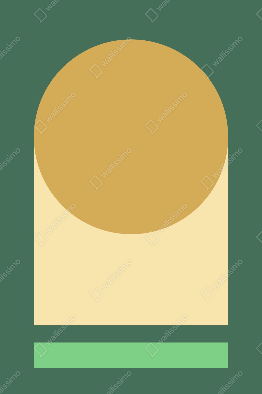 Bringen Sie Ruhe und modernen Stil in Ihren Raum mit dieser minimalistischen geometrischen Komposition in warmen Gold- und Grüntönen.
