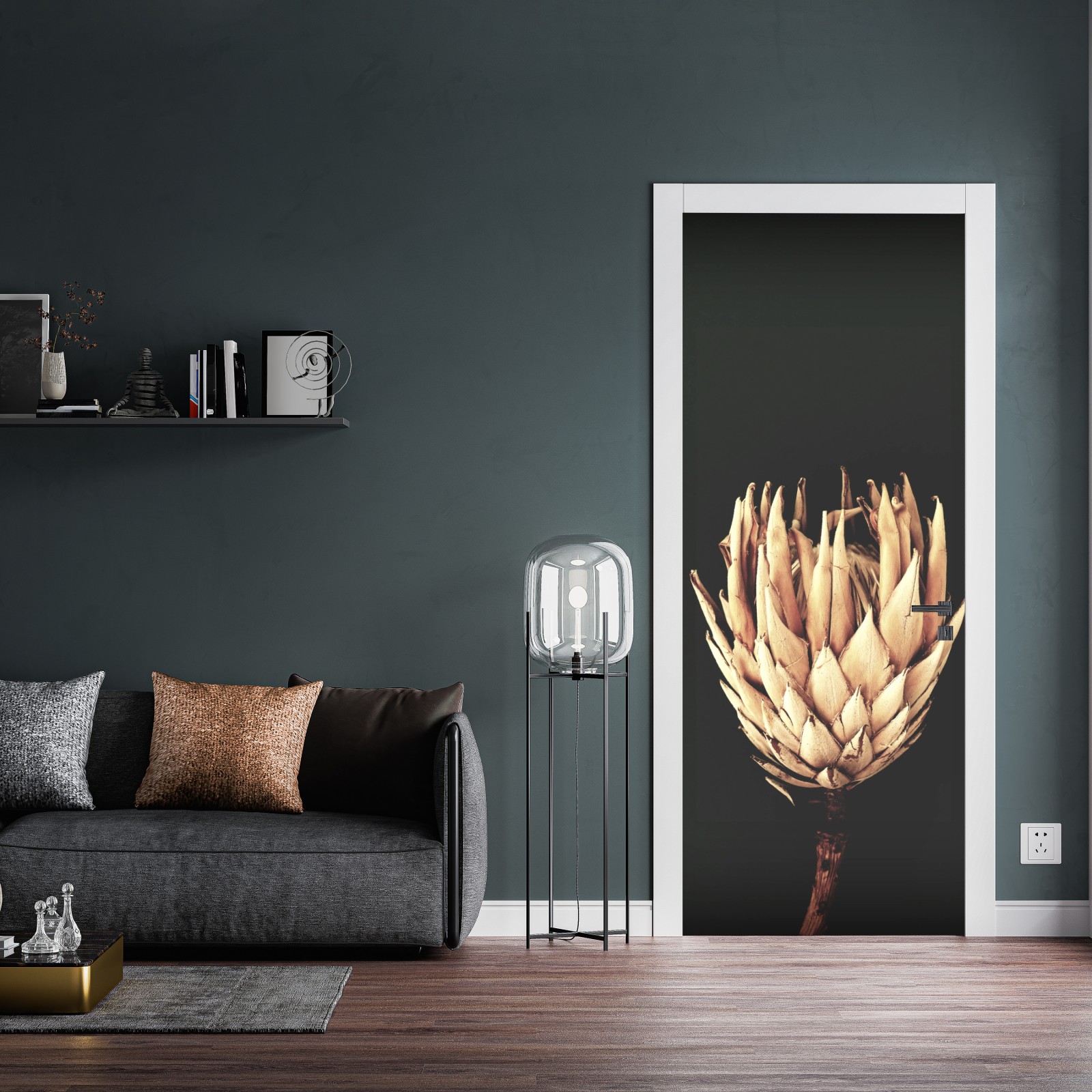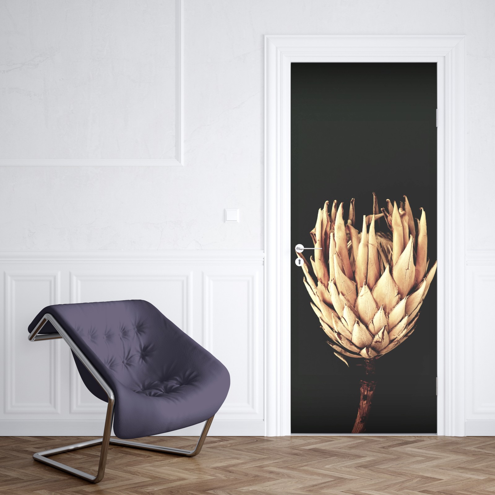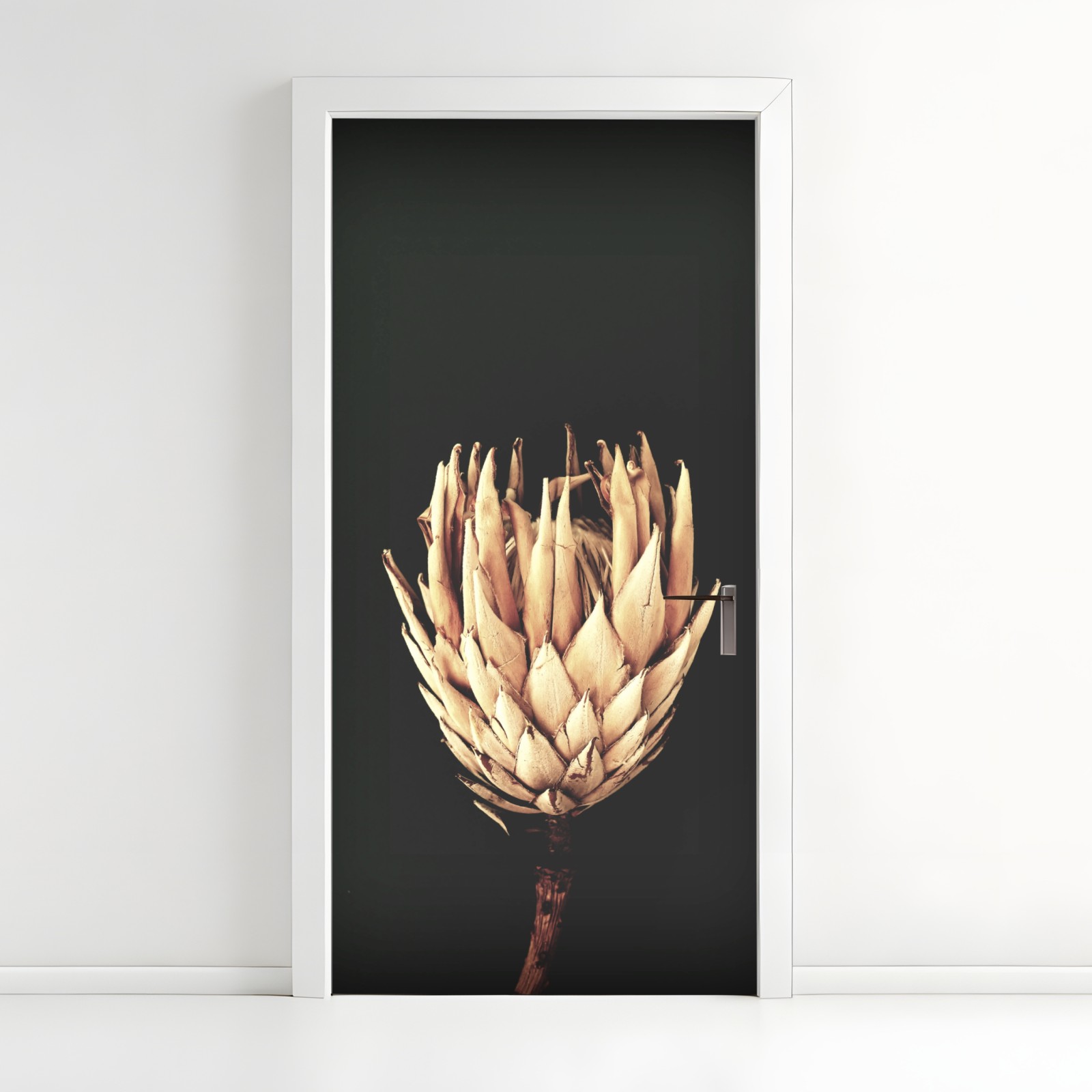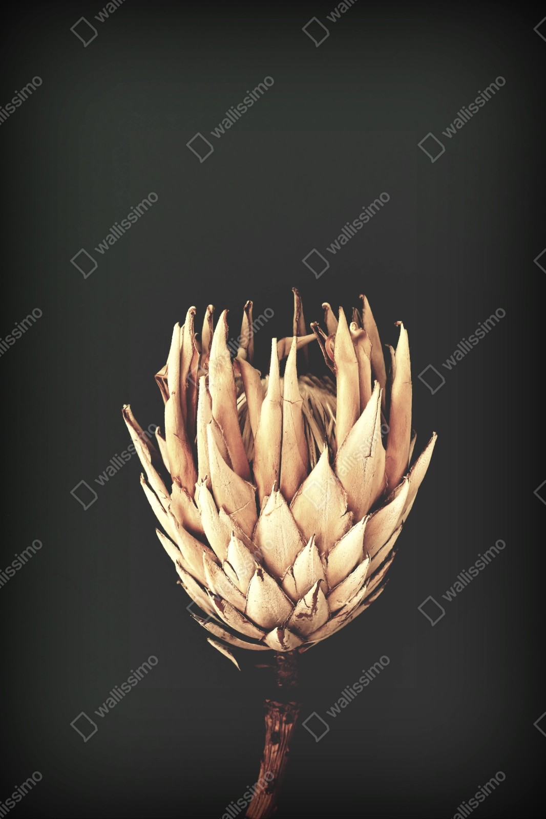 Zeitloses, sepiafarbenes botanisches Motiv einer getrockneten Protea, das natürliche Eleganz und Struktur in jeden Raum bringt.