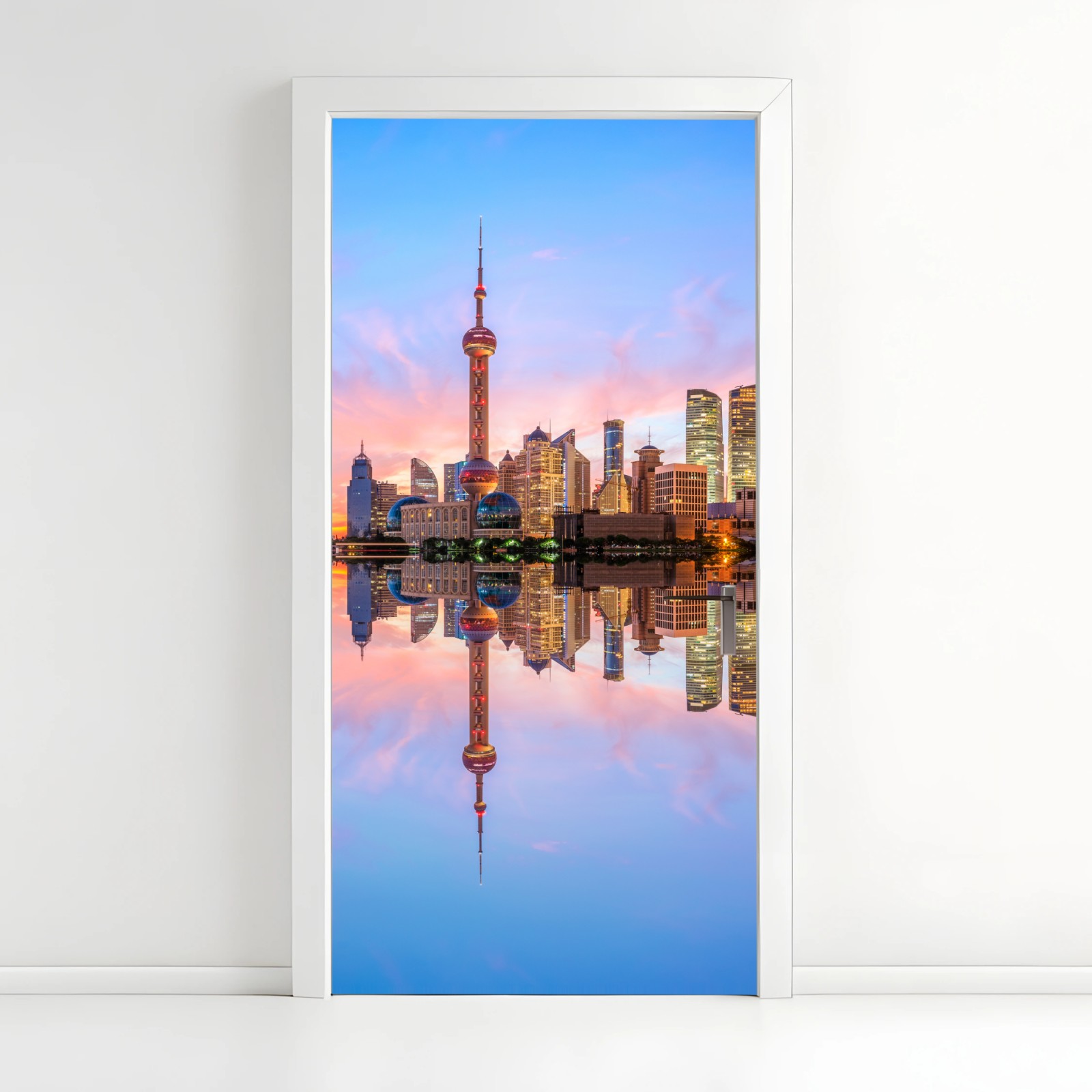 Türaufkleber Shanghai skyline bei sonnenaufgang