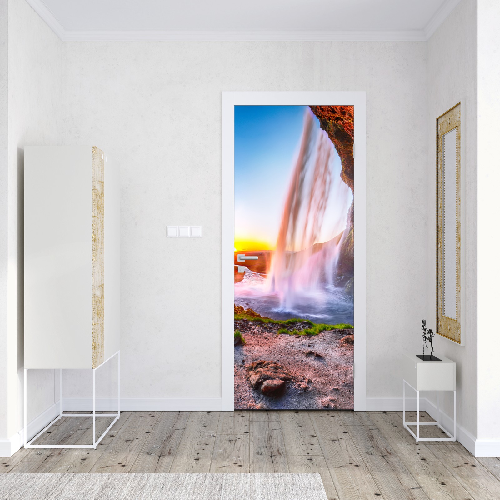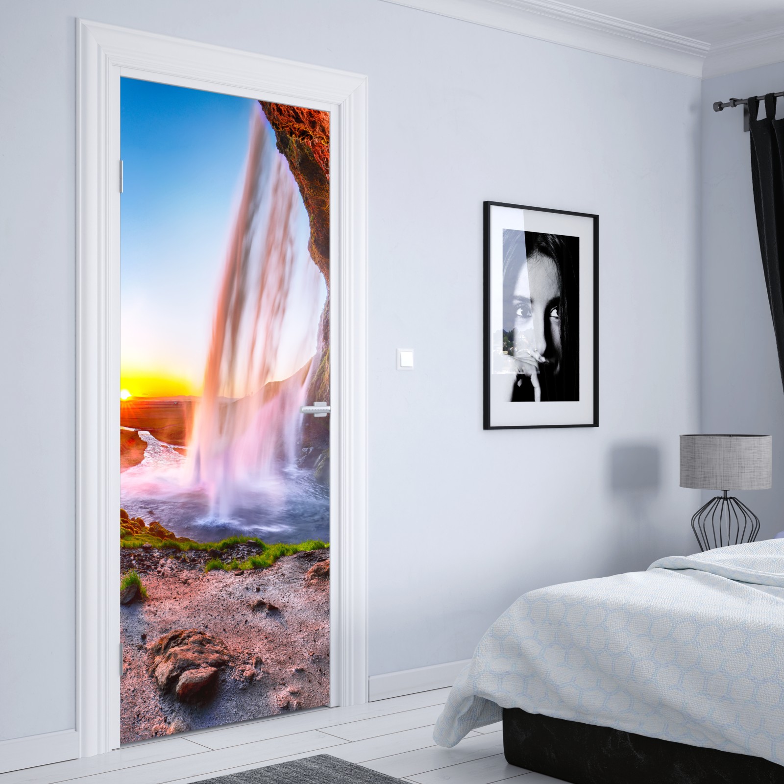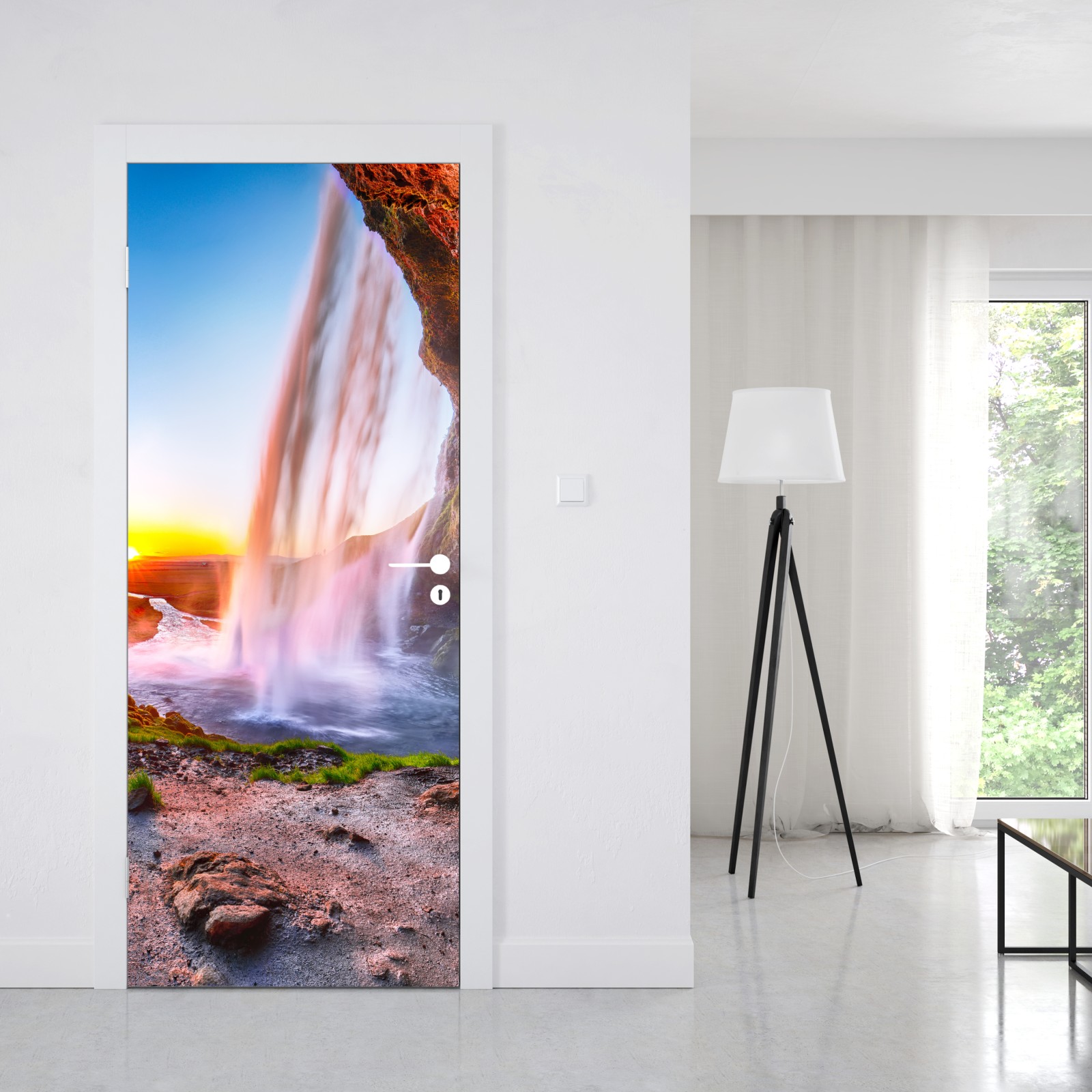 Türaufkleber Seljalandsfoss wasserfall bei sonnenuntergang