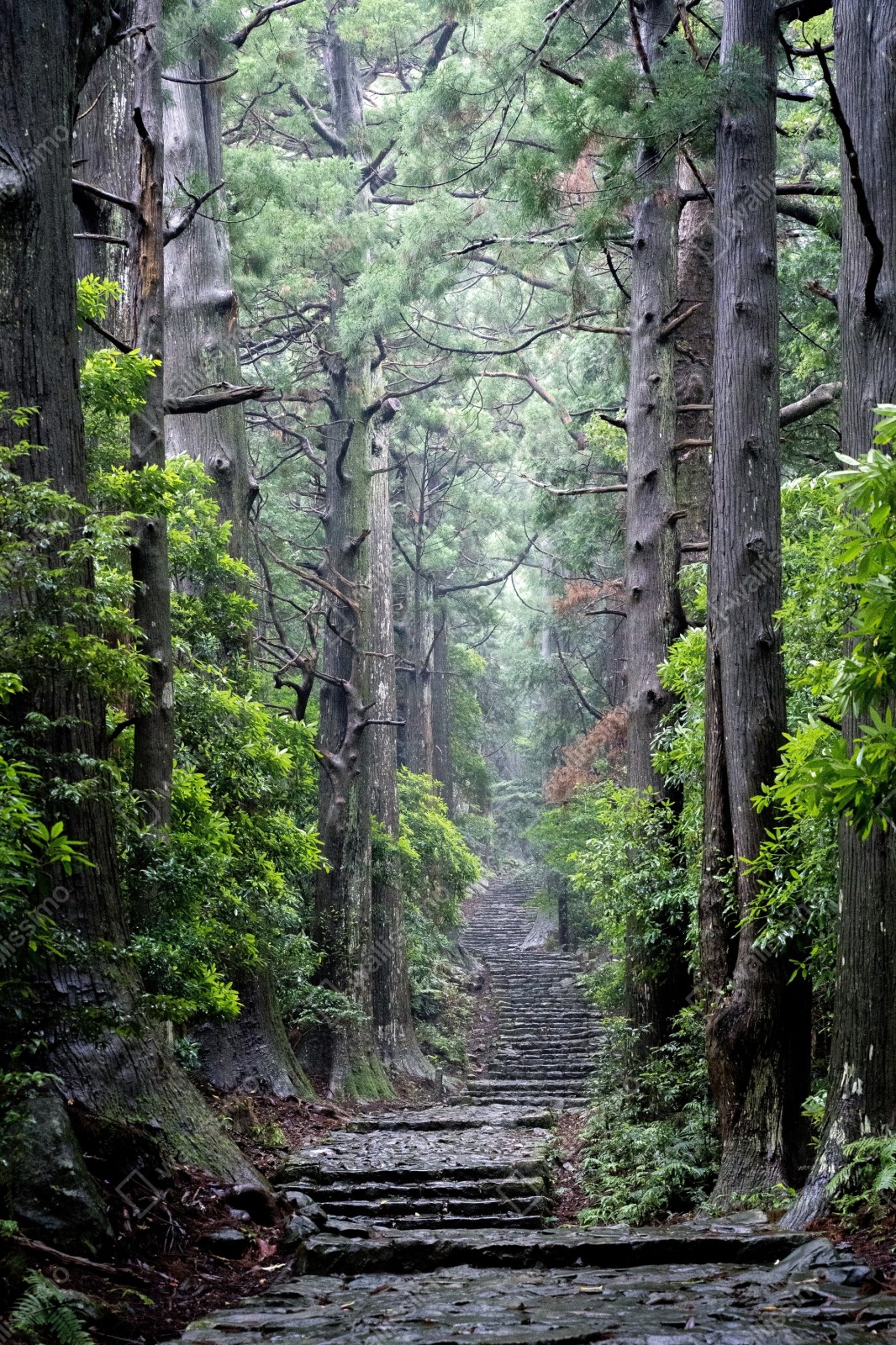 Bringen Sie Ruhe und natürliche Schönheit in Ihren Raum mit diesem nebligen Waldweg, der sich zwischen uralten Bäumen schlängelt, und schaffen Sie eine friedliche Atmosphäre.
