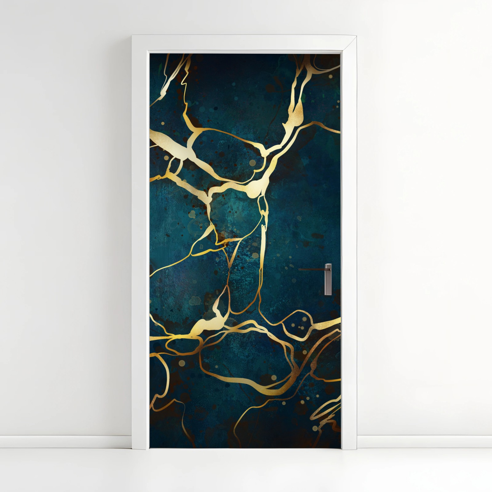 Türaufkleber Türkis und gold abstrakt mit goldenen adern