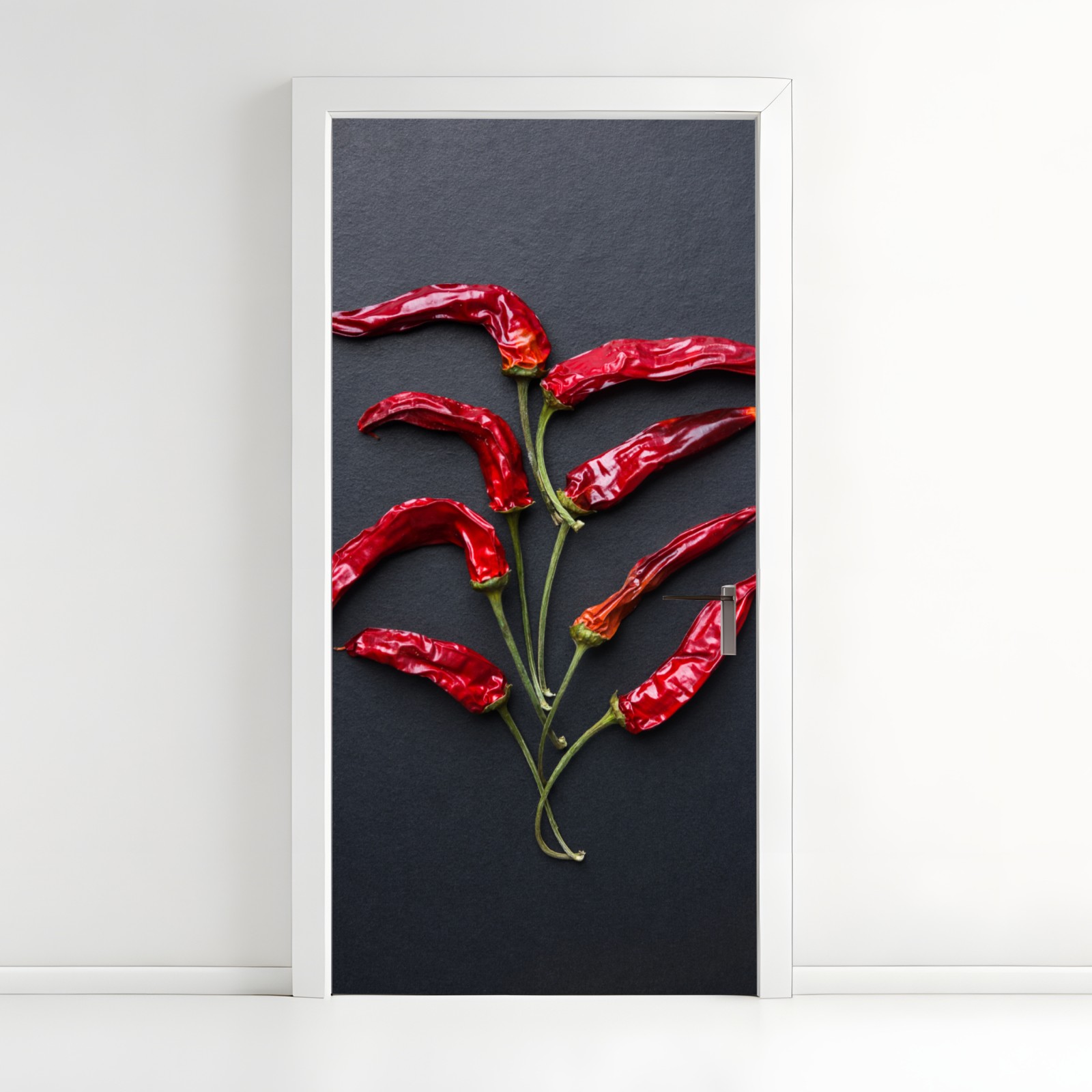 Türaufkleber kulinarische grafik mit roten chilischoten