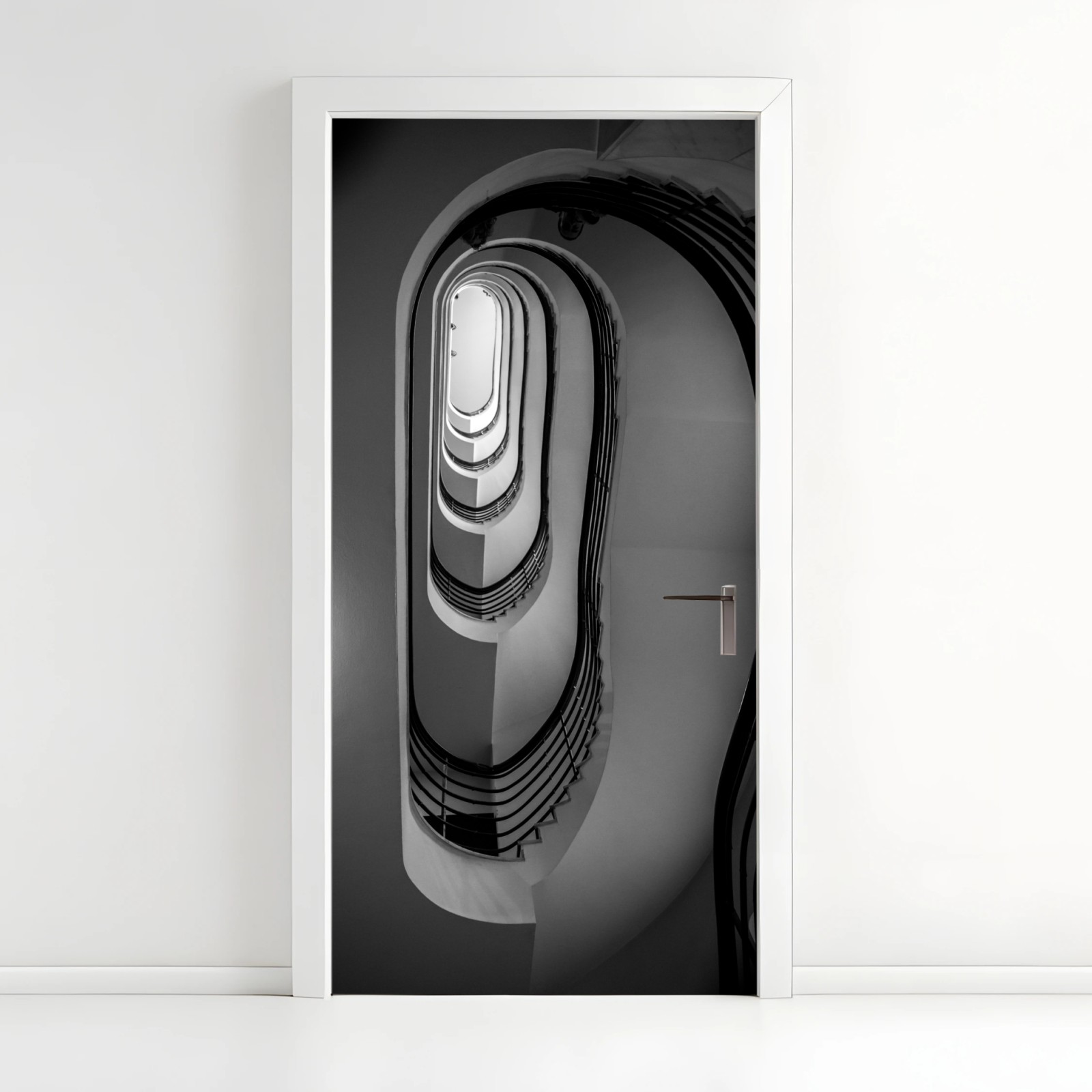 Türaufkleber Spiraltreppe perspektive in schwarzweiß