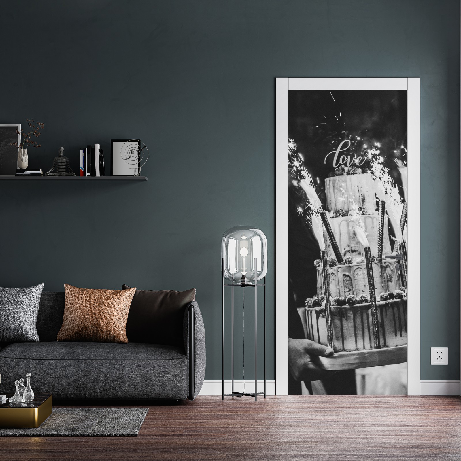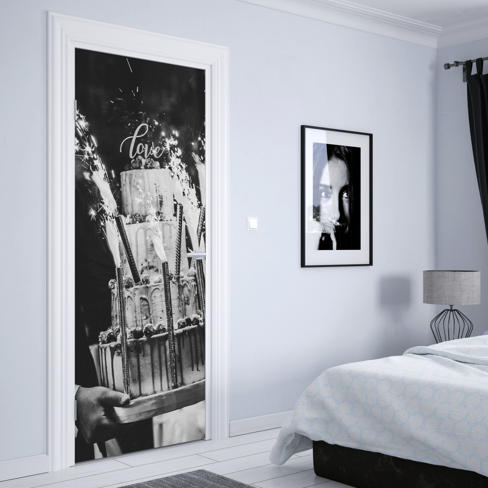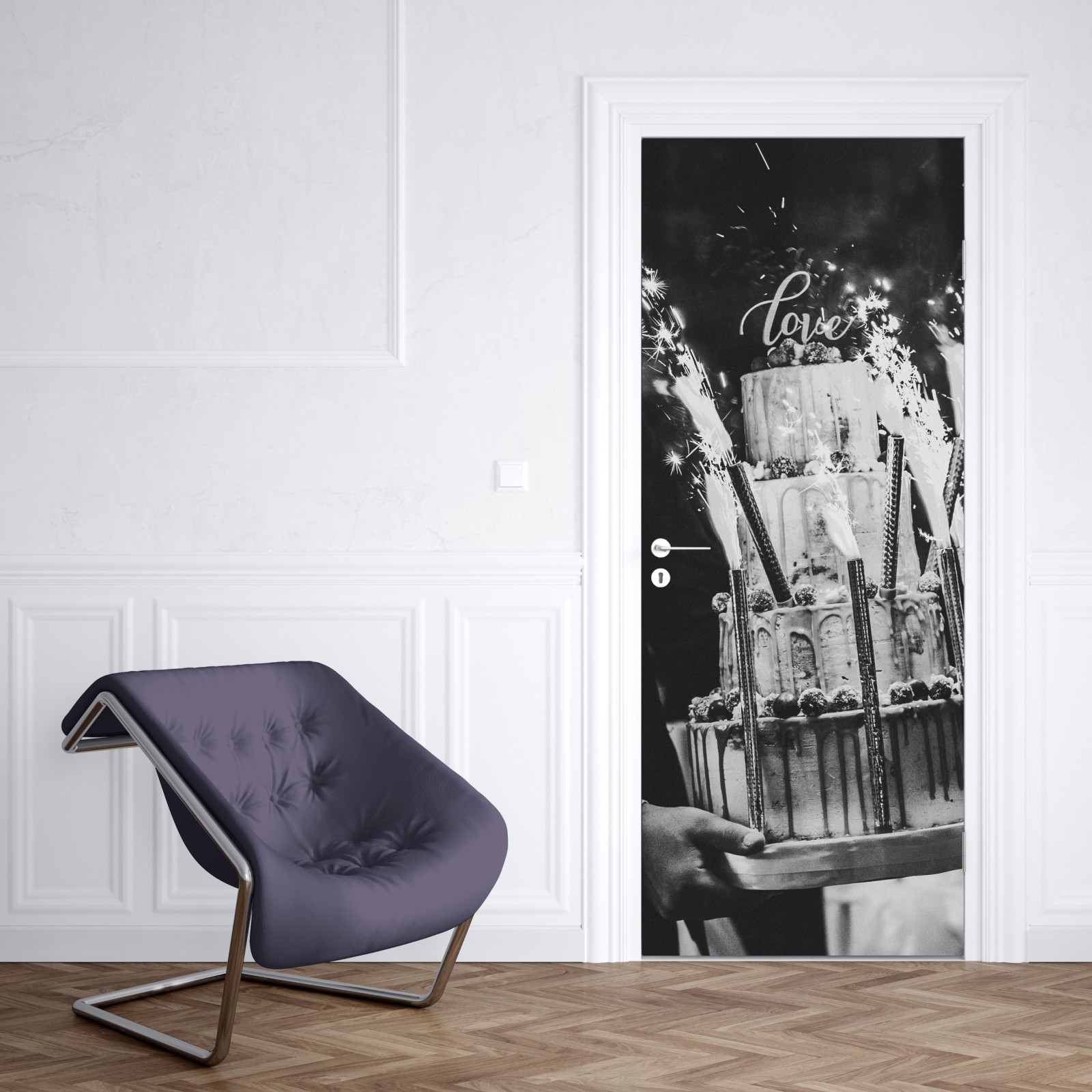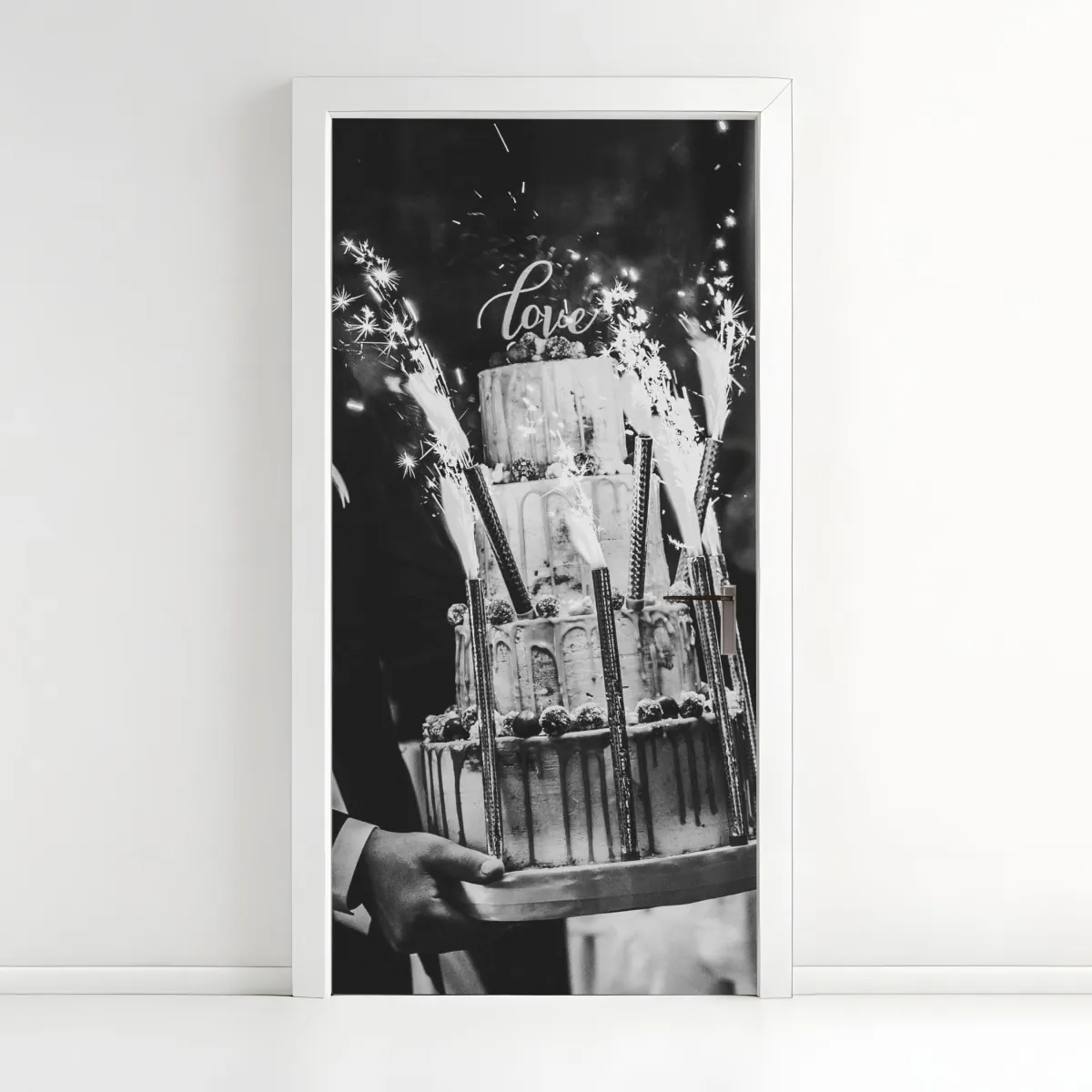 Türaufkleber rustikale hochzeitstorte mit wunderkerzen