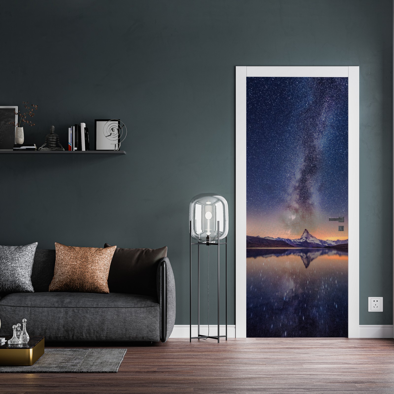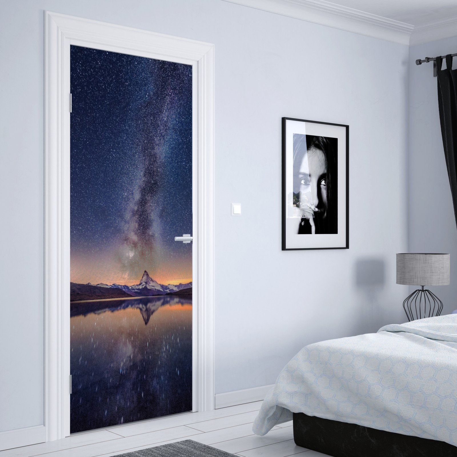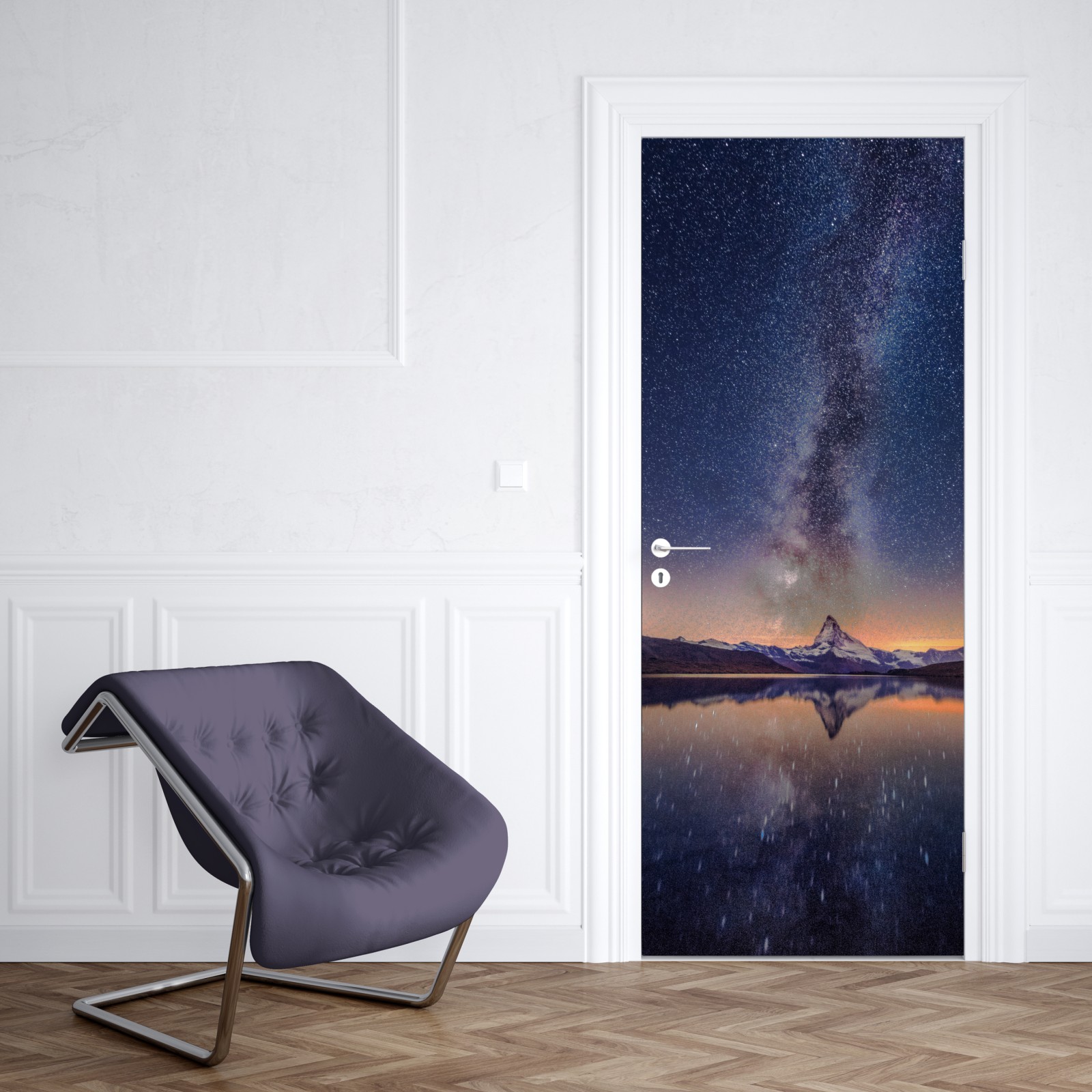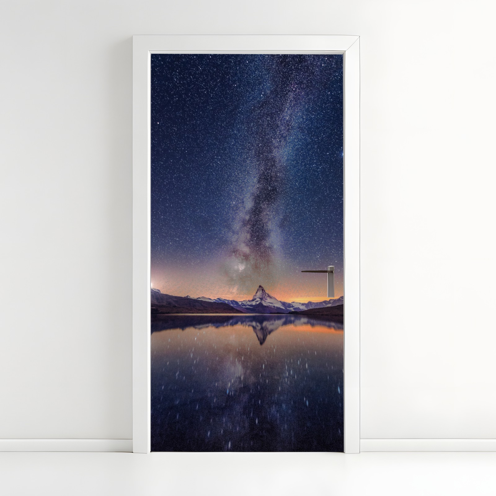 Türaufkleber milchstraße über alpengipfel gespiegelt im see