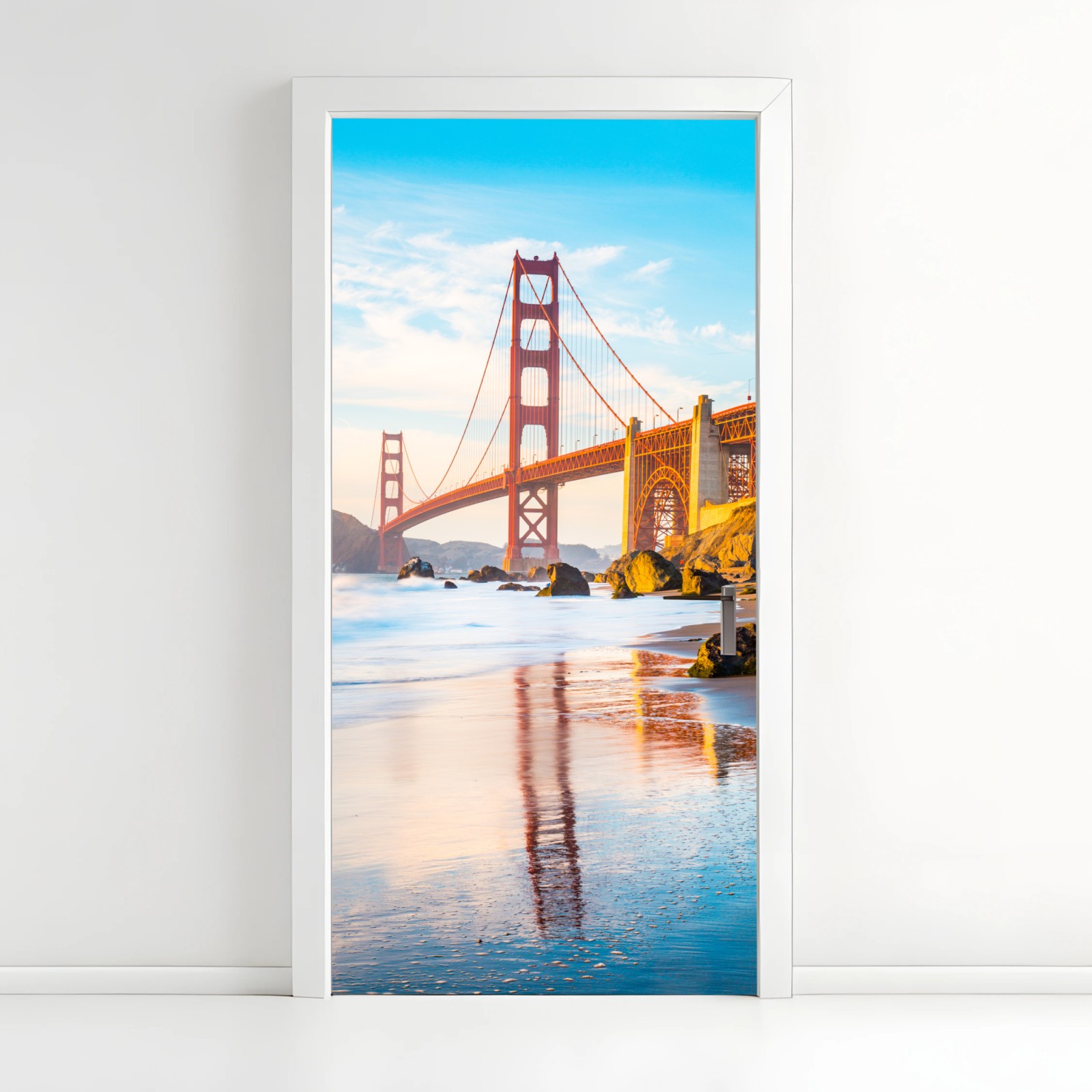 Türaufkleber Goldene stunde an der Golden Gate Bridge, Baker Beach