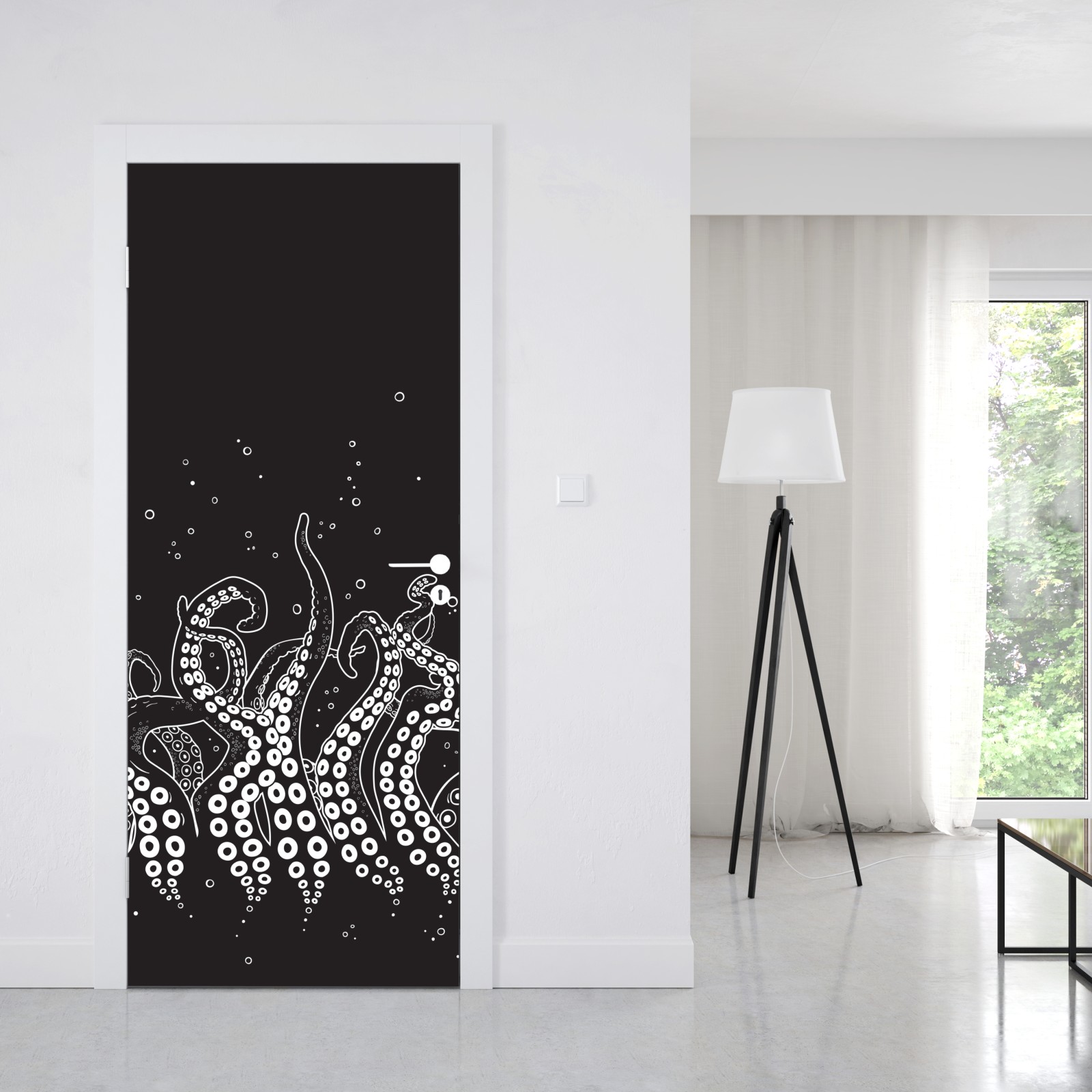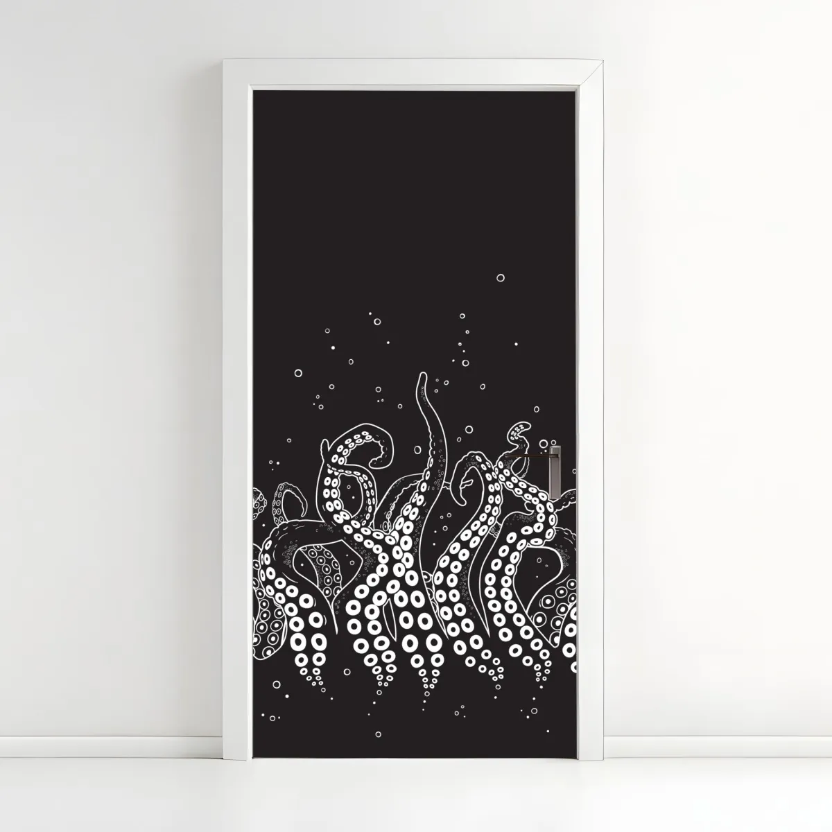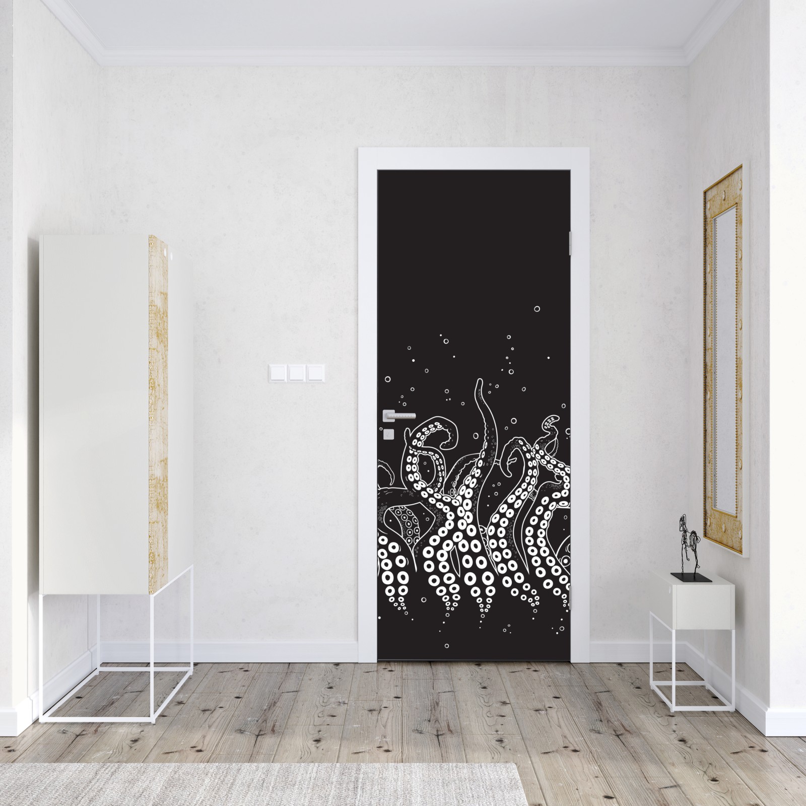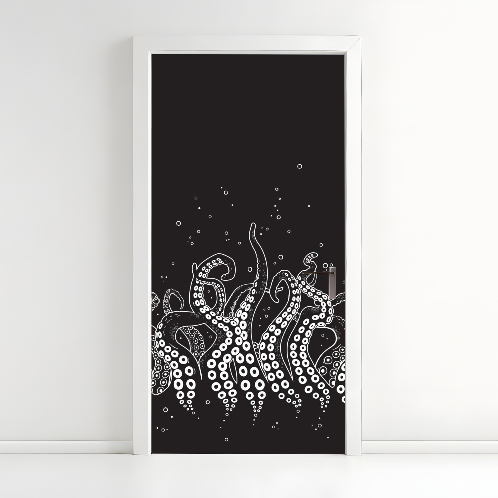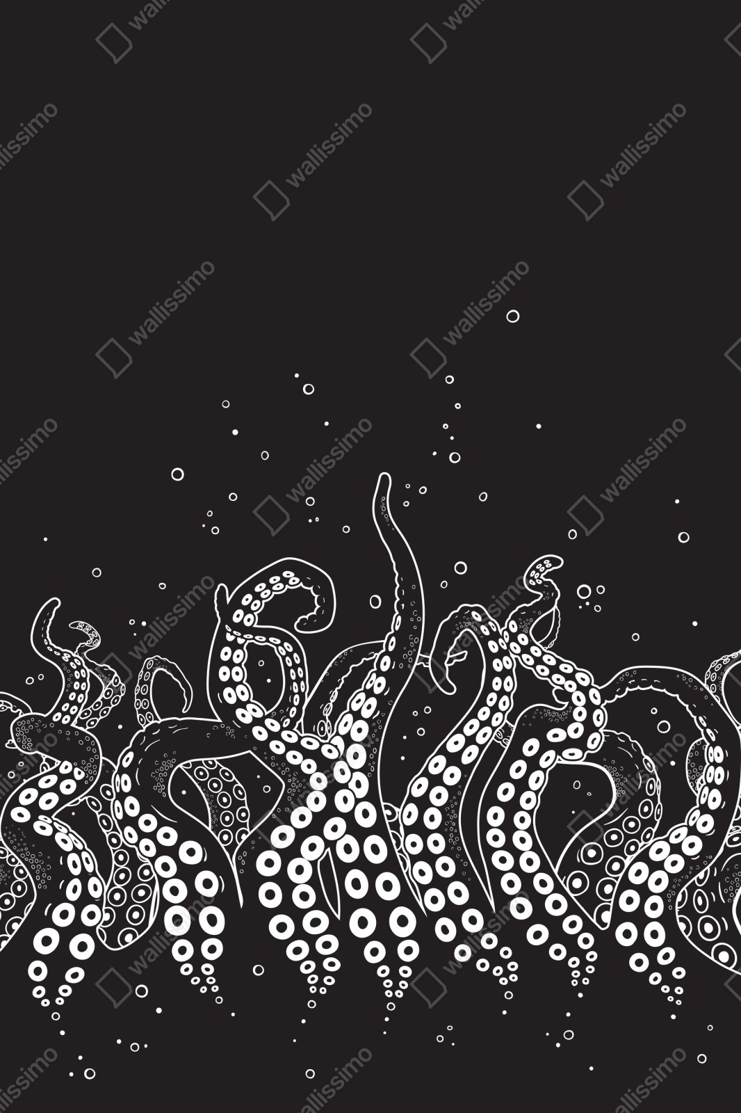 Markantes schwarzweißes Motiv mit Oktopus-Tentakeln schafft ein minimalistisches, maritimes Design für moderne Räume.