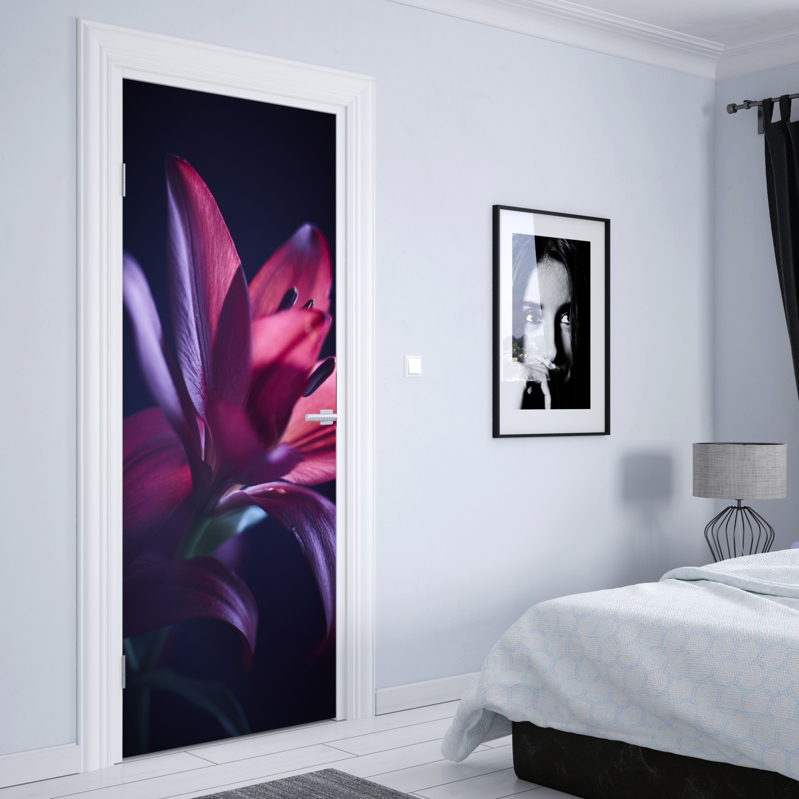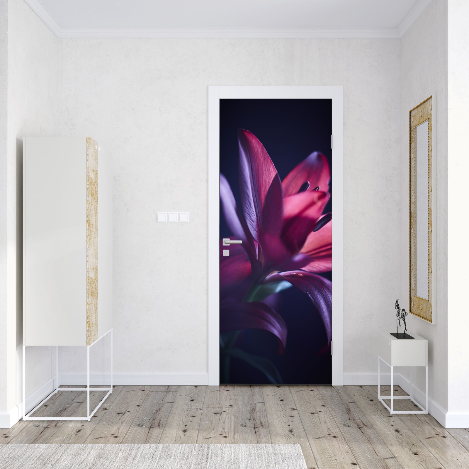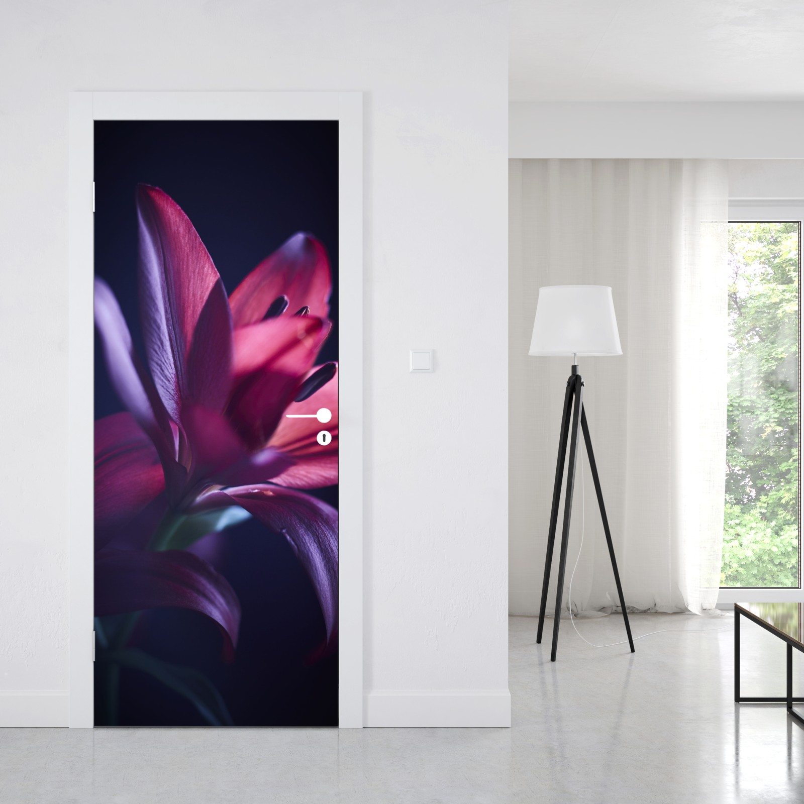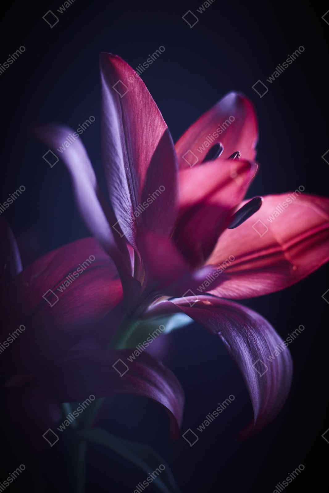 Bringen Sie botanische Eleganz in Ihr Zuhause mit diesem stimmungsvollen Close-up einer roten Lilie.