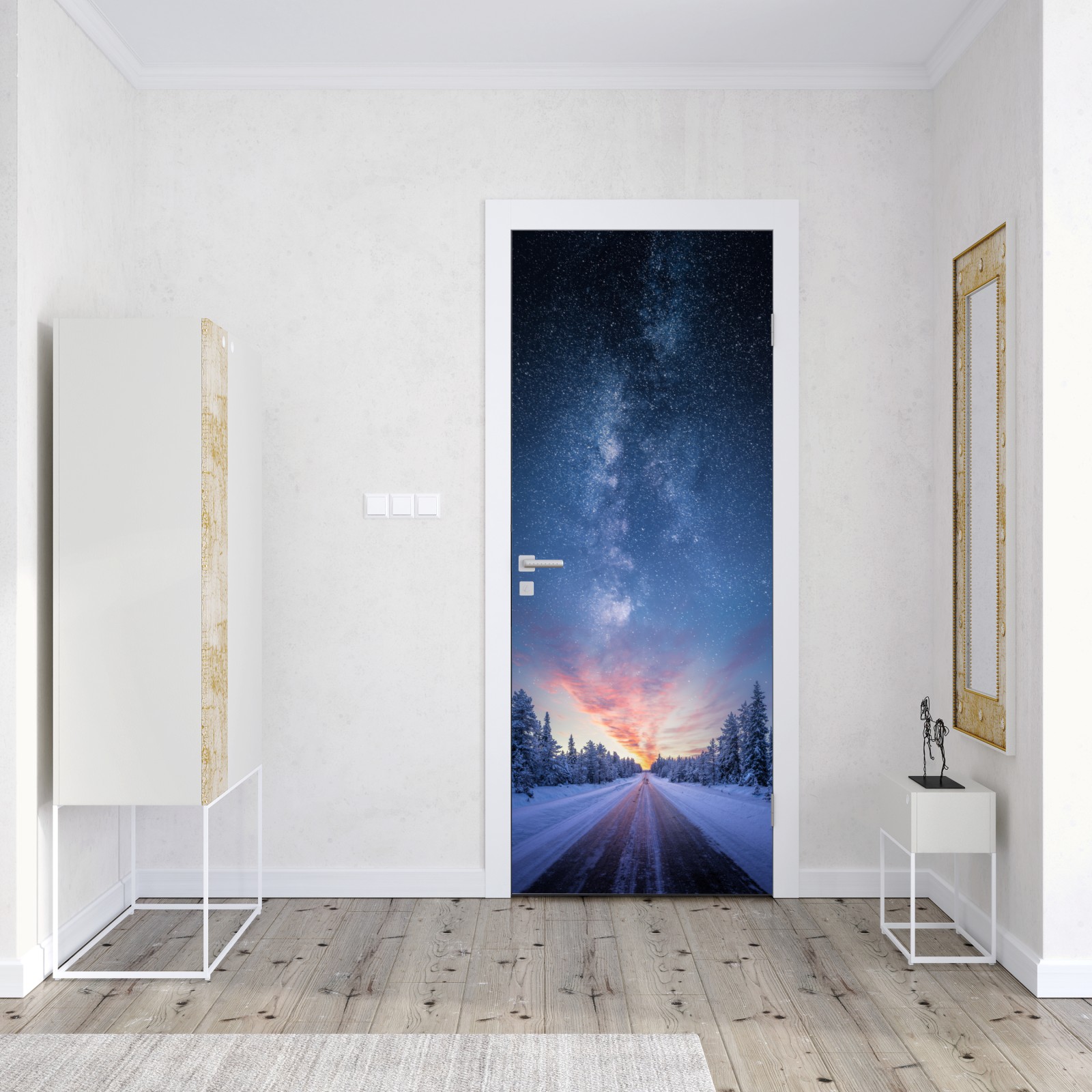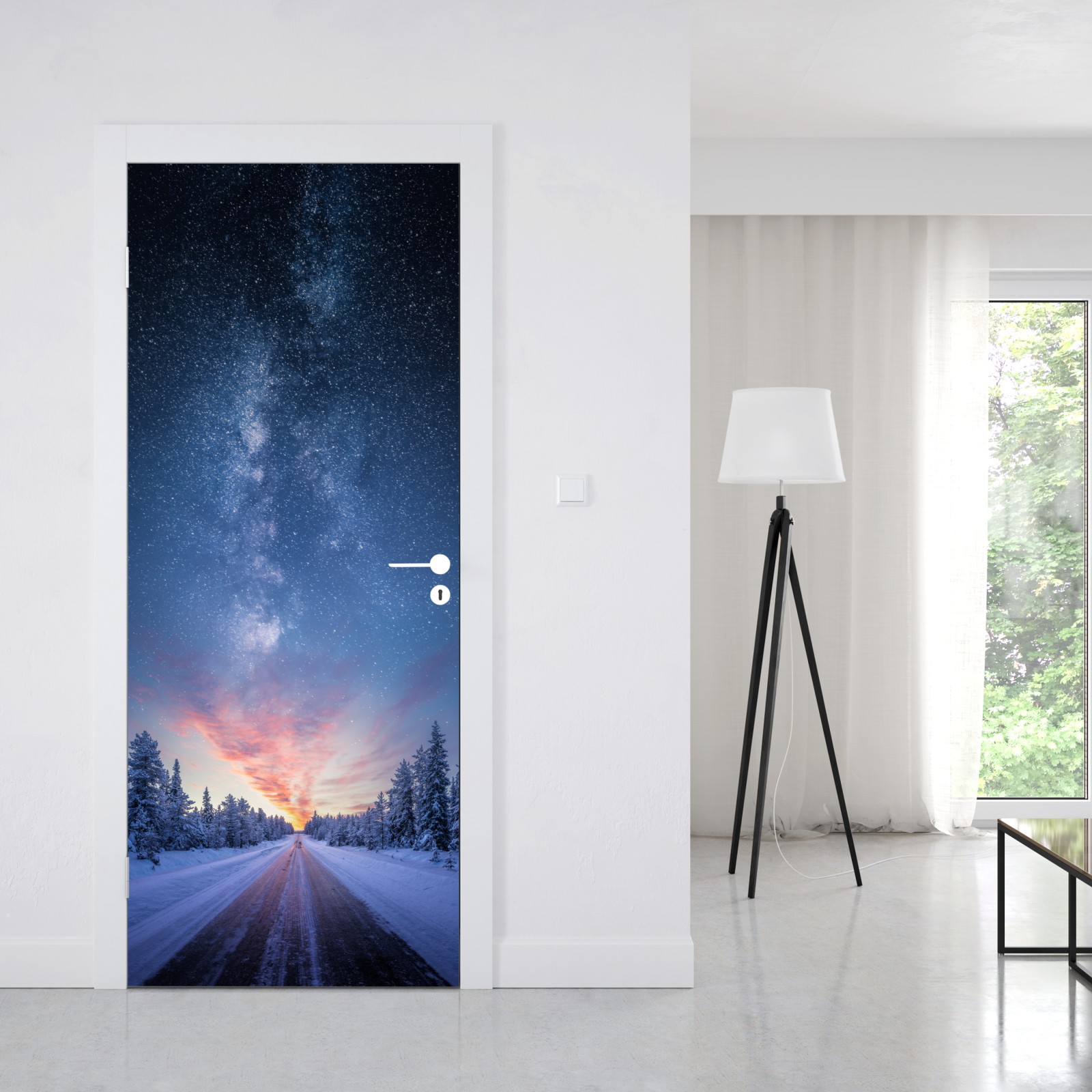 Türaufkleber straße zur milchstraße bei sonnenaufgang