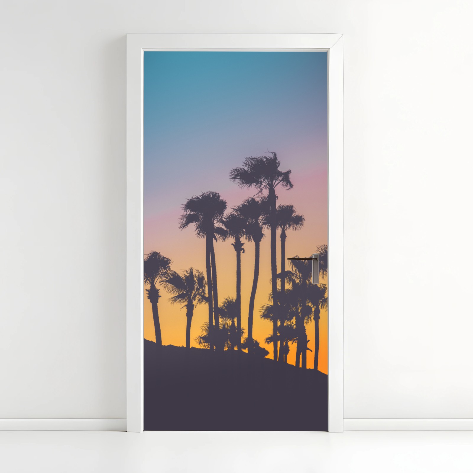 Türaufkleber Retro tropische palmen bei sonnenuntergang