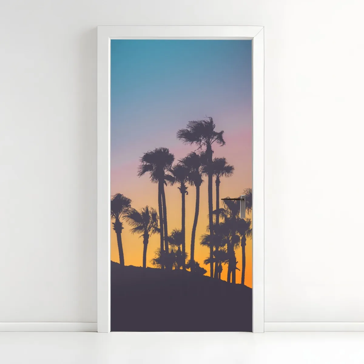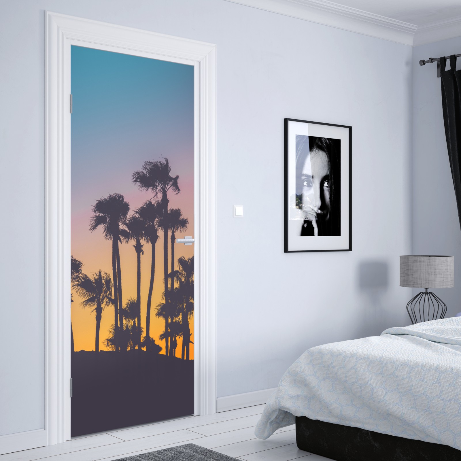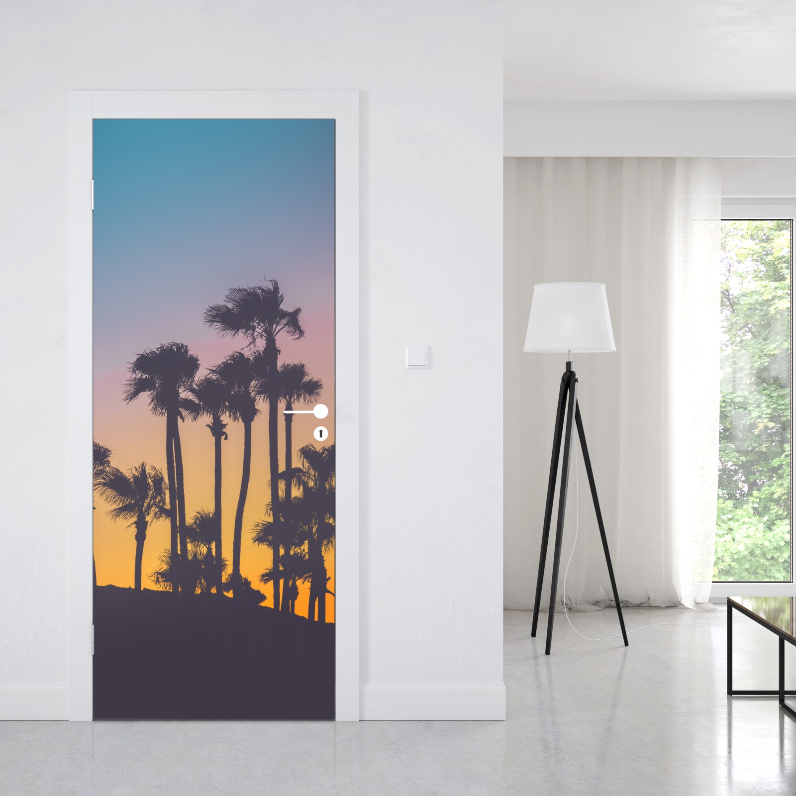 Türaufkleber retro tropische palmen bei sonnenuntergang
