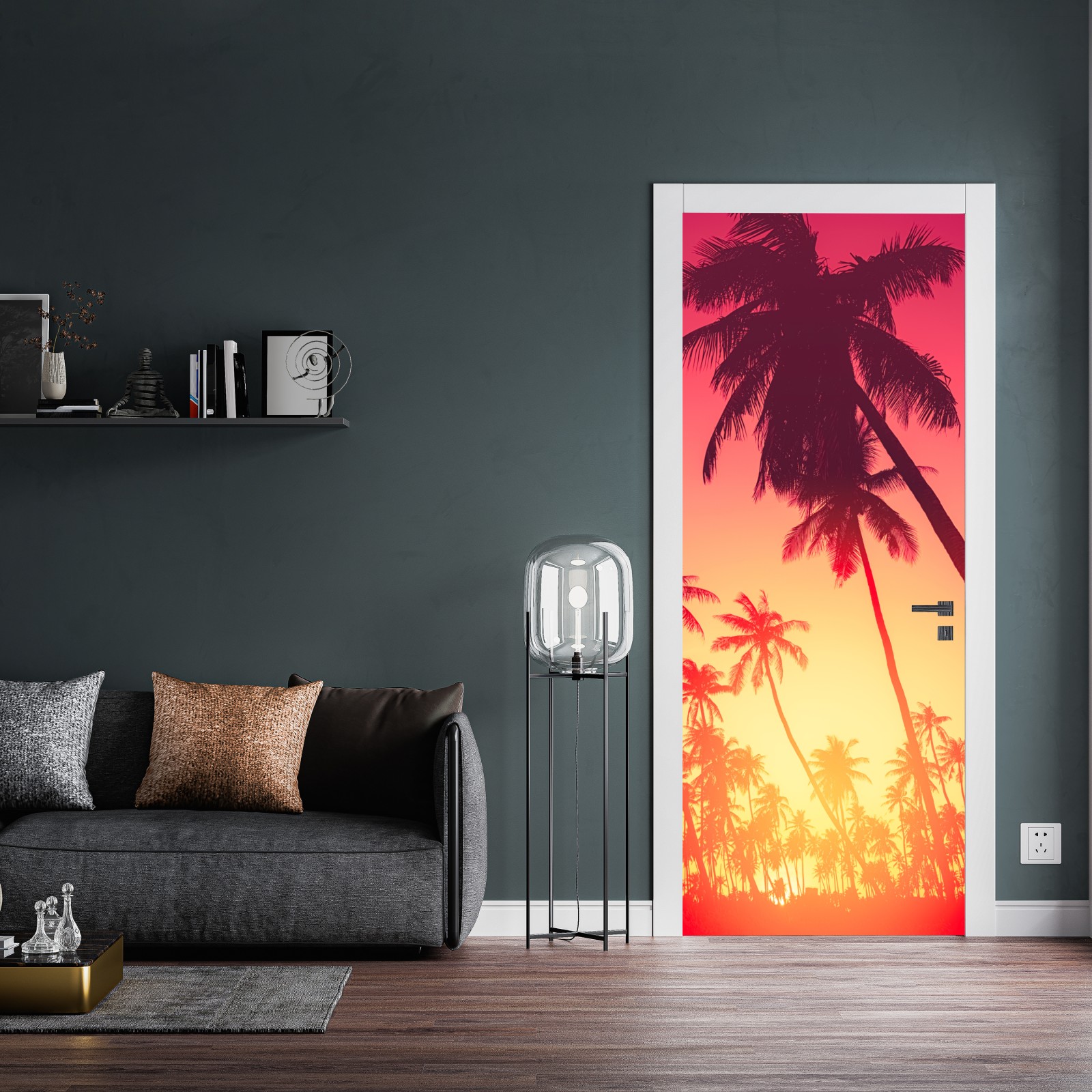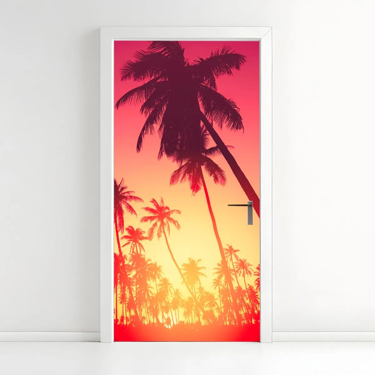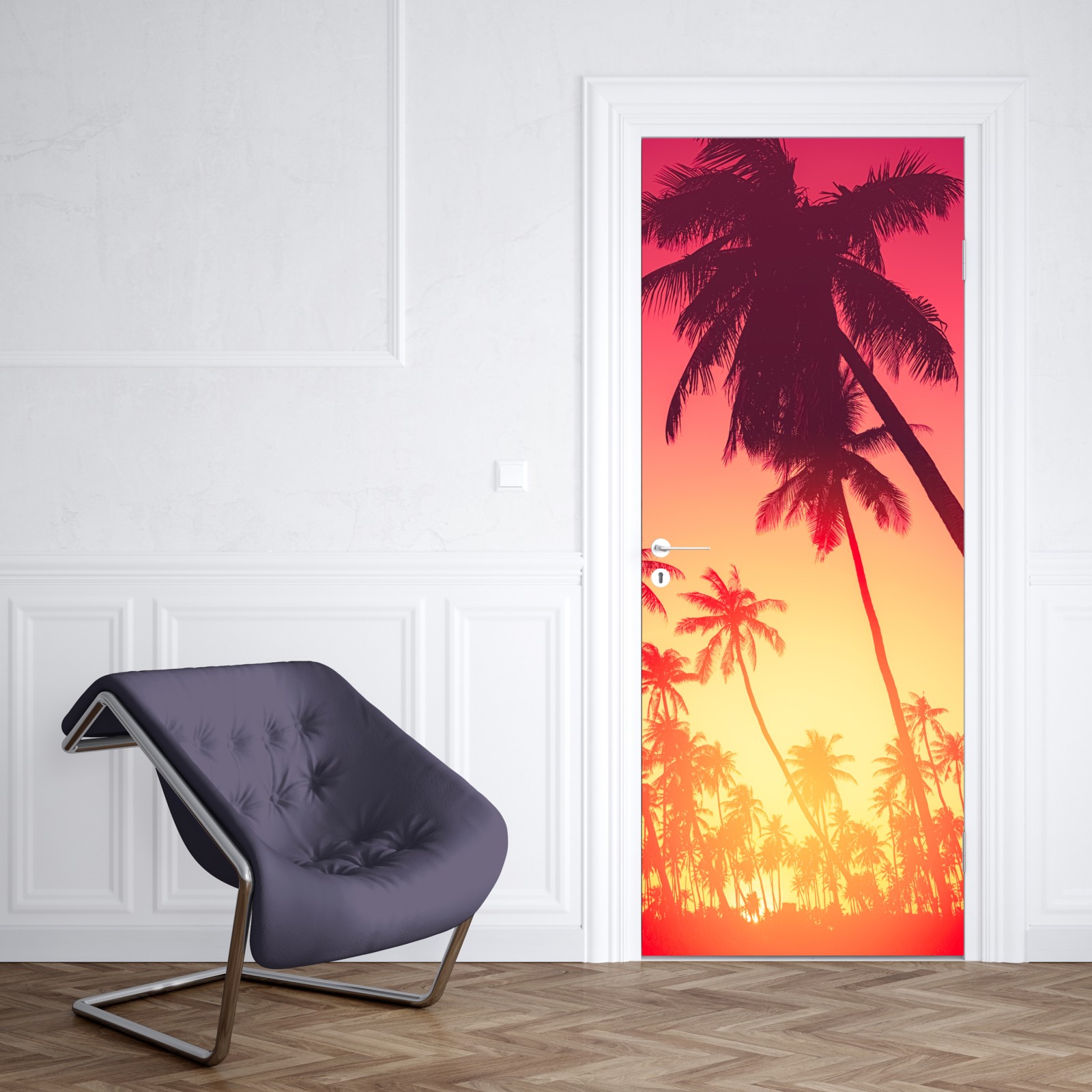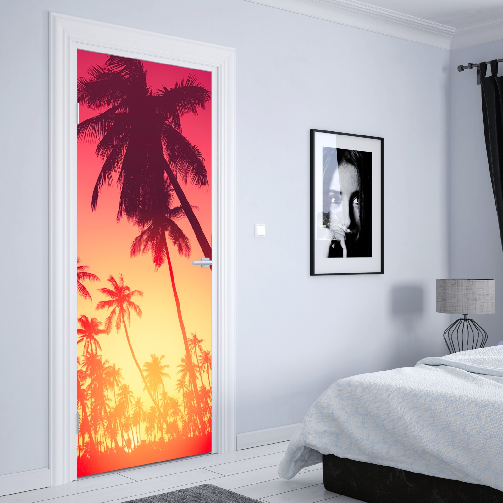 Türaufkleber tropischer sonnenuntergang mit palmen