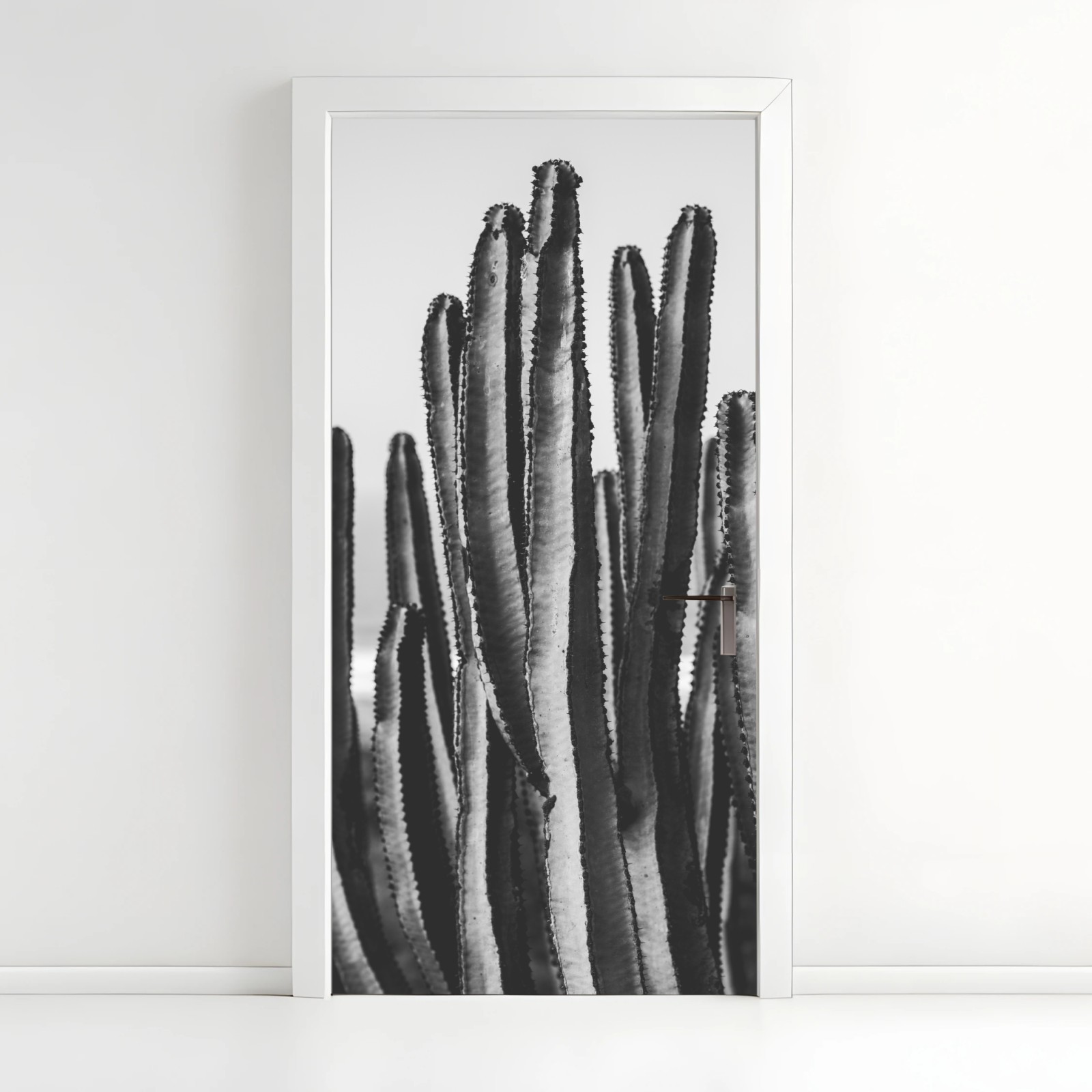 Türaufkleber Schwarzweiß kaktus nahaufnahme