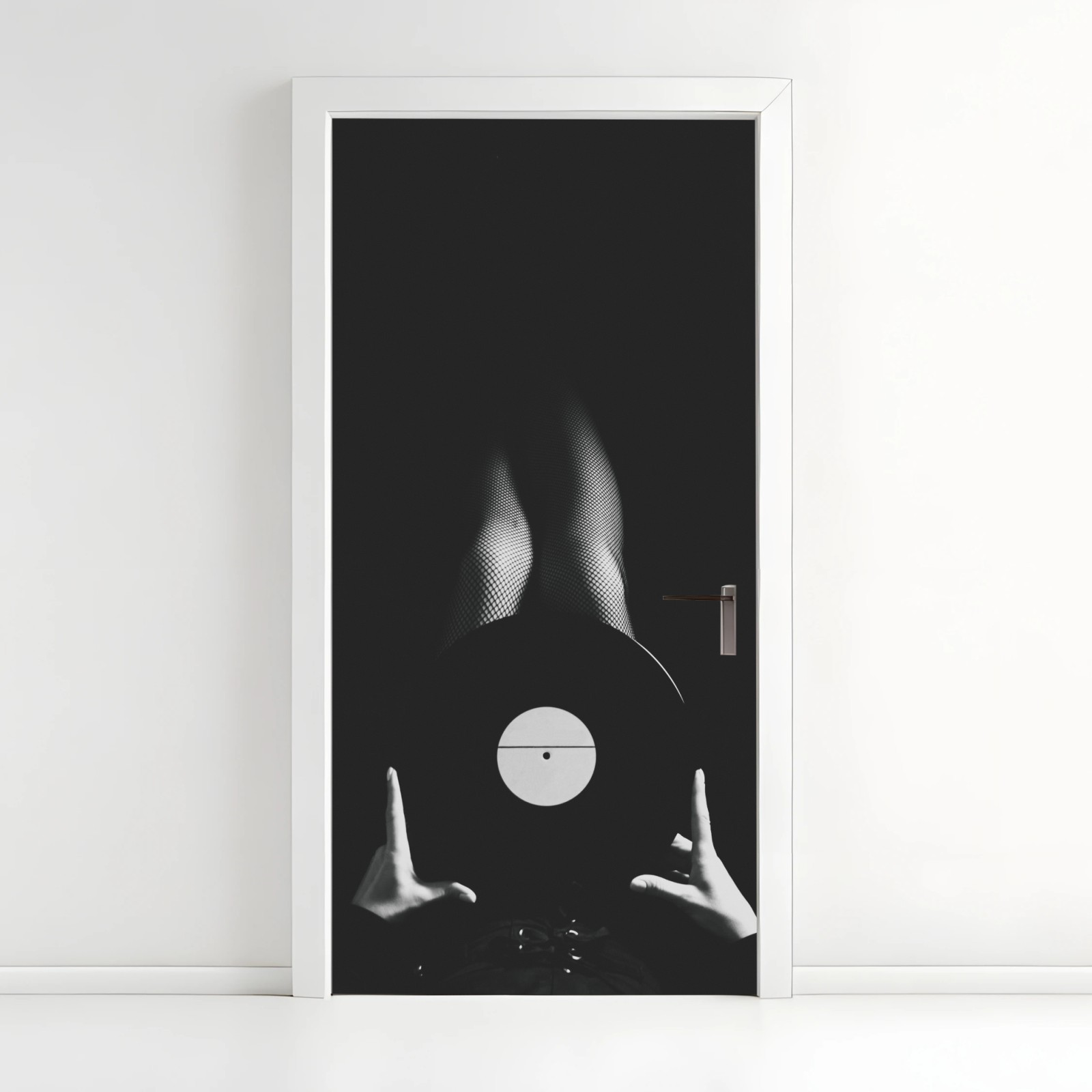 Türaufkleber Schallplatte und beine in netzstrümpfen