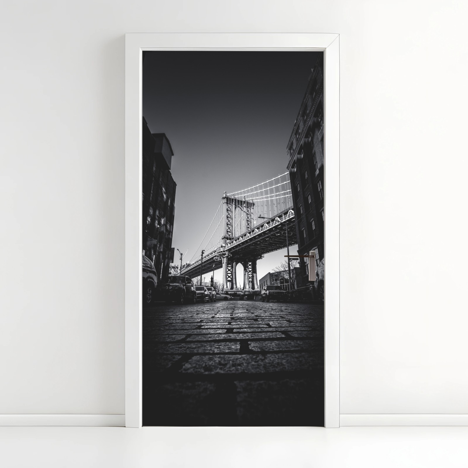 Türaufkleber Manhattan brücke perspektive über kopfsteinpflaster