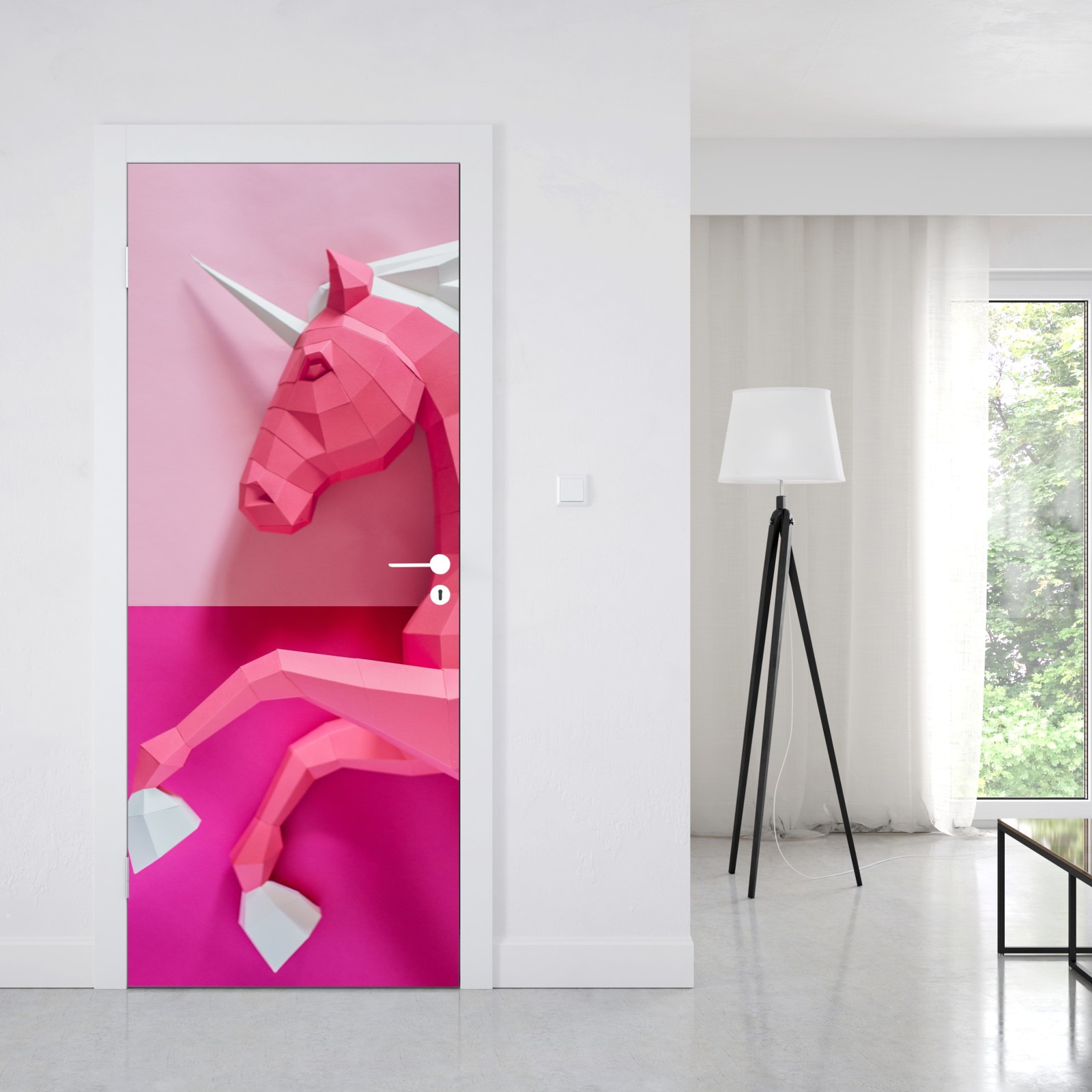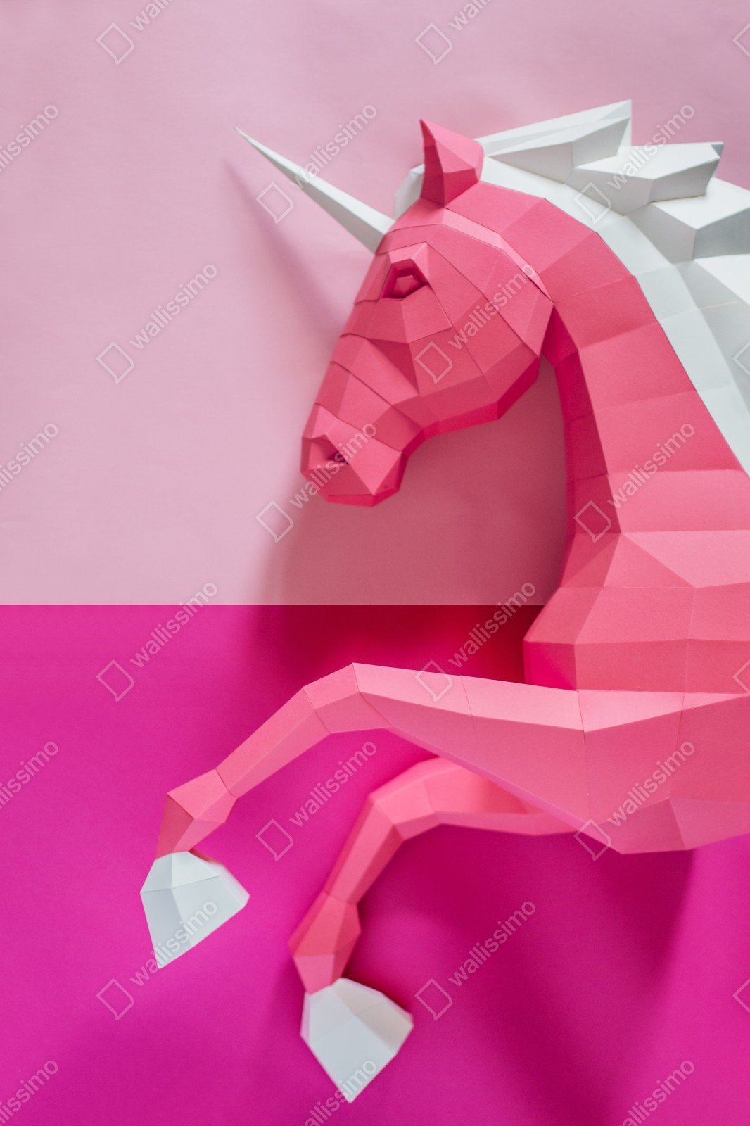 Bringen Sie magische Farbe ins Kinderzimmer mit diesem geometrischen Einhorn; ideal für moderne und kreative Räume.