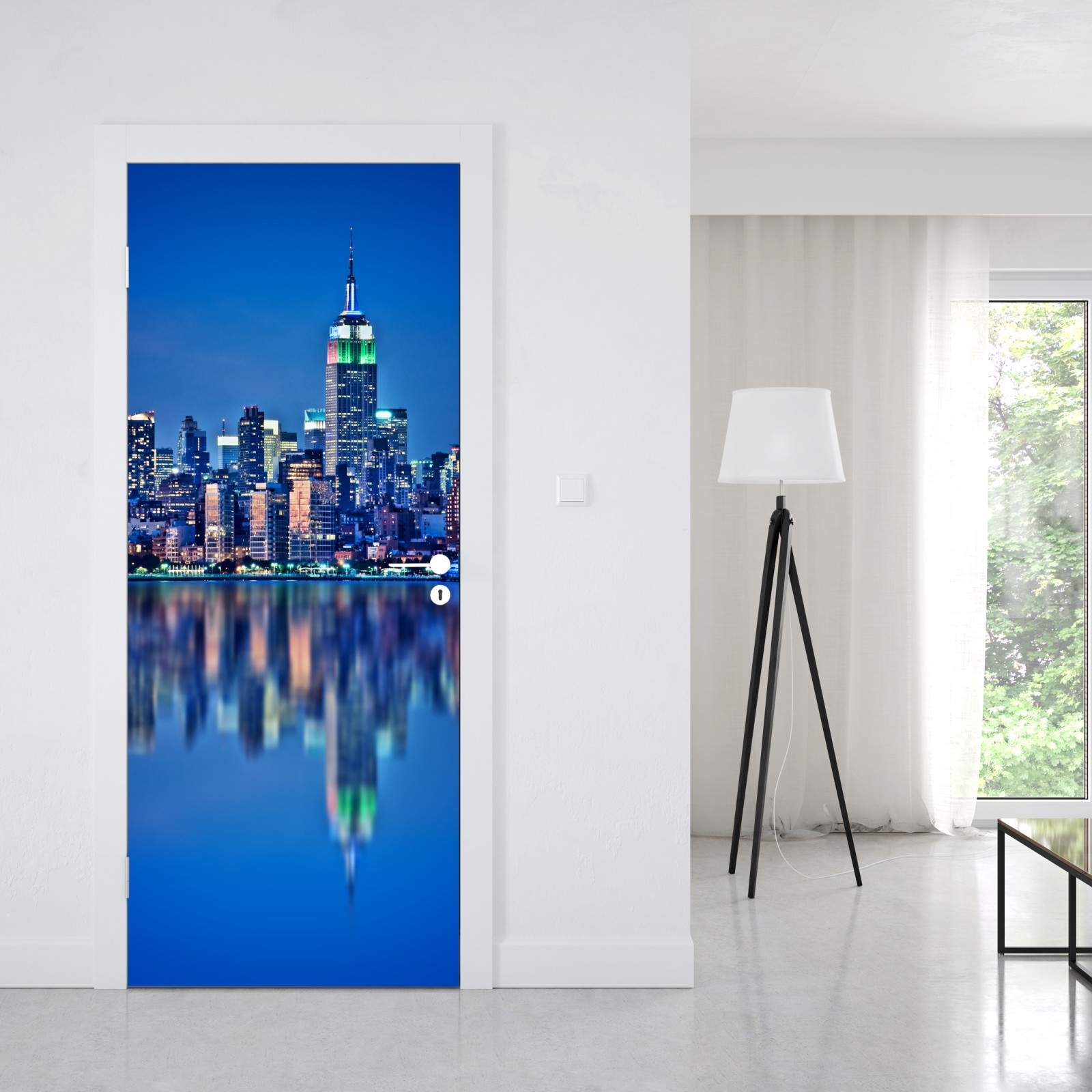 Türaufkleber New York skyline bei nacht mit spiegelung