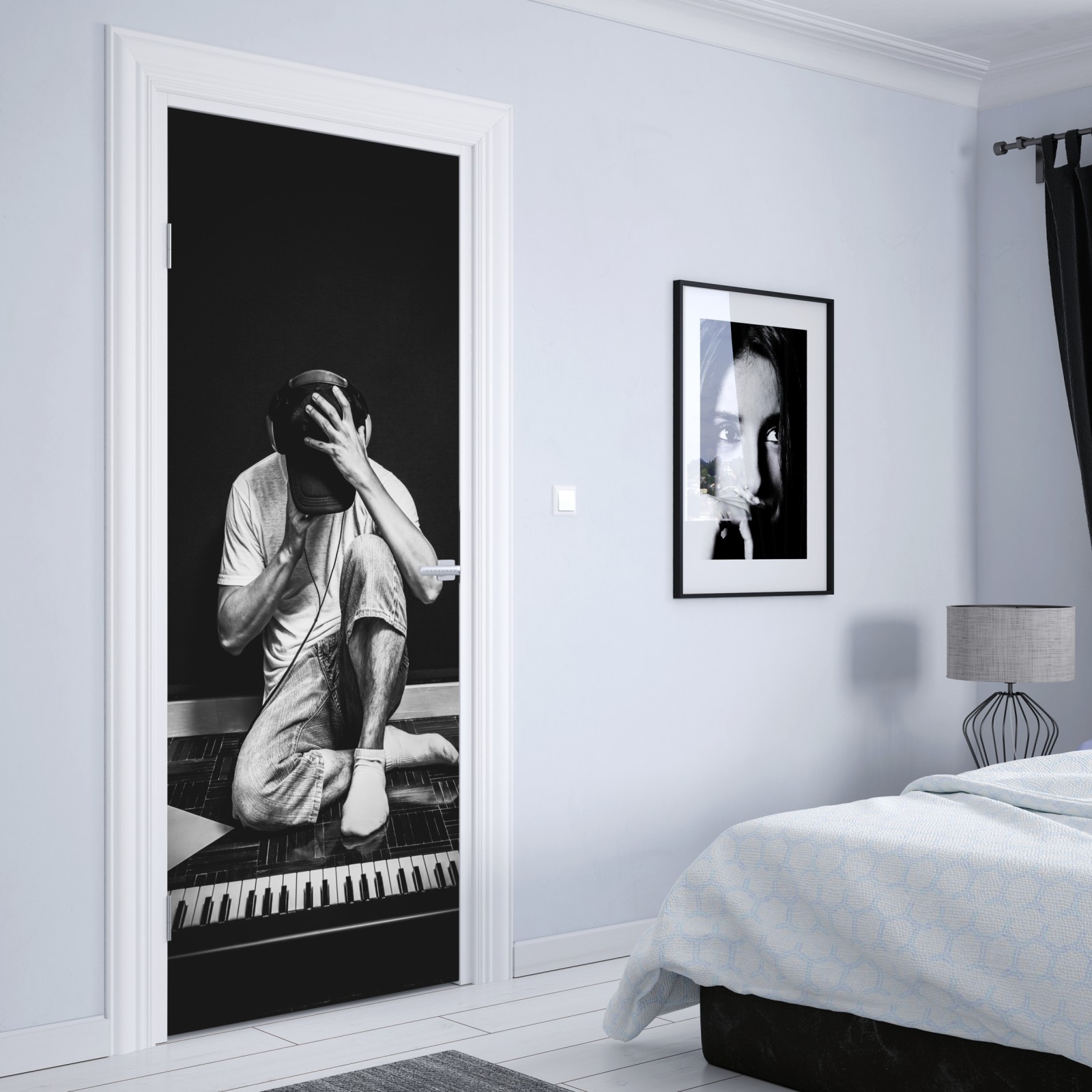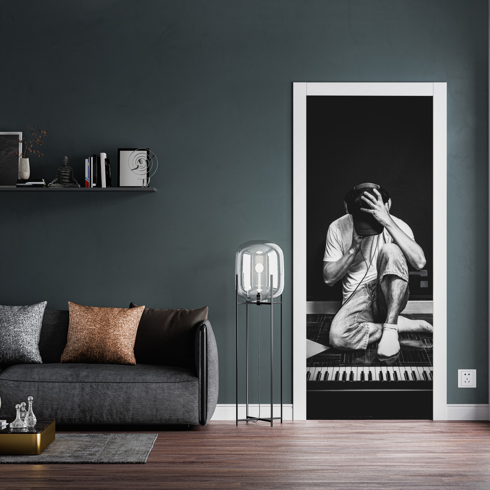 Türaufkleber introvertierter musiker am keyboard