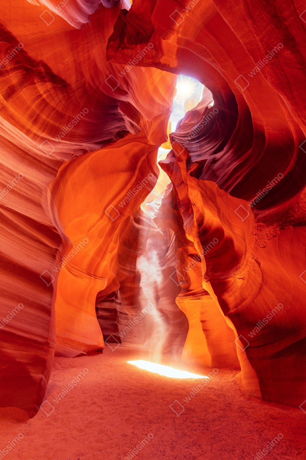 Bringen Sie die warme Schönheit einer sonnenbeschienenen Sandsteinschlucht in Ihr Zuhause und genießen Sie dramatische Lichtstrahlen und fließende Felsformen.