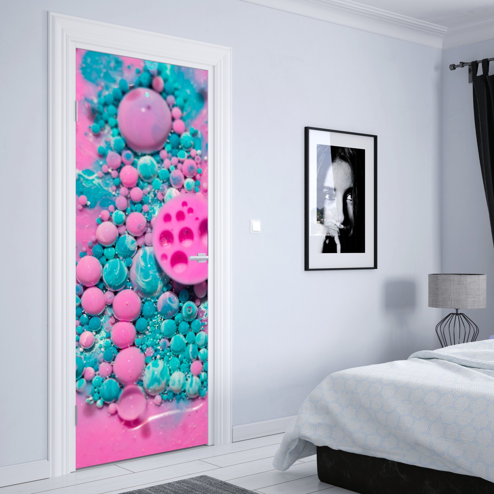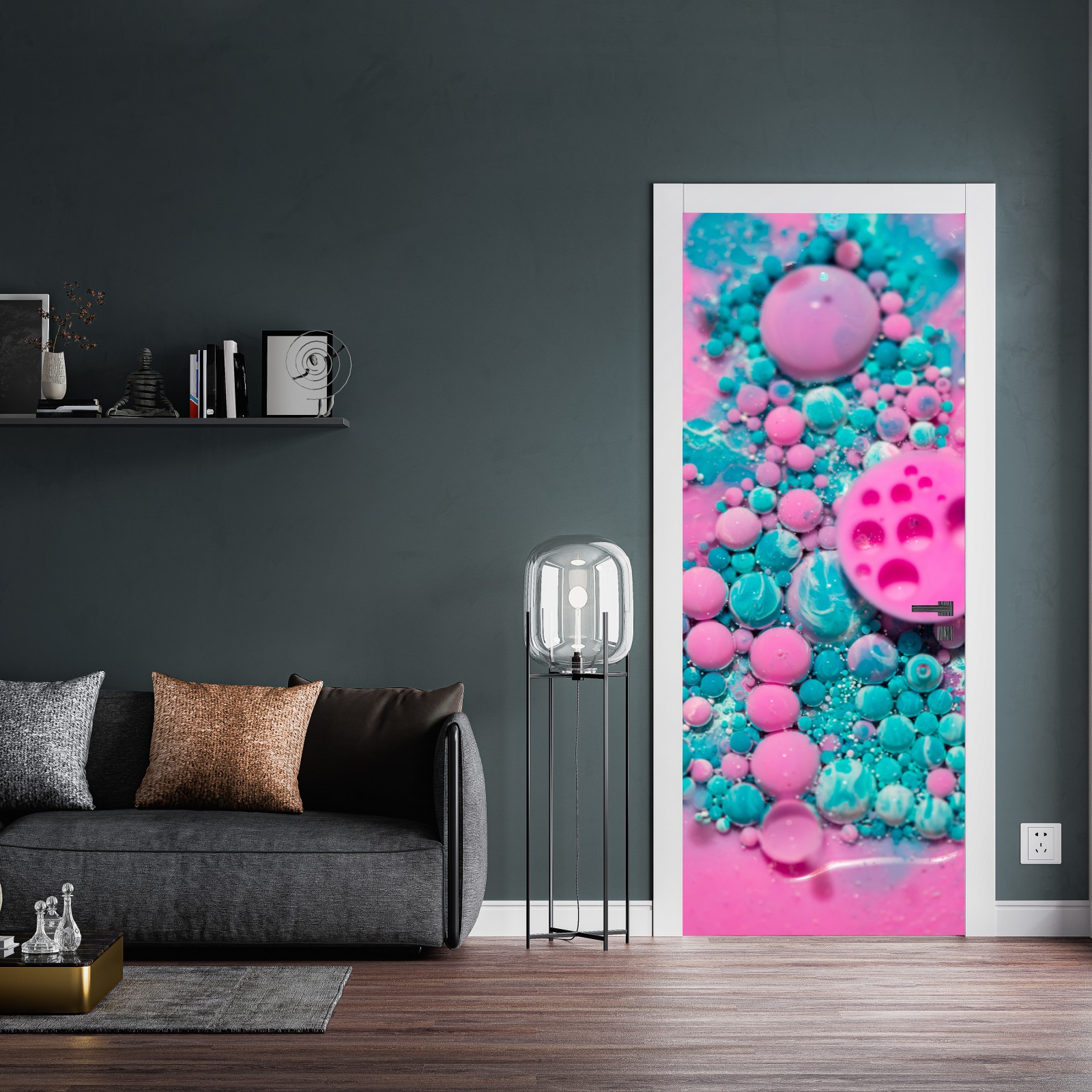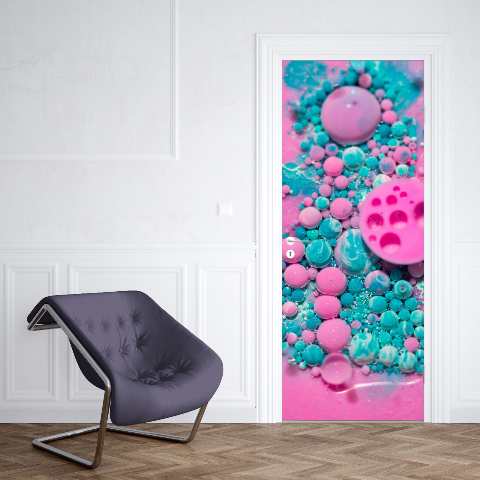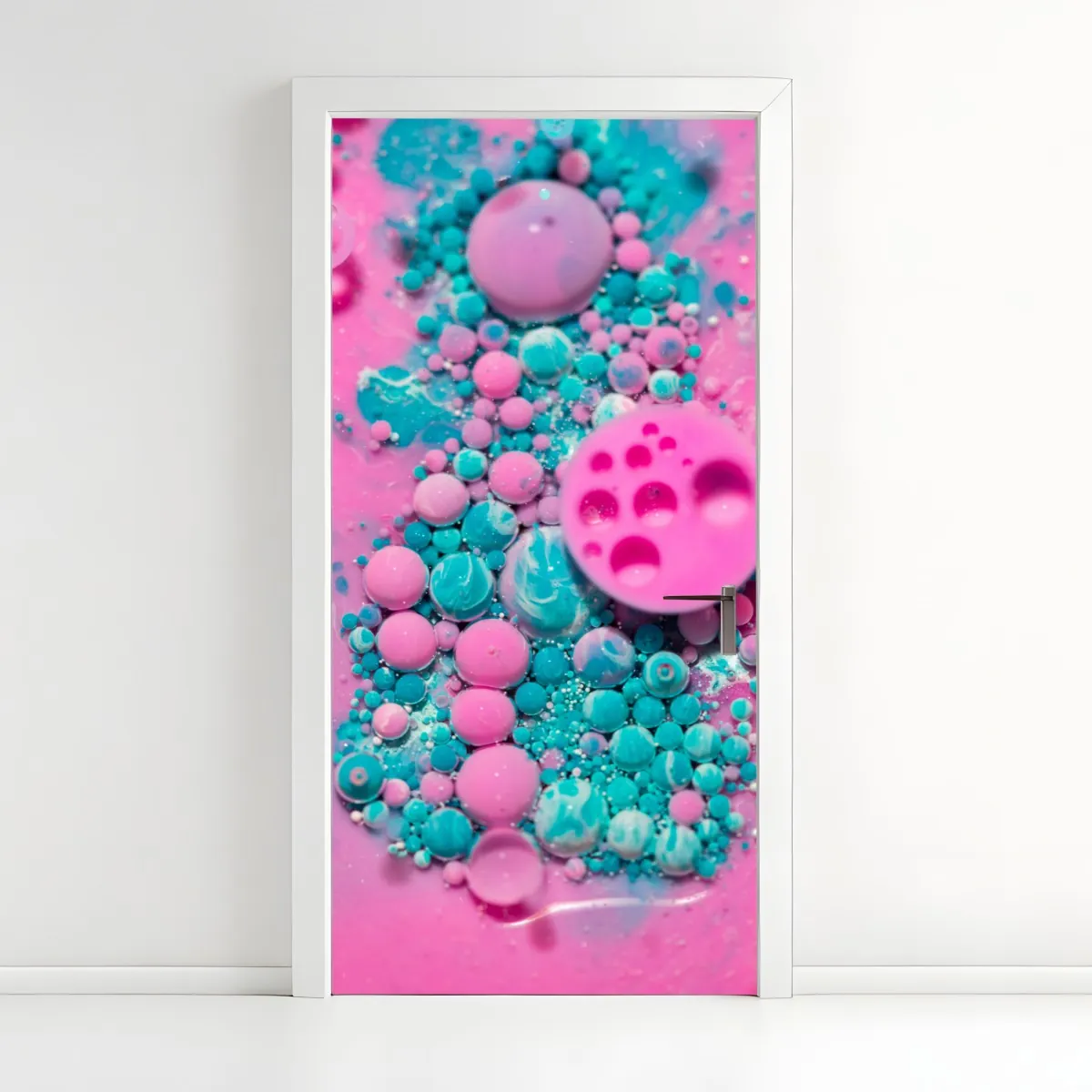 Beleben Sie Ihren Raum mit diesem lebendigen rosa-türkisen Marmorabstrakt mit fließenden Mustern und verspielten Blasen für eine moderne, künstlerische Note.