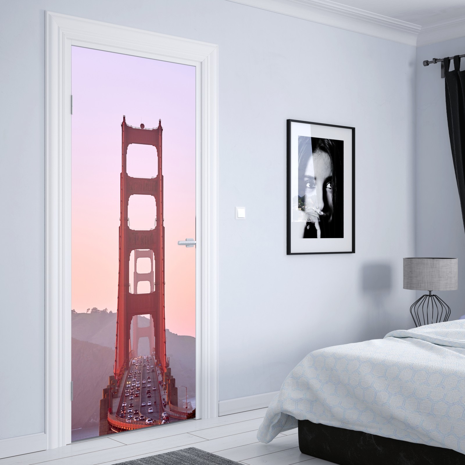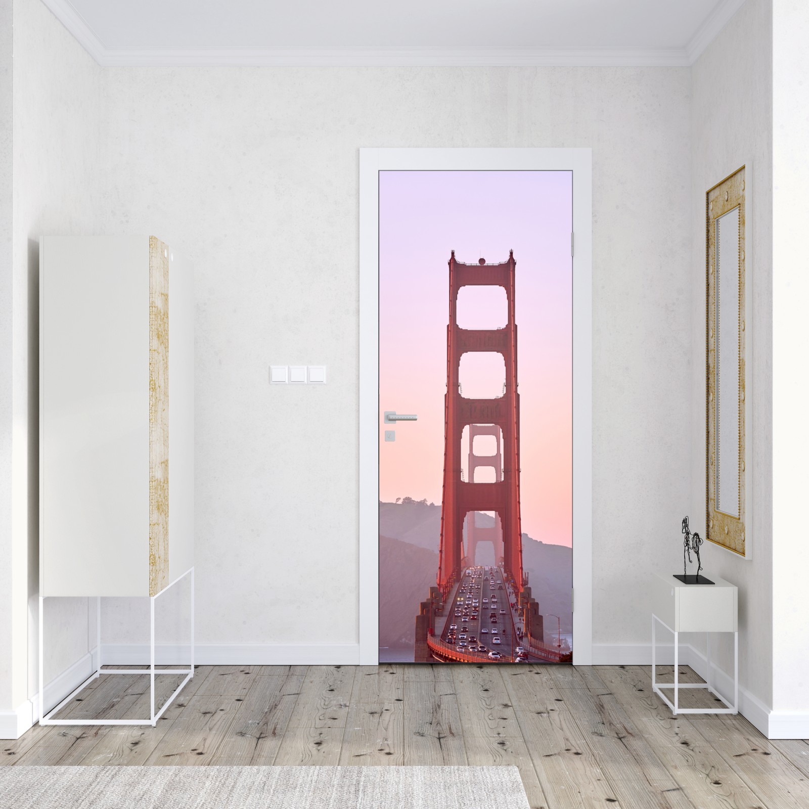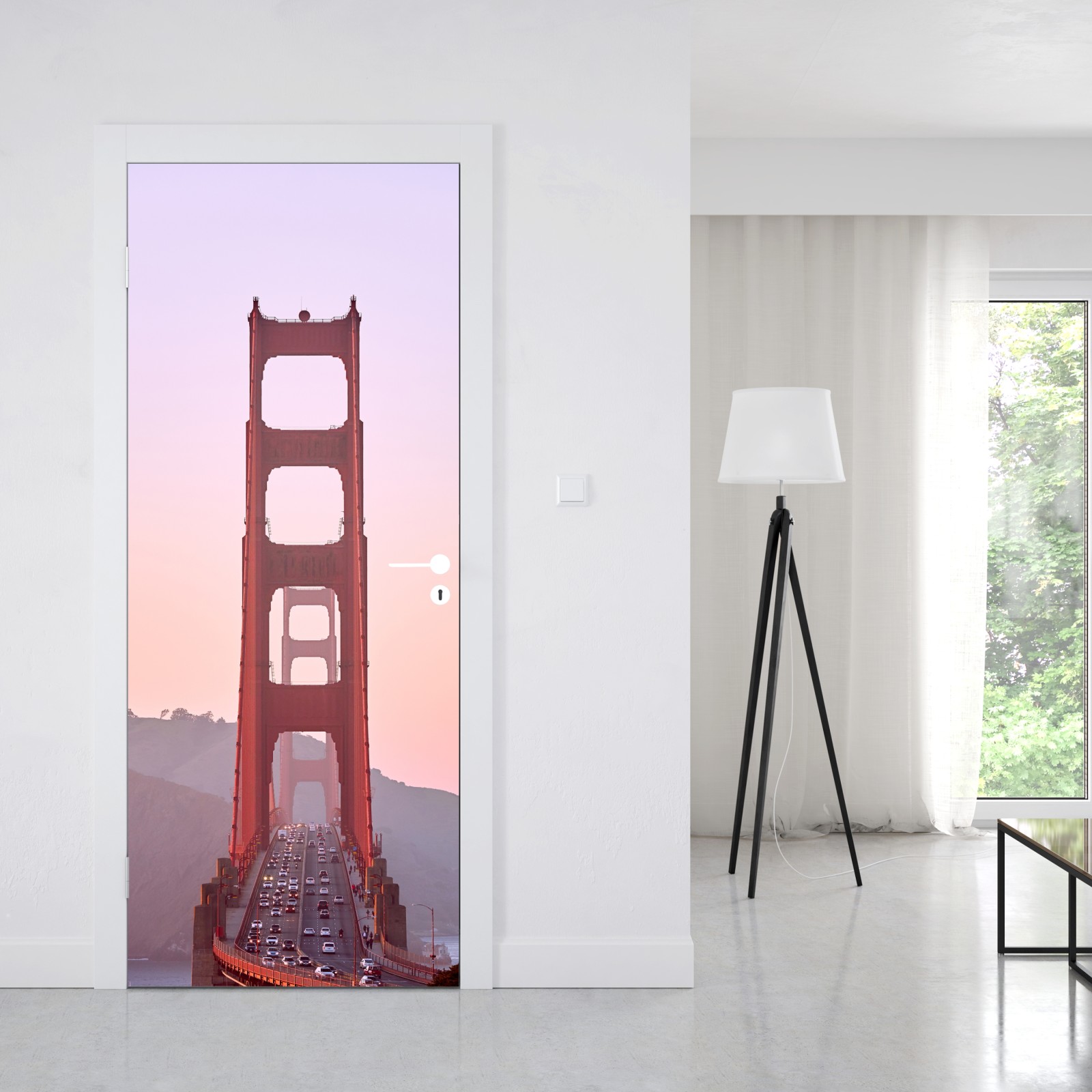 Türaufkleber Golden Gate bei pastellfarbenem sonnenuntergang