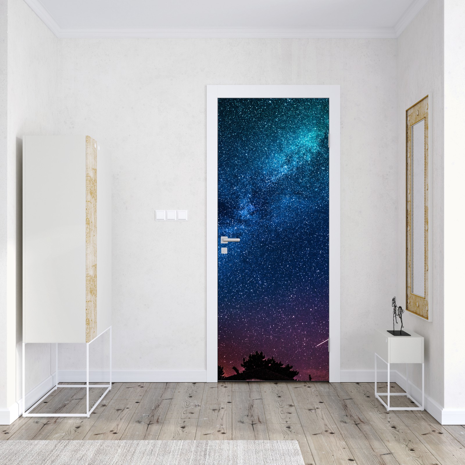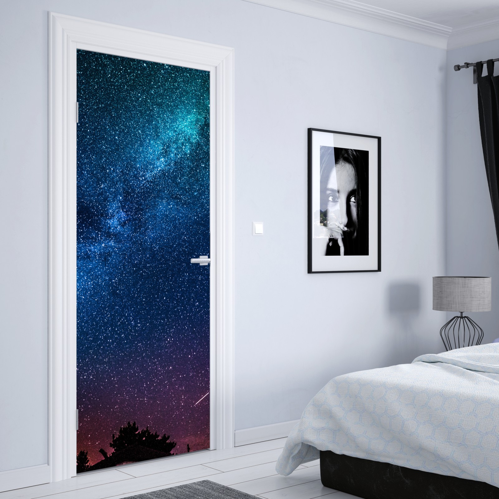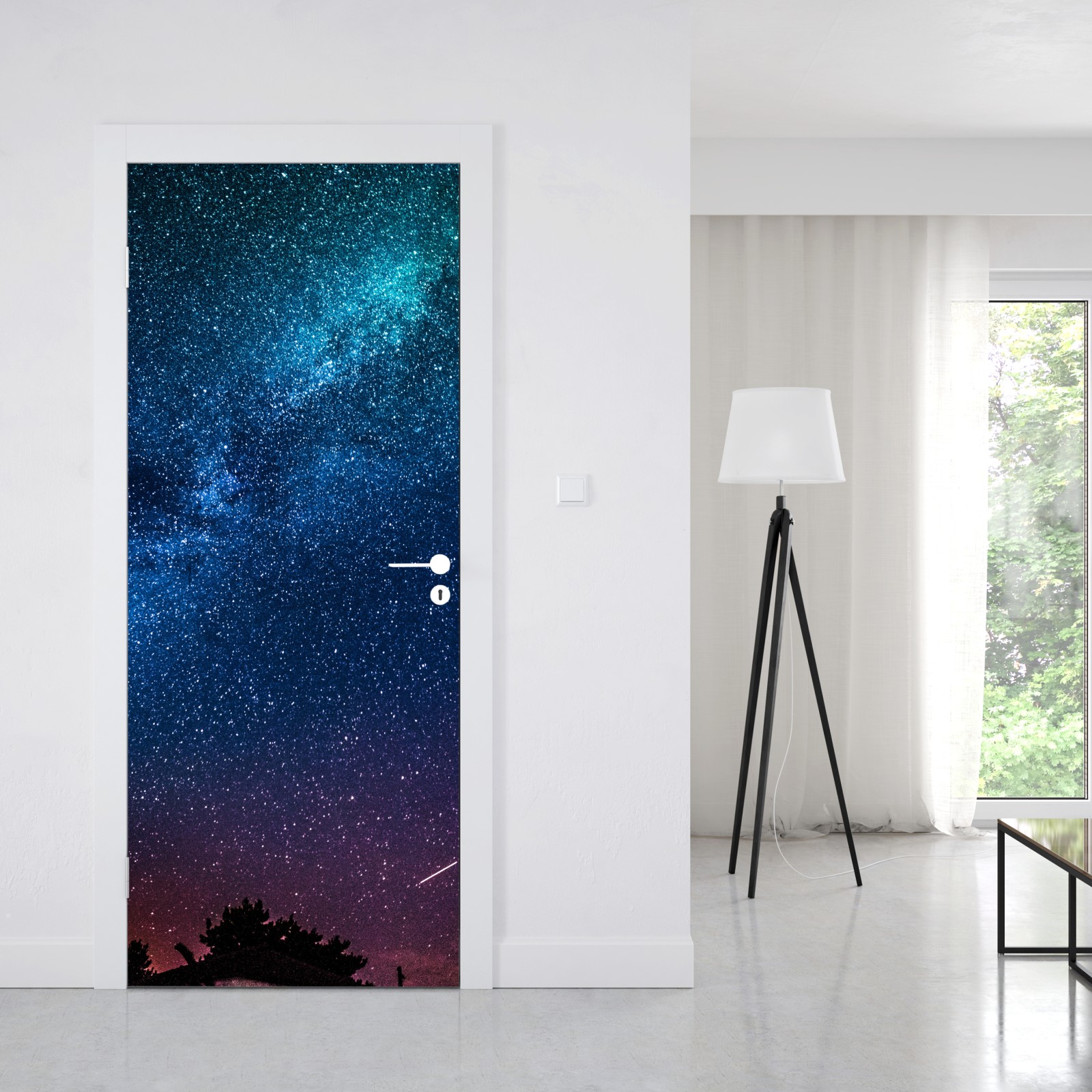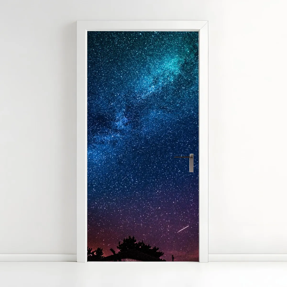 Türaufkleber tiefblauer nachthimmel mit milchstraße und sternschnuppe