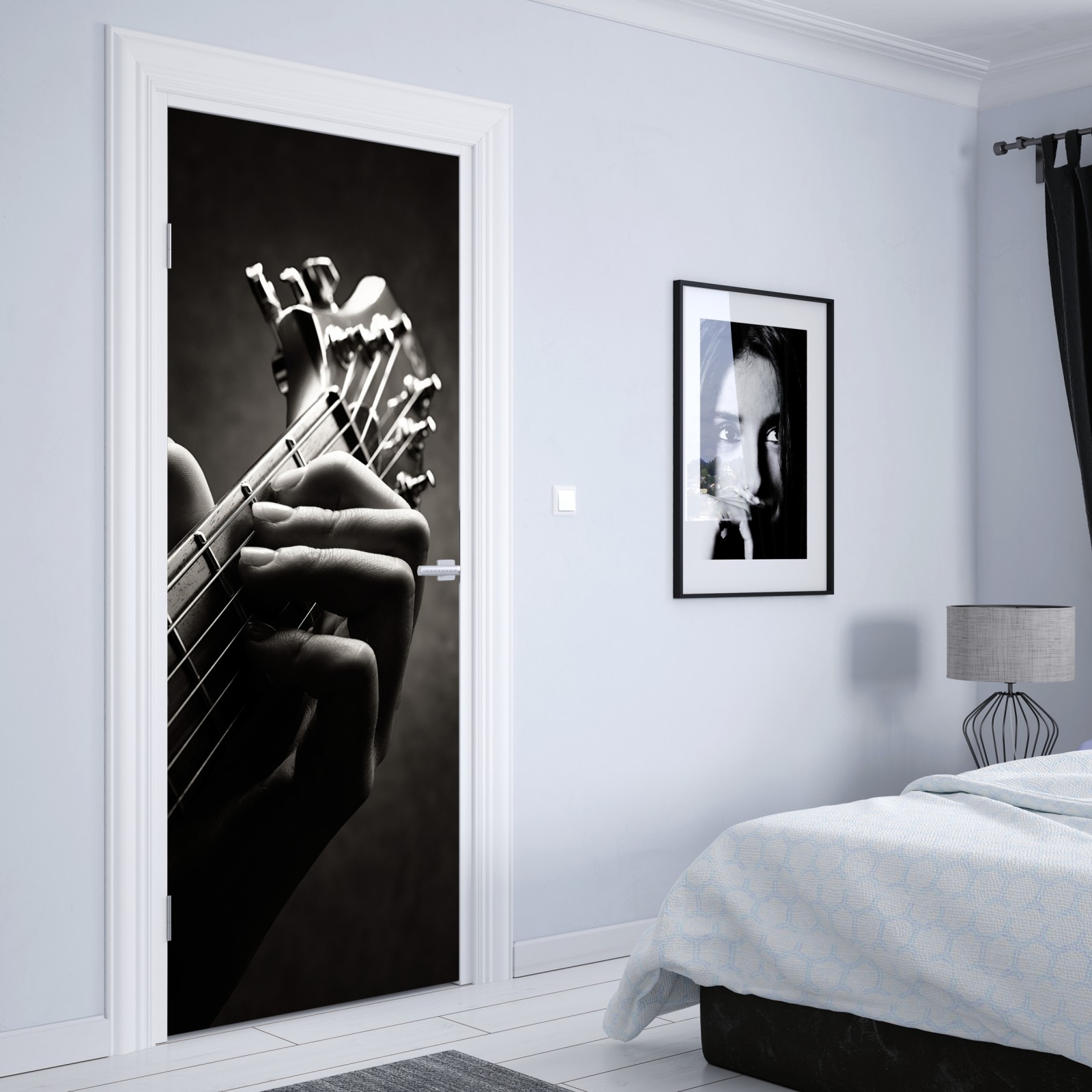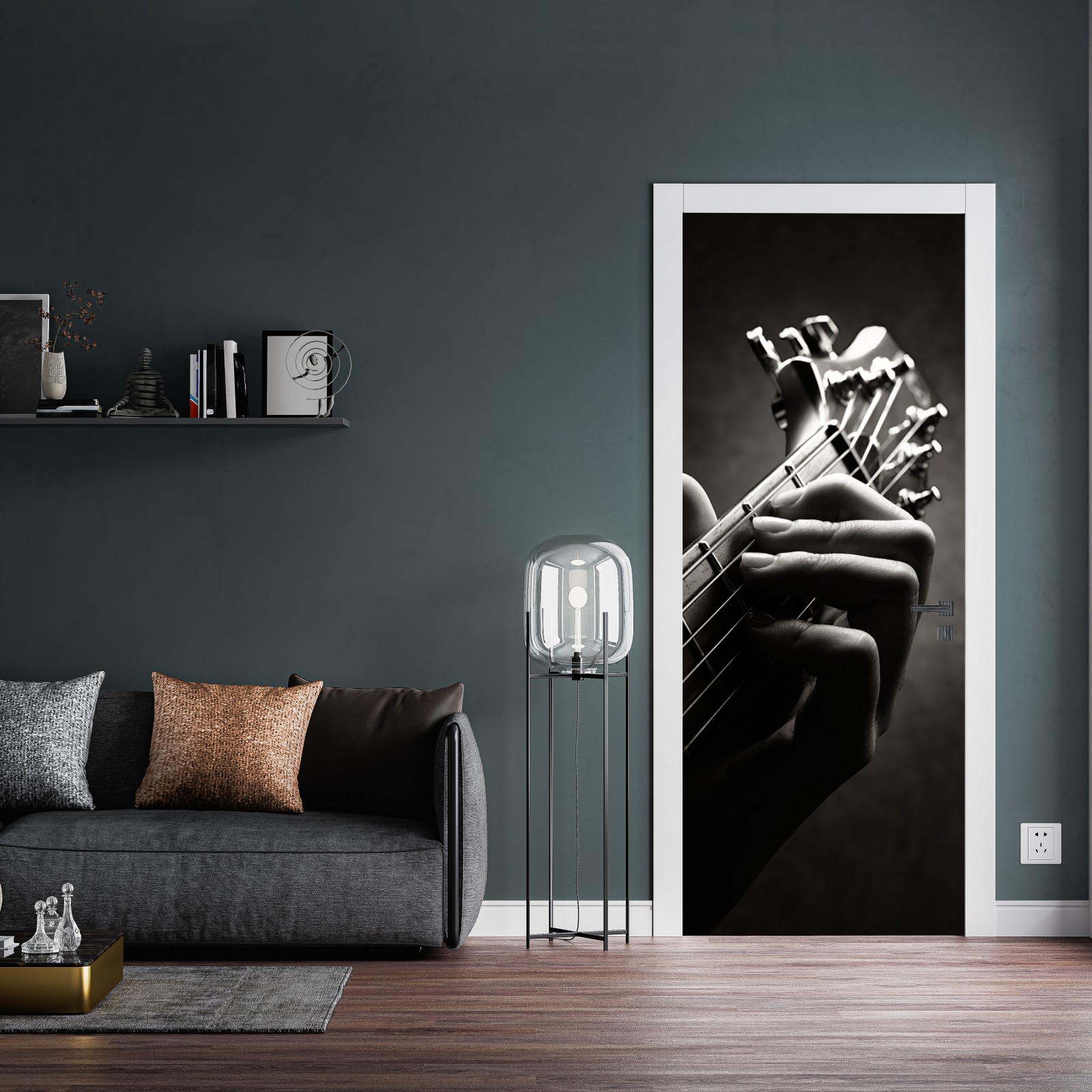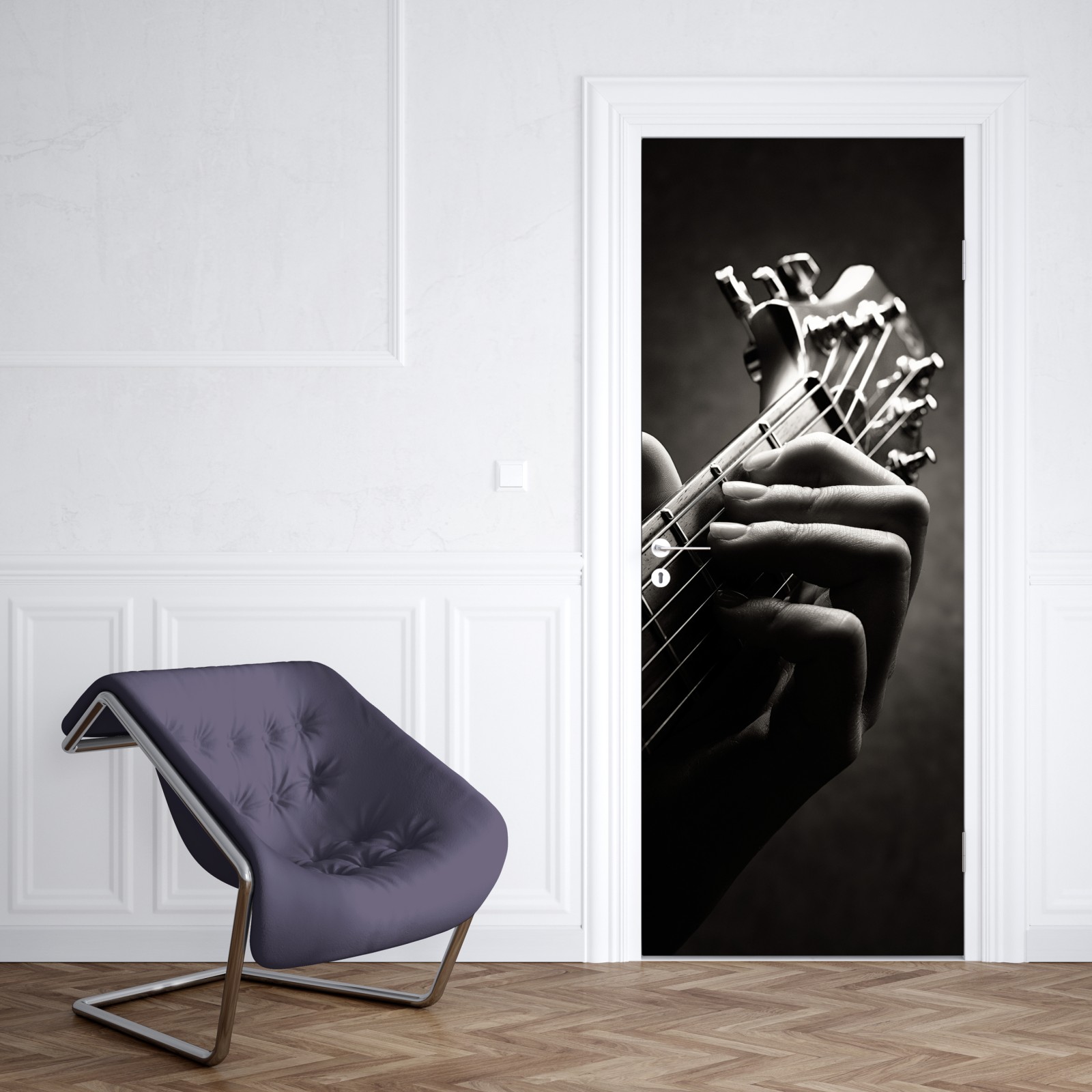 Türaufkleber nahaufnahme der hand auf dem griffbrett